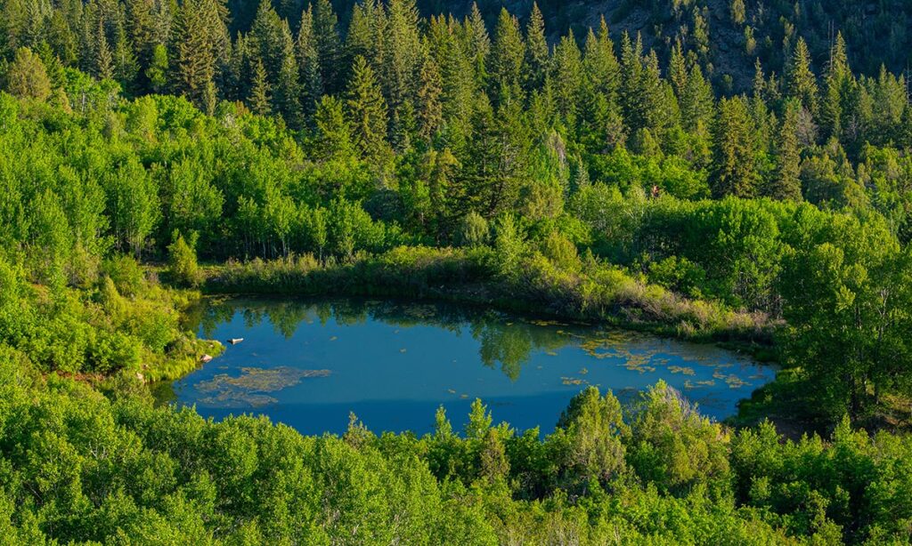 Derby Canyon, on the north side of the ranch, provides excellent big game habitat for elk and mule deer, resulting in excellent hunting opportunities. The open meadows of mountain grasses and alfalfa provide an alluring feed source for big game herds, while the canyon offers excellent cover and bedding habitat. Owner Kip Gates has been outfitting a slate of up to 24 elk hunters a year on the property with excellent success. Typically the ranch receives 2-3 priority landowner mule deer tags each year, and Merriam’s turkeys abound on the property. The three-acre lake in Derby Canyon is deep enough to overwinter trout, and there are some lunker German browns and rainbows in the lake. It’s a favorite spot for friends and family to gather round, have a picnic, and catch fish on a warm summer day. Elk hunters can buy over-the-counter tags for second and third rifle season, and archery, muzzleloader, and first and fourth rifle season tags are an easy draw.