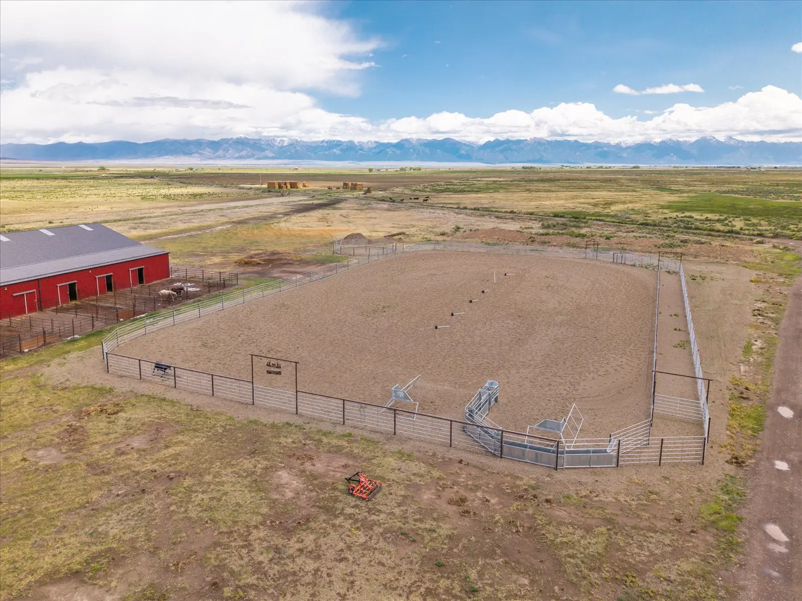 The property is offered as a complete 1,280± acre ranch or as two separate parcels. The North Ranch, located at 51273 County Road X, includes 520± acres with a renovated 1,448-square-foot three-bedroom ranch home, year-round Saguache Creek, pipe corrals, a loading chute, and fencing designed for livestock operations. Approximately 130± acres are under pivot irrigation with additional flood-irrigated ground capable of producing more than 400 tons of hay annually. The South Ranch, located at 50550 County Road X, consists of 760± acres and features a 12,160-square-foot indoor arena with shop, office, horse stalls, and turnouts, along with a 2,560-square-foot covered storage area for hay and equipment. The property also includes an outdoor arena, cattle handling facilities, and is fenced and cross-fenced. Surrounded by working ranches and sweeping mountain views, the ranch sits just minutes from public land access and only six miles from Saguache, with Monte Vista, Alamosa, and Salida all within a 40 to 50 minute drive. This property presents a unique opportunity to expand a ranching operation or enjoy a productive agricultural lifestyle in Colorado.