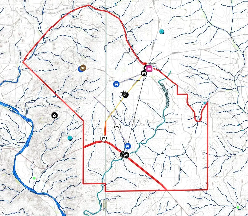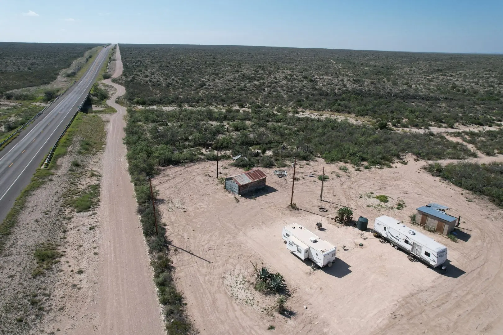 Additional features include three water wells, an extensive road system giving access to the entire ranch, via UTVs as well as a Hunters Cabin to board family and visitors alike in rustic comfort.