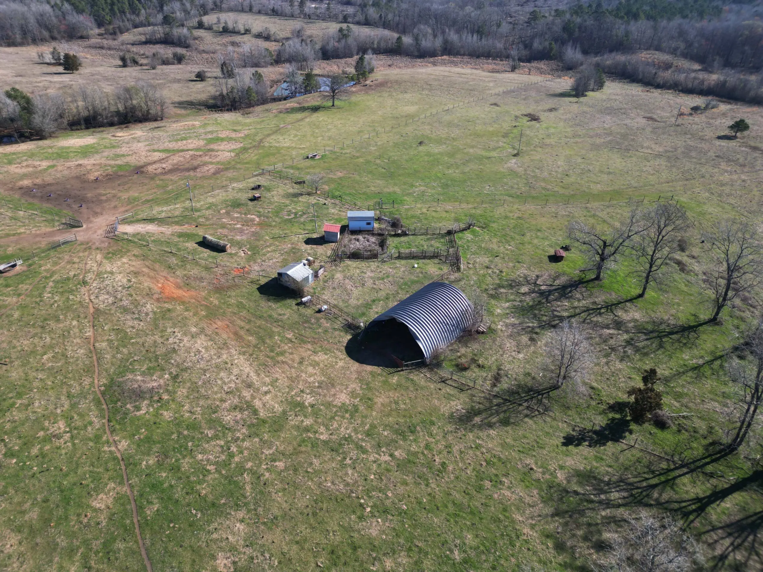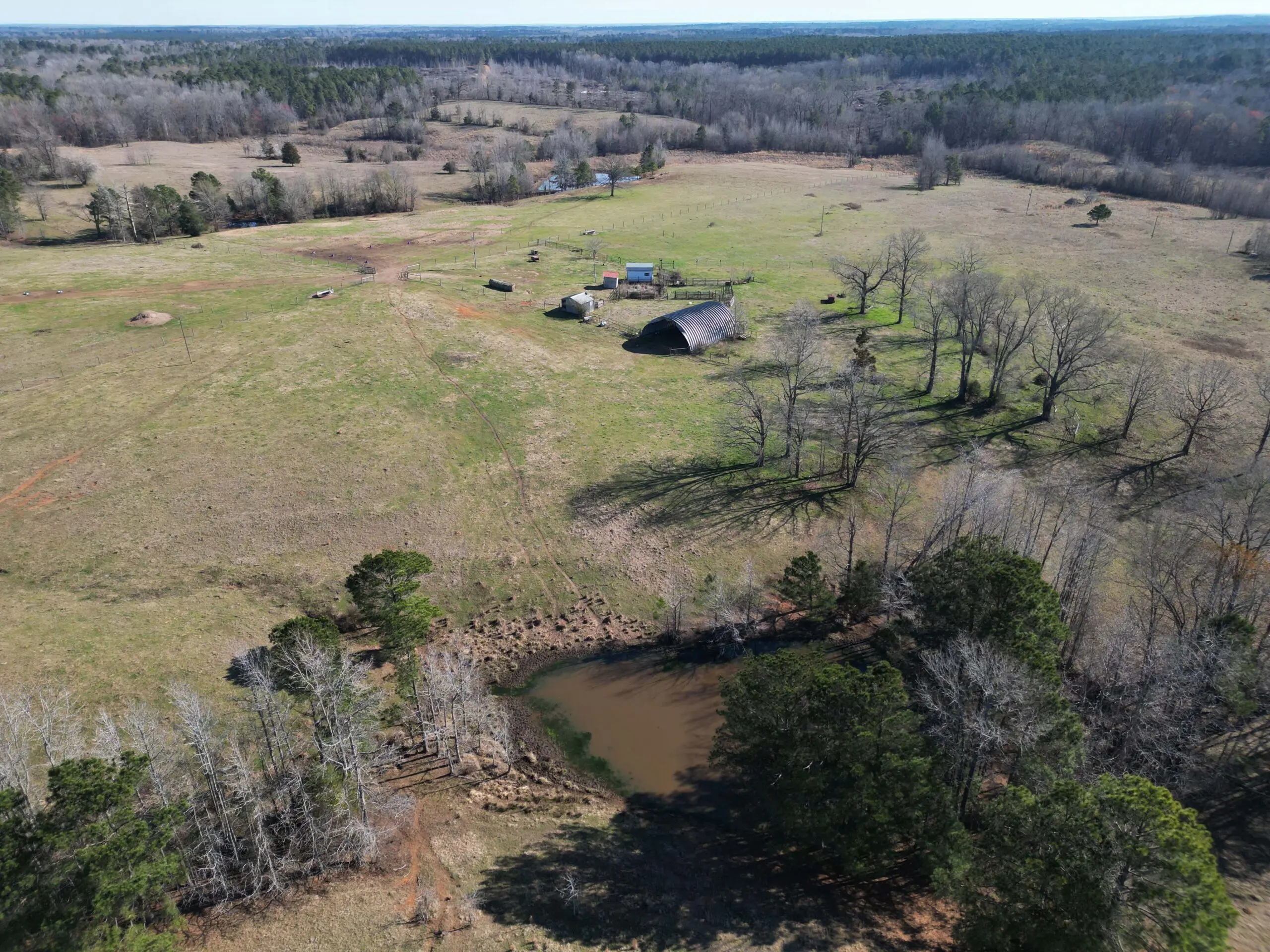 This Arkansas cattle ranch for sale features 5 ponds, providing ample water for livestock, along with cross-fenced pastures for efficient grazing rotation. The land is well-maintained and optimized for cattle production.