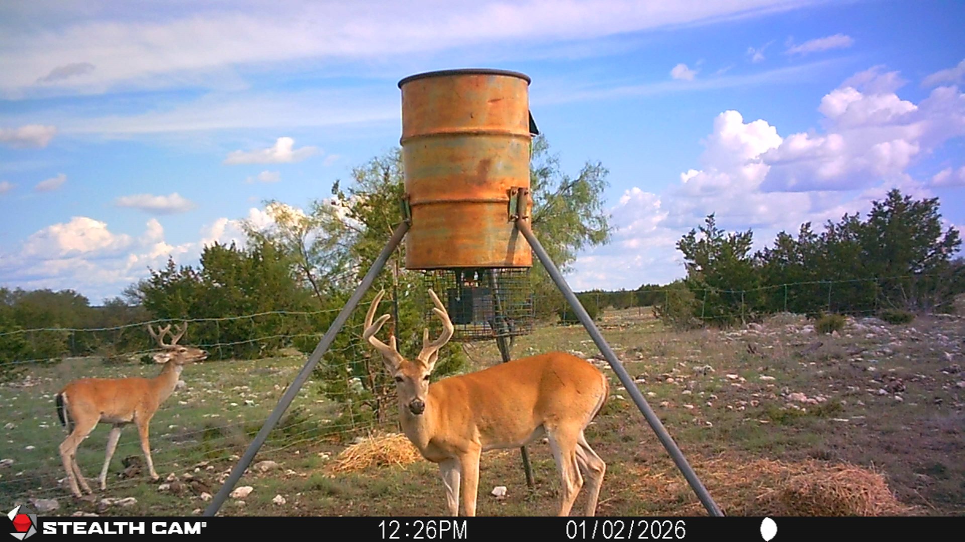 - Native species: Whitetail deer, turkey, hogs, dove, quail, coyotes, and varmints