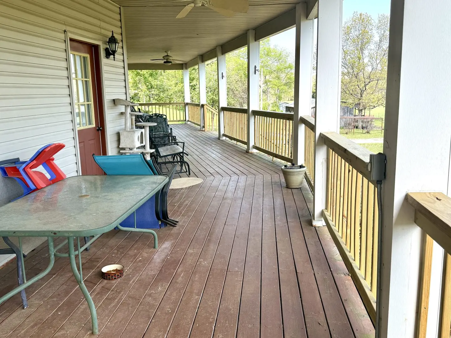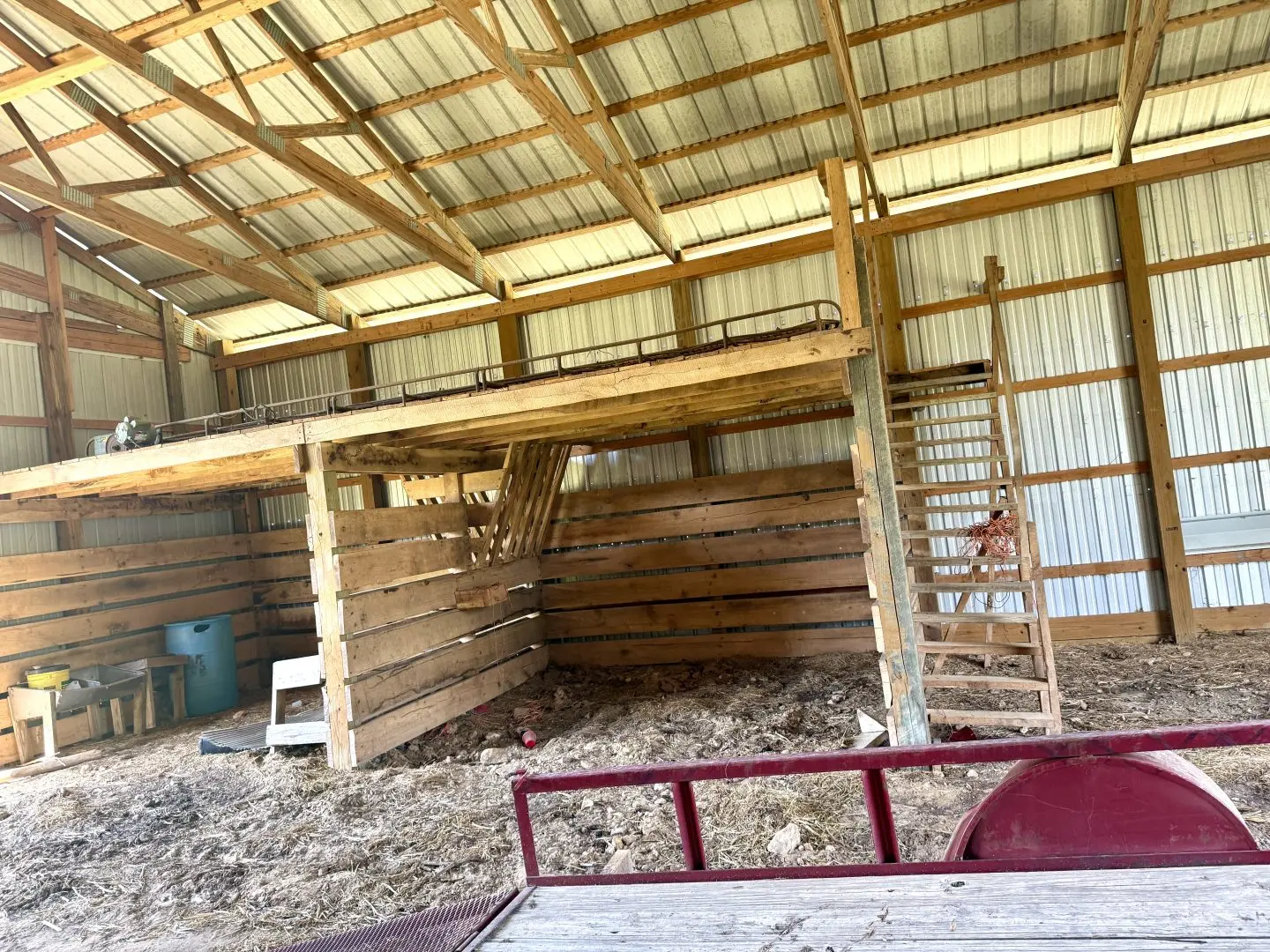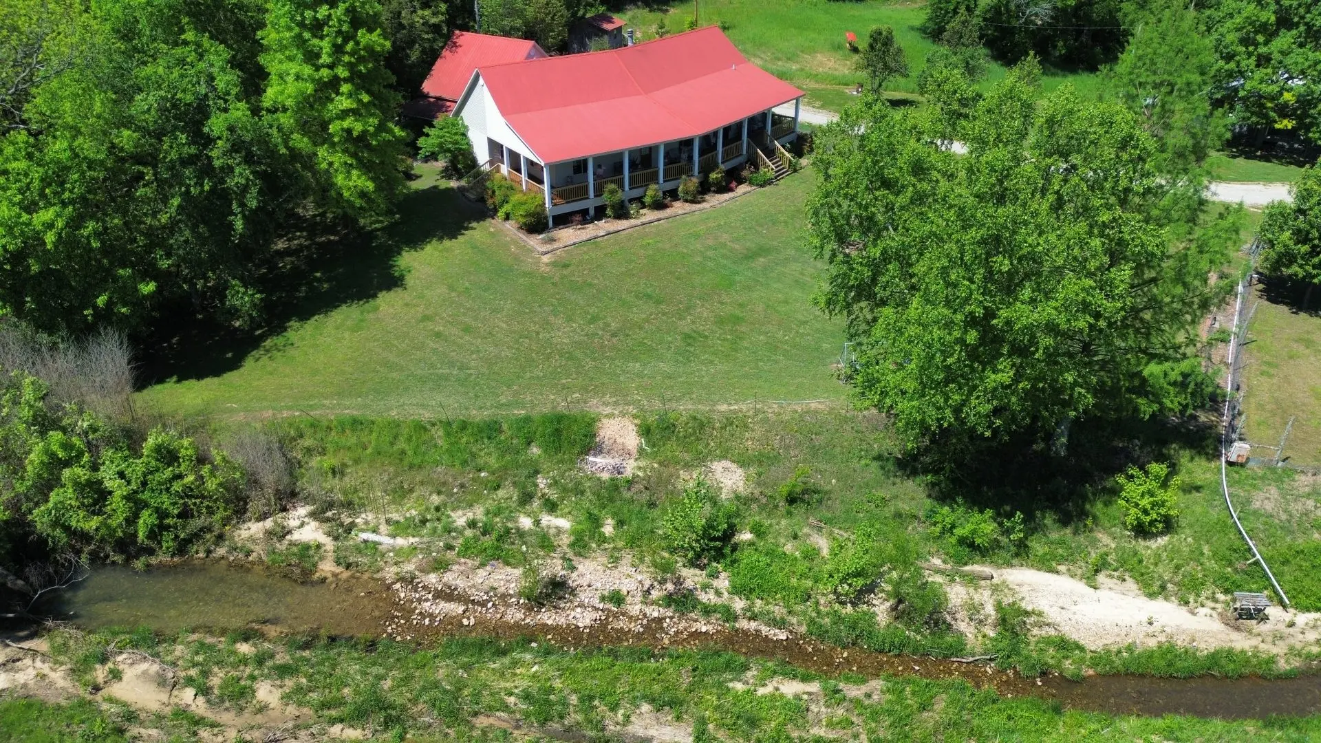 One of the best features of the home is the wrap-around front porch overlooking the creeks and garden, where you can often see wildlife right from your seat. This is truly a turkey hunter’s paradise. There are two large metal buildings—one is a shop with a big electric overhead door, and the other has 4 horse stalls with overhead hay storage.