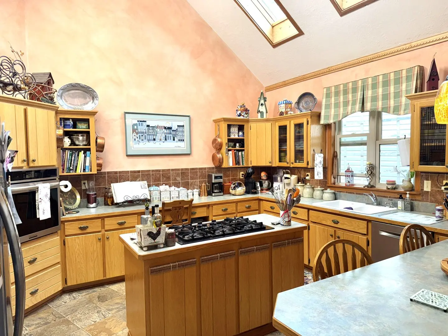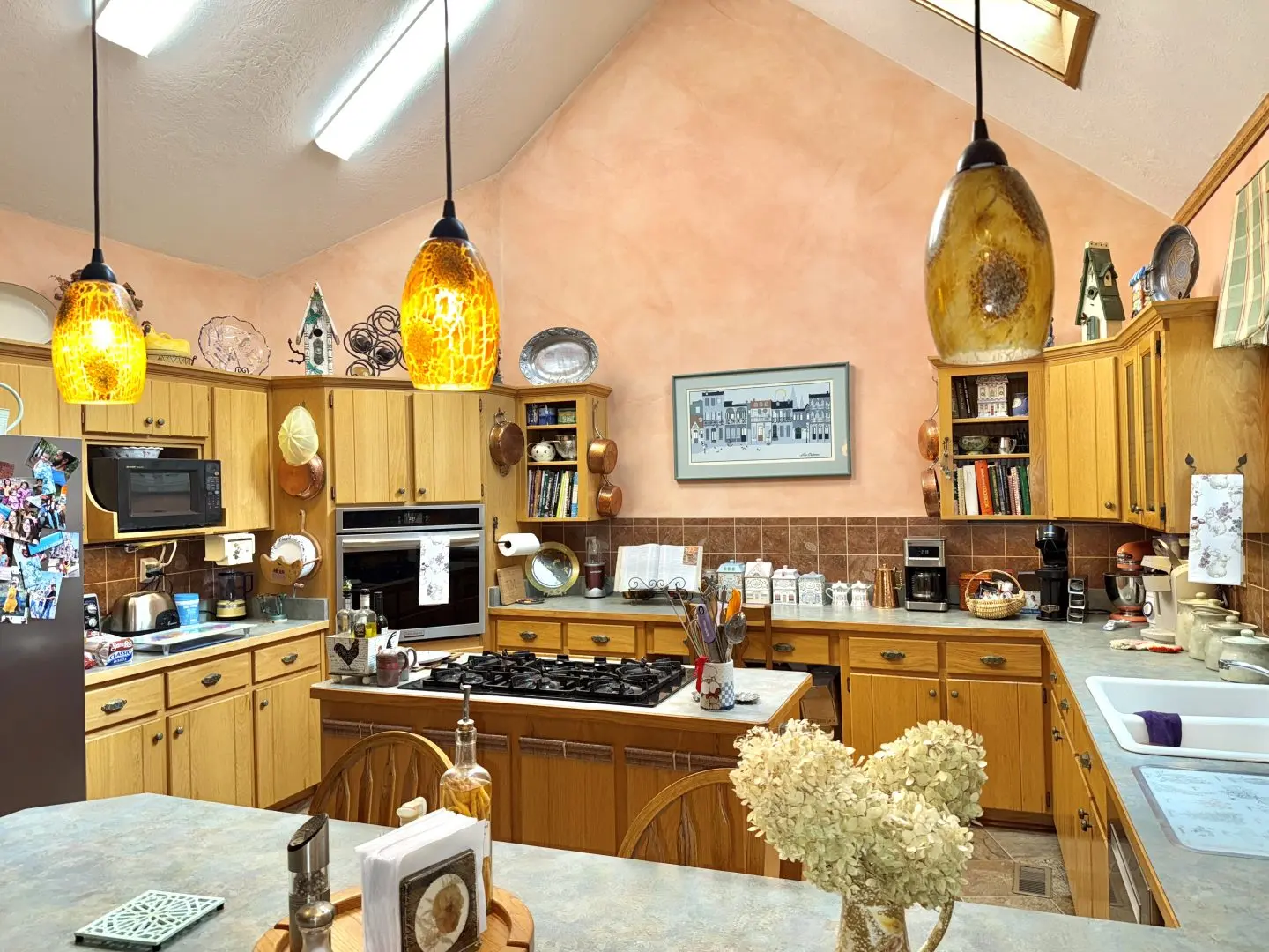 The home features 4 bedrooms—3 on the main level and 1 upstairs as a bonus room. There’s a large country kitchen and a great room centered around a massive stone, wood-burning fireplace. There is also a guest cabin, located within walking distance of the main house, that comfortably sleeps six.