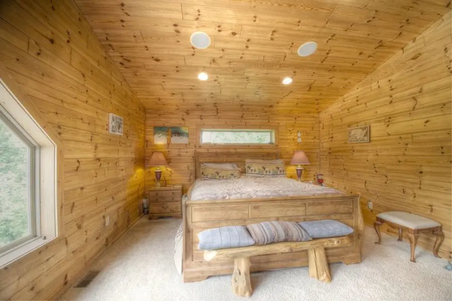 Total of 7 Bedrooms and 5-1/2 Bathrooms, Main Residence spans 4,010 sq ft and features 3 spacious bedrooms, 3.5 baths, a finished lower-level walkout, and upscale amenities including a heated garage, sauna, massage room, and jacuzzi. From nearly every room, take in panoramic views of the surrounding forests and rolling hills.