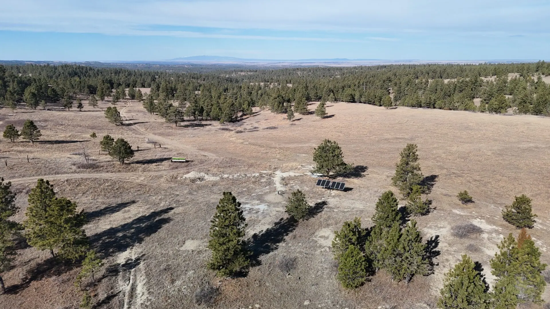 Improvements on the property include a 32’ x 50’ shop with a 12’ overhang, ideal for equipment storage, vehicles, or use as a base of operations. The shop is equipped with a solar setup, adding efficiency and off-grid capability.