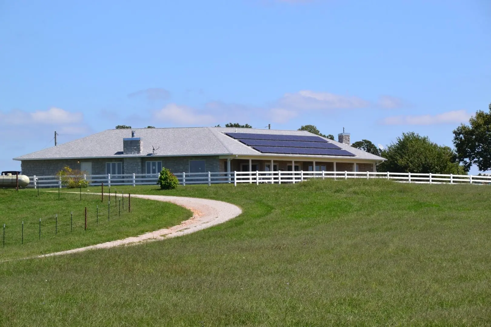 The home is equipped with Solar Power and Generac generator back up, along with a working windmill. The ranch also offers 6 springs with Shaw Branch running through the property, 2 ponds and 3 wells. Waterers are spaced throughout the property, being fed by the wells and windmill. With 90 percent open pasture and hay meadows, the 2300 square foot machinery barn and 1600 square foot hay barn are great additions to the property.
