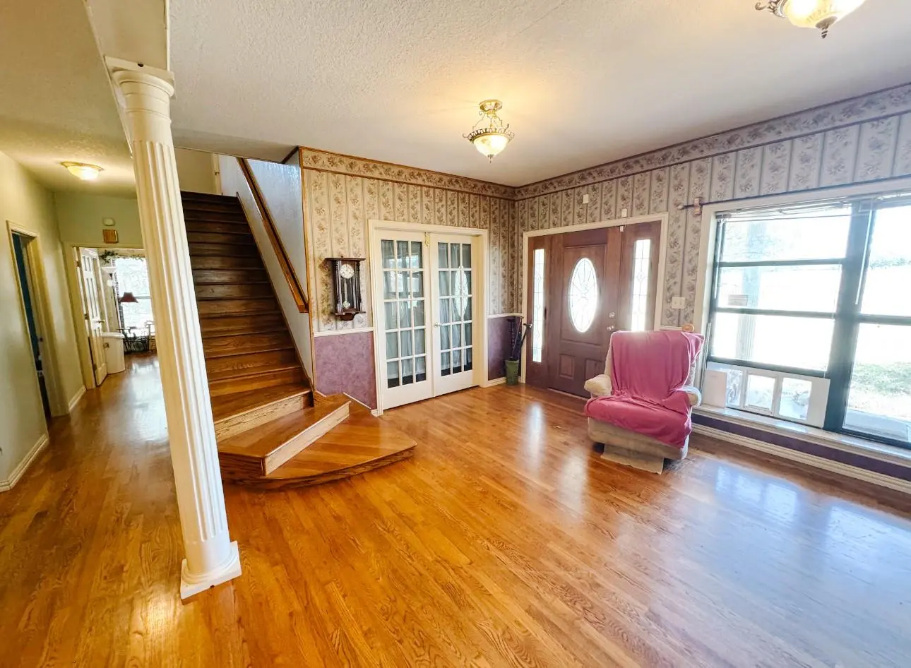 An open-concept layout filled with natural light and scenic views of the surrounding countryside.
