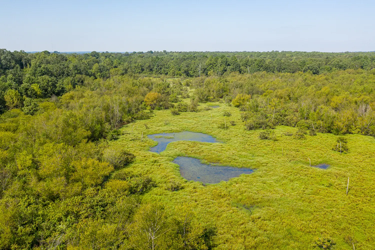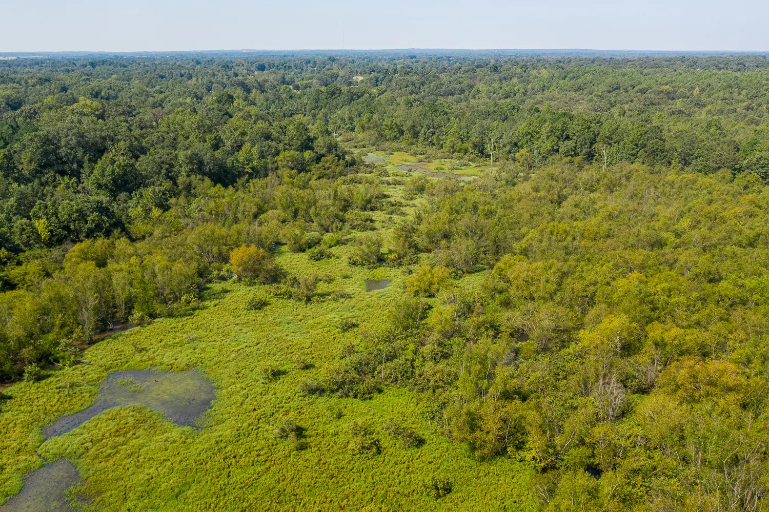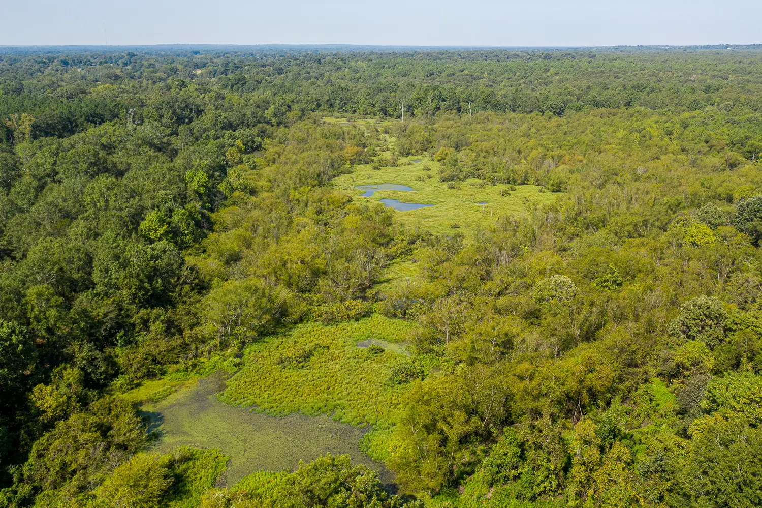 Four stands of mature Loblolly Pine cover approximately 150 acres of the property. The timber carries real commercial value — pulpwood, sawtimber, and utility pole markets all draw from well-stocked East Texas plantation stands. For hunters, these same stands provide dense thermal cover, solid bedding areas, and natural travel corridors connecting the hardwood bottoms to the open fields.