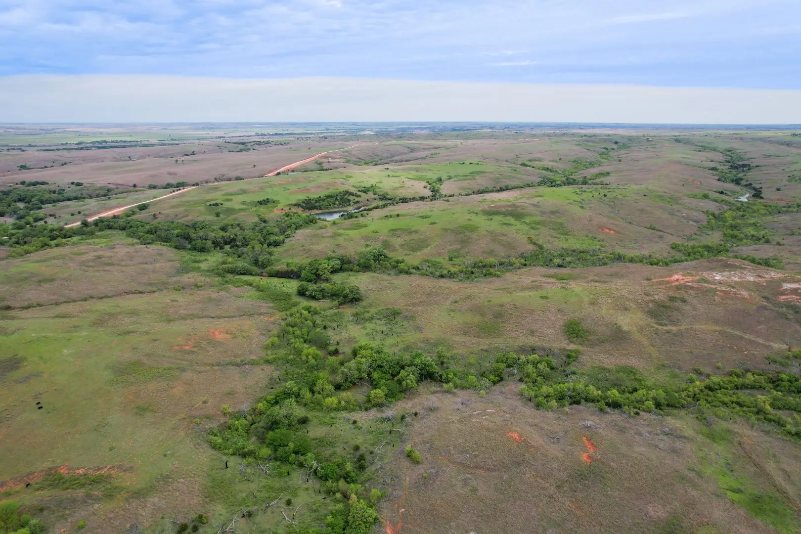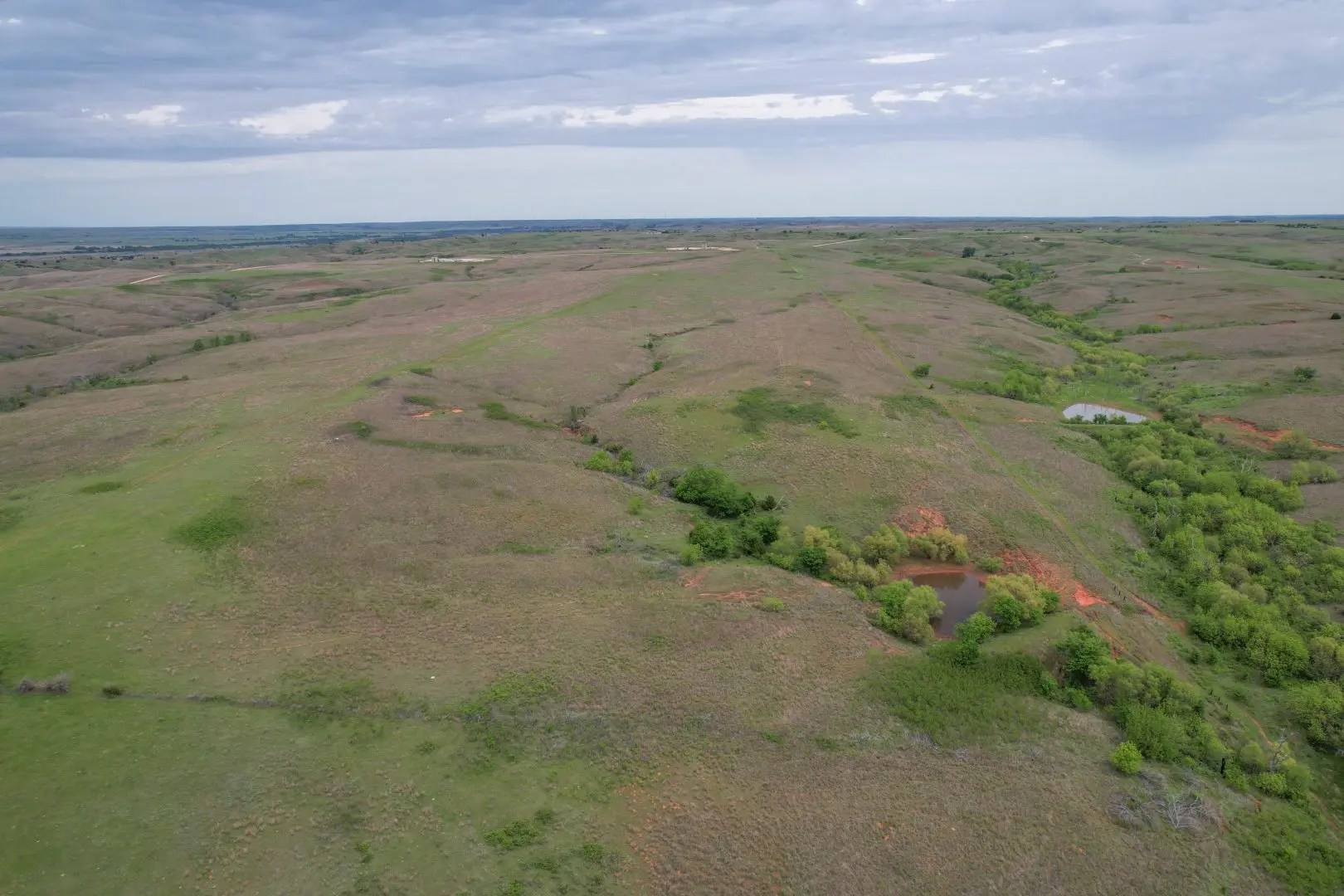 The Dewey County land showcases rolling terrain, native grasslands ideal for cattle grazing, mature timber, and multiple spring-fed ponds stocked for fishing. Hunters will appreciate the abundant wildlife, including deer, turkey, wild hogs, quail, and dove. Property is located within 1.5 miles of the Canadian River.