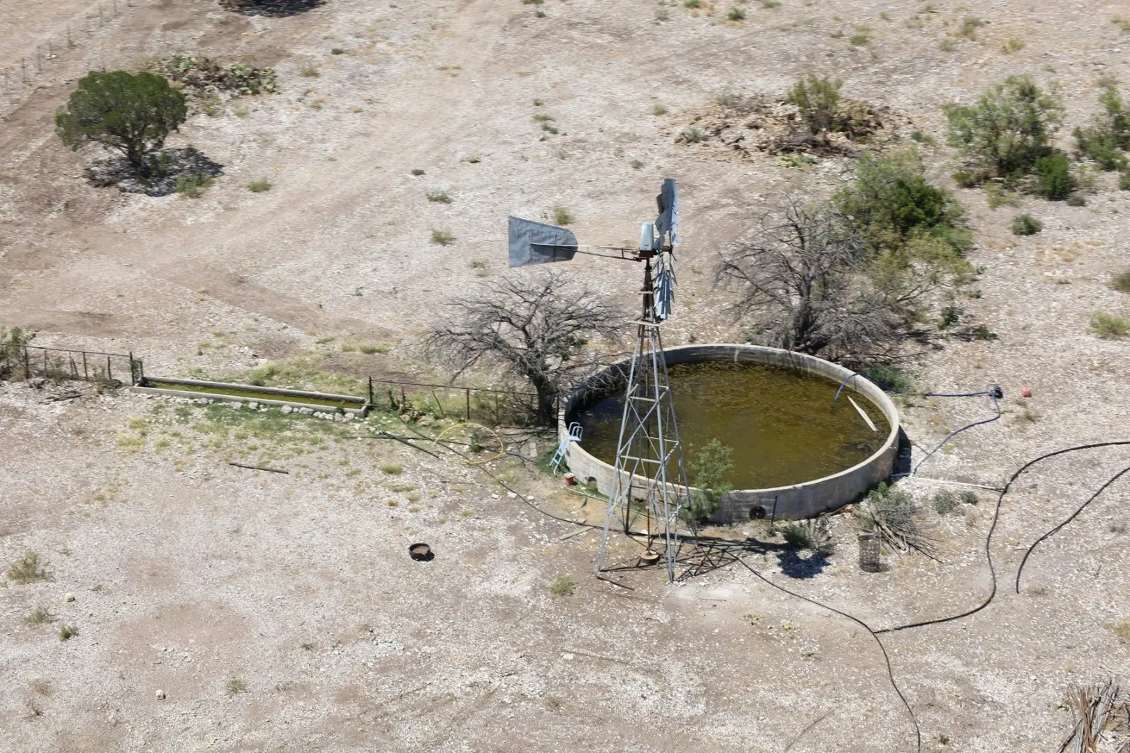 Above the reservoir and beyond a large stand of gorgeous Pecan trees is the ranch house. The 3 bedroom and 3 bathroom home is approximately 3,000 sq ft. Below the house is a large working shop. Next to the shop is a good set of livestock processing pens, holding pens, and an arena. There are 3 functioning water wells on the ranch, two storage tanks, and many water troughs.