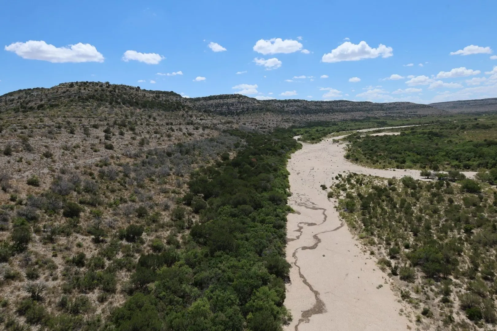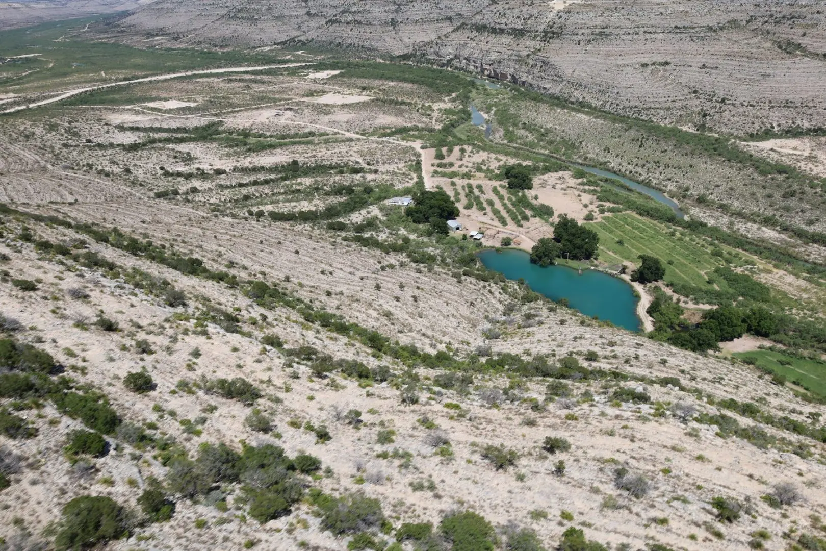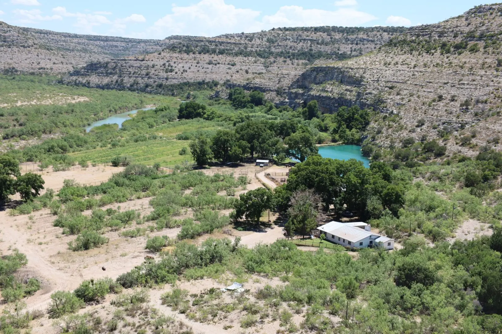 Unique with 3 sources of live water, the ranch has stands of exquisite Live Oak trees. Varieties of gramma grass can be found on the ranch, as well as desert plants such as Ocotillo, Lechuguilla, and Spanish Dagger. Texas Mountain Laurel is a popular evergreen that is abundant on the hill tops. The landscape is diverse and includes river bottom, canyons, headers, bluffs, and narrow mesas.