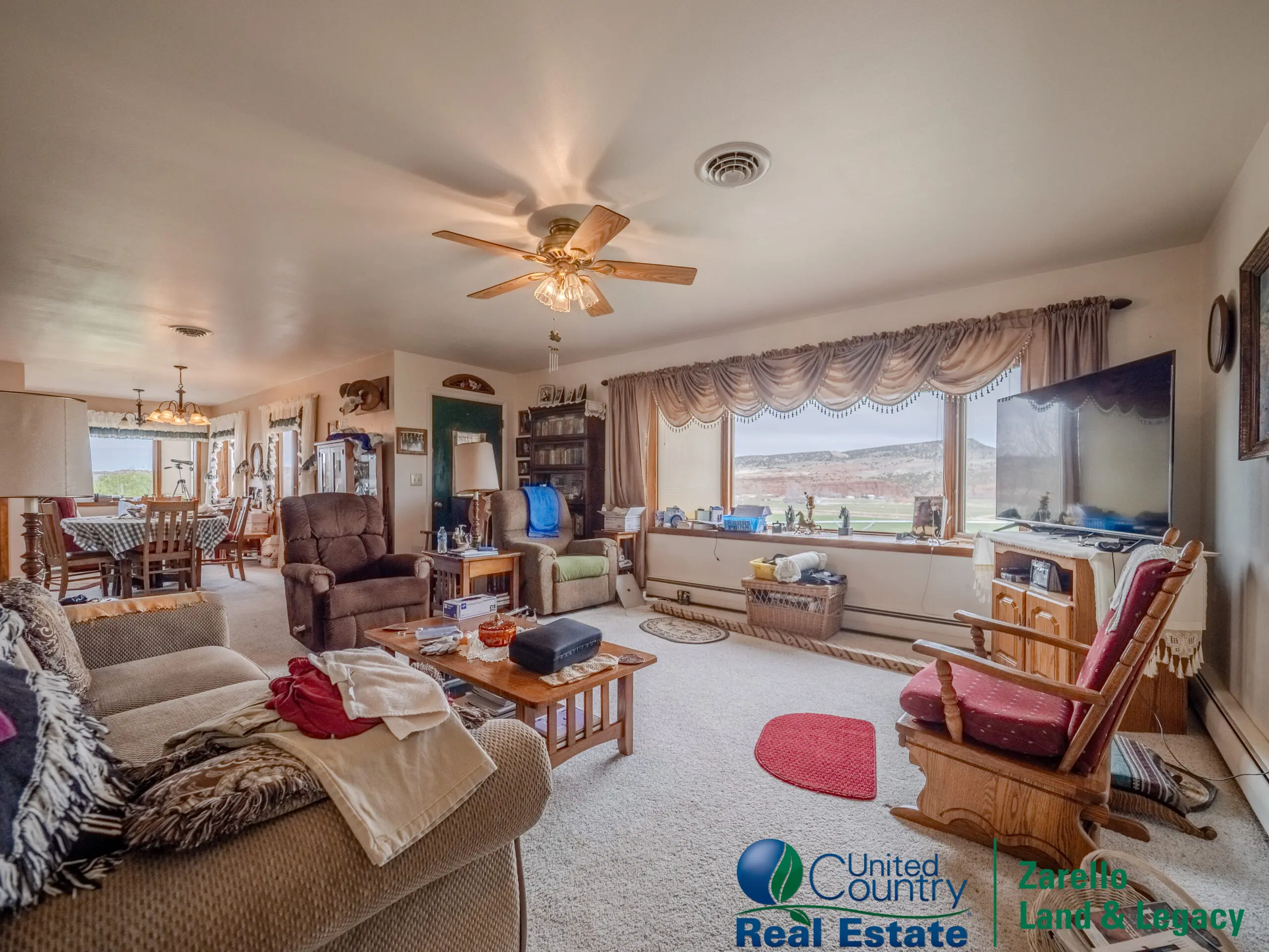 The 3-bedroom, 2-bath residence offers approximately 2,400± square feet of living space. Originally constructed in 1965 and remodeled in 1999, the home reflects consistent maintenance and practical upgrades over time. Improvements include Pella replacement windows (2014), steel siding (2014), and a roof replaced in 2019. The home is serviced by city water, while a separate quality well supplies water to the yard, corrals, barns, and working improvements. Heating is provided by a radiant in-floor boiler system with a recently updated boiler.