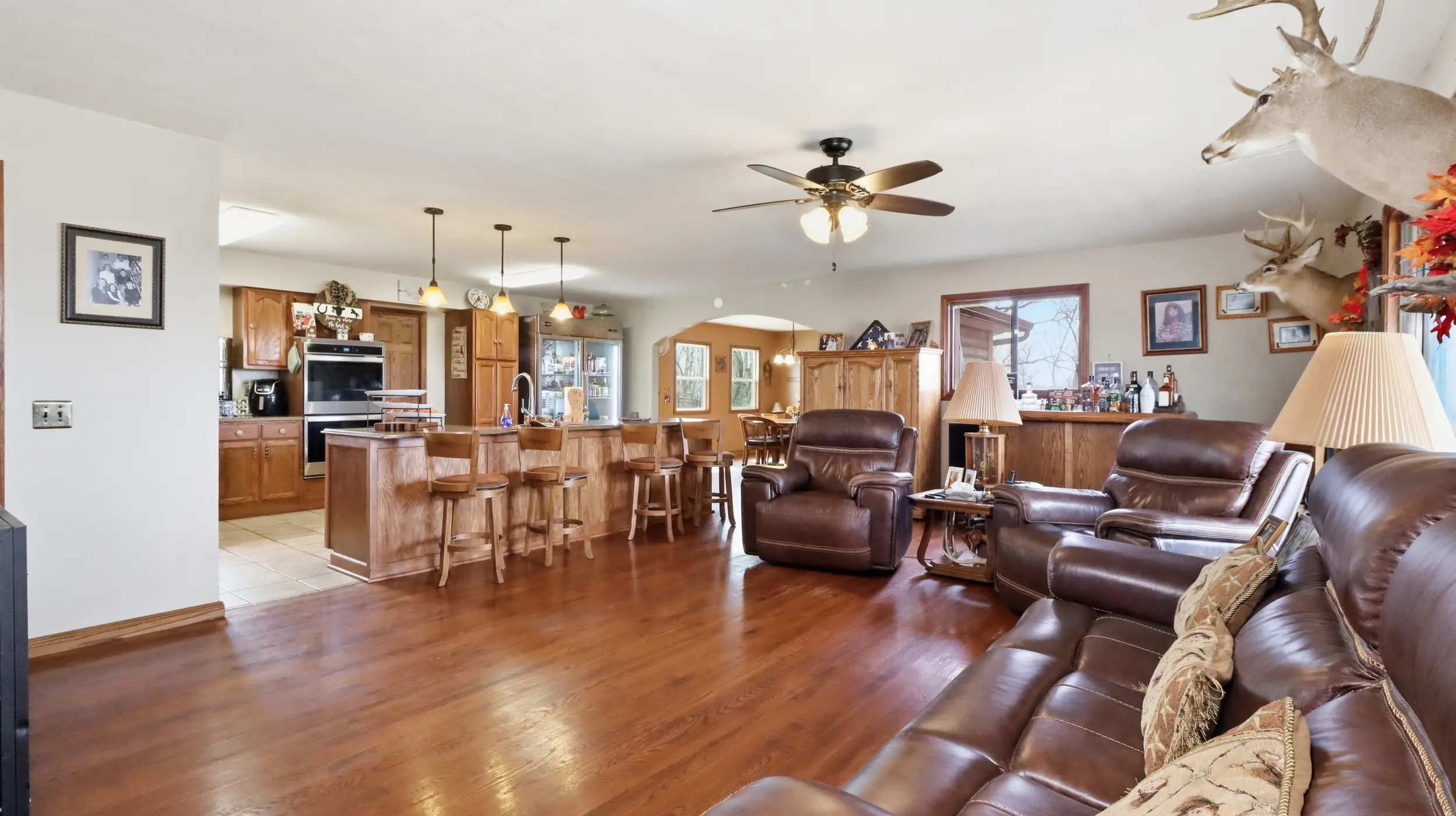 The covered wrap-around deck is the perfect place to relax and enjoy sweeping views of pasture, wildlife, and rolling Ozark hills. Efficiency and resilience were thoughtfully planned with propane heat, wood furnace, backup solar system, and central air, creating a highly energy-efficient country home suited for year-round living or a self-sufficient lifestyle.