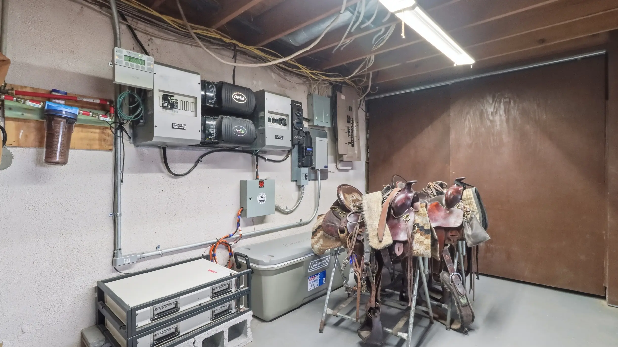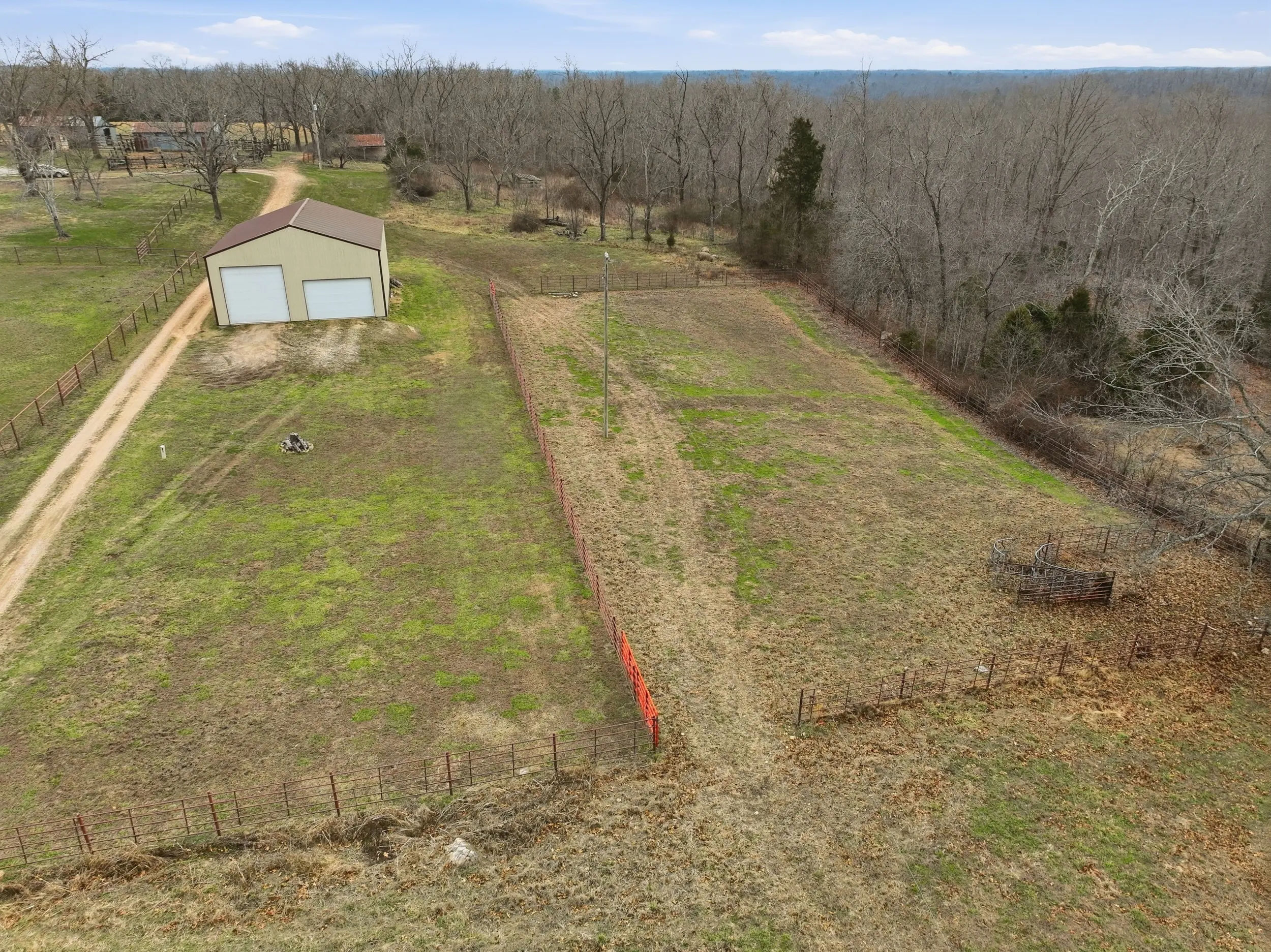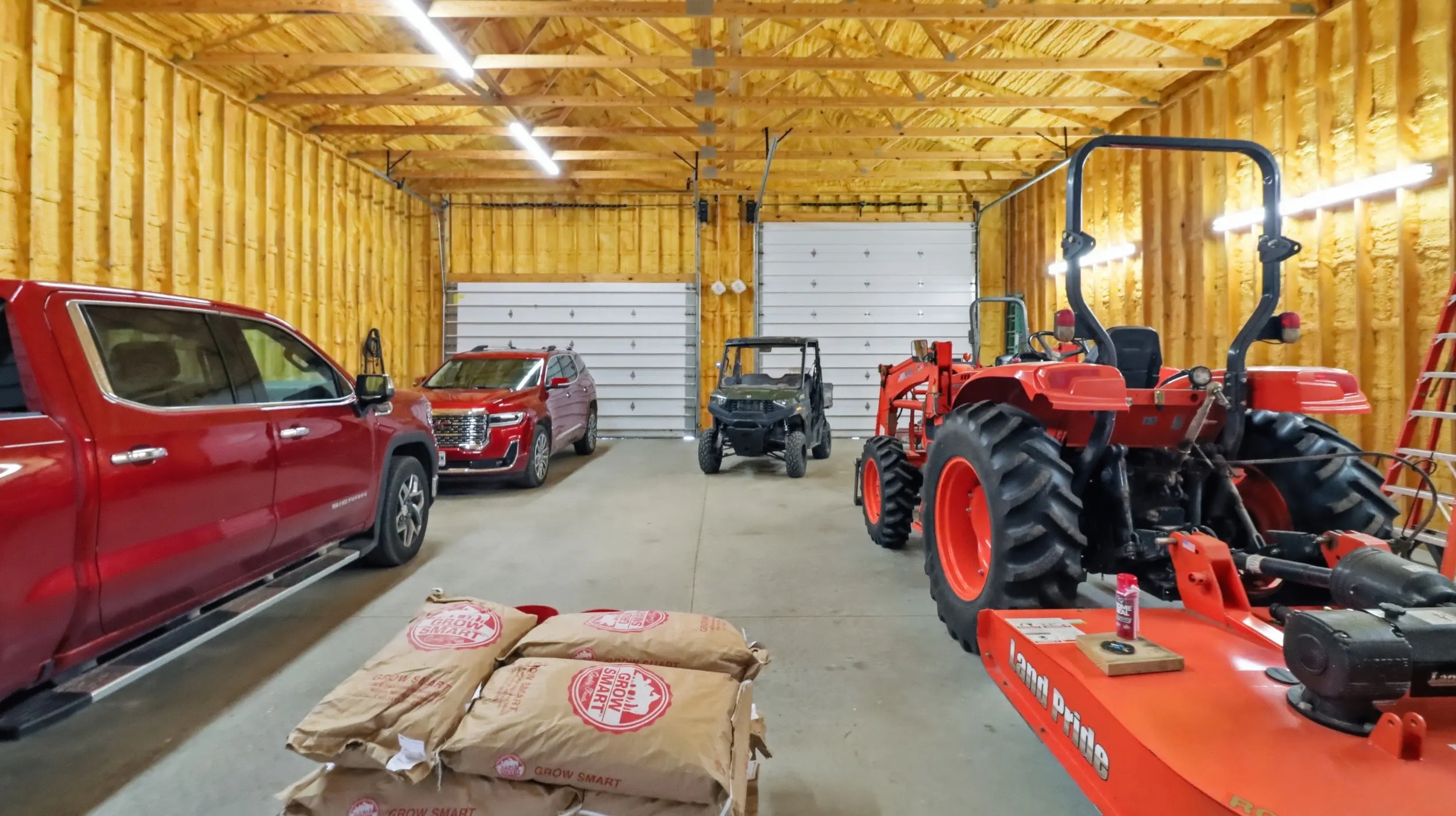 A standout feature is the impressive 40×48 insulated shop/RV storage building with concrete floors, electric, and four drive-through overhead doors (two 14’ and two 10’), plus 50-amp service — perfect for ranch equipment, horse trailers, RVs, or a workshop. A detached garage adds additional storage and functionality.