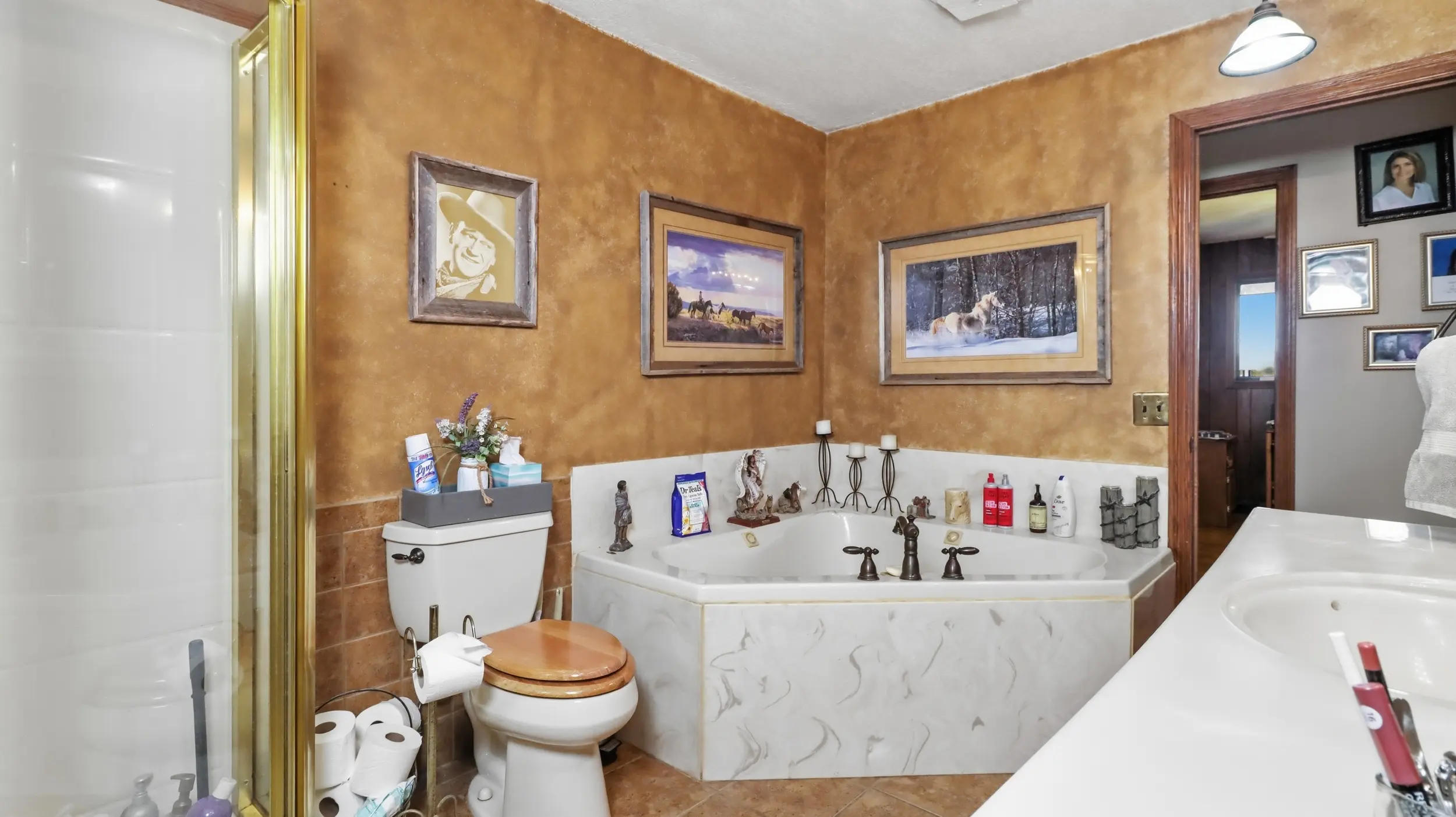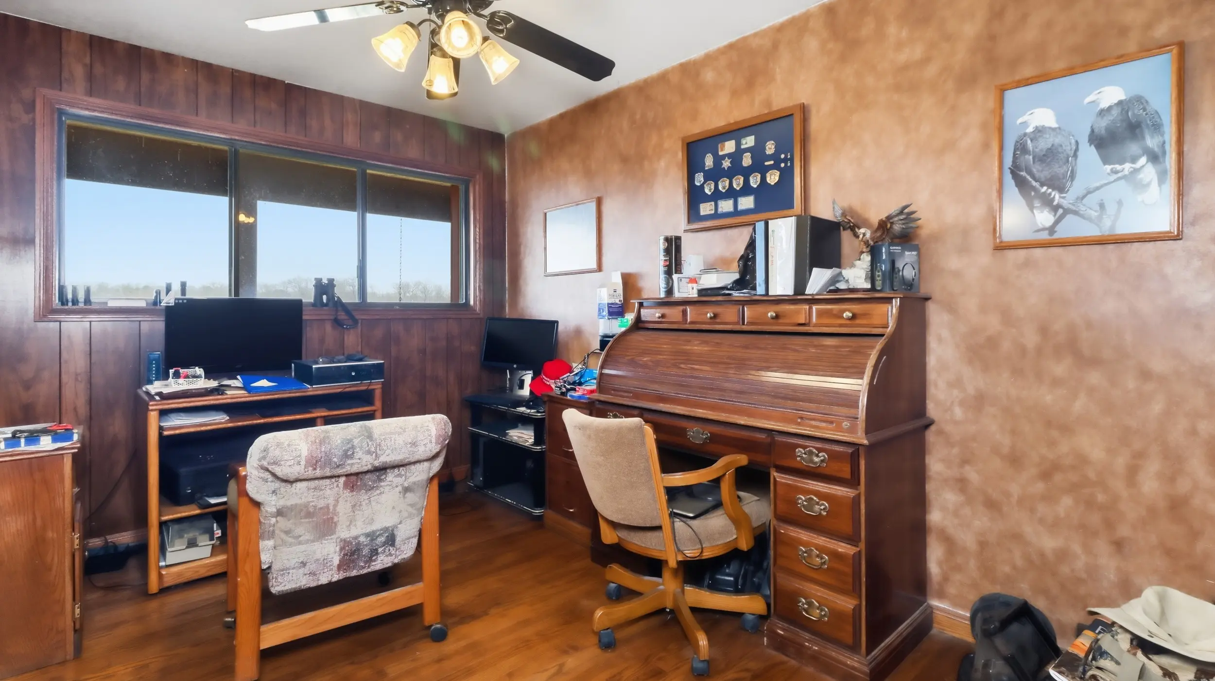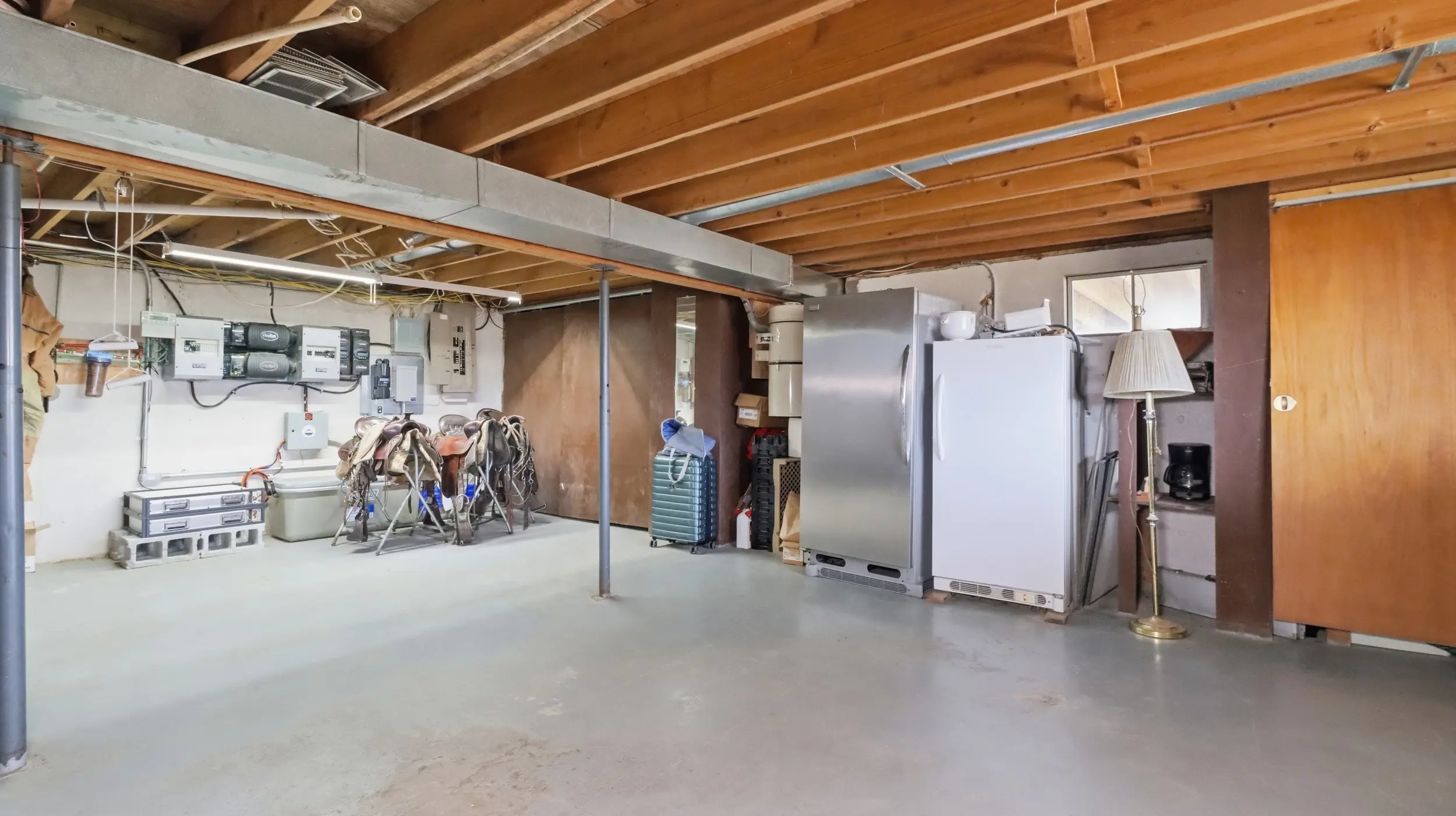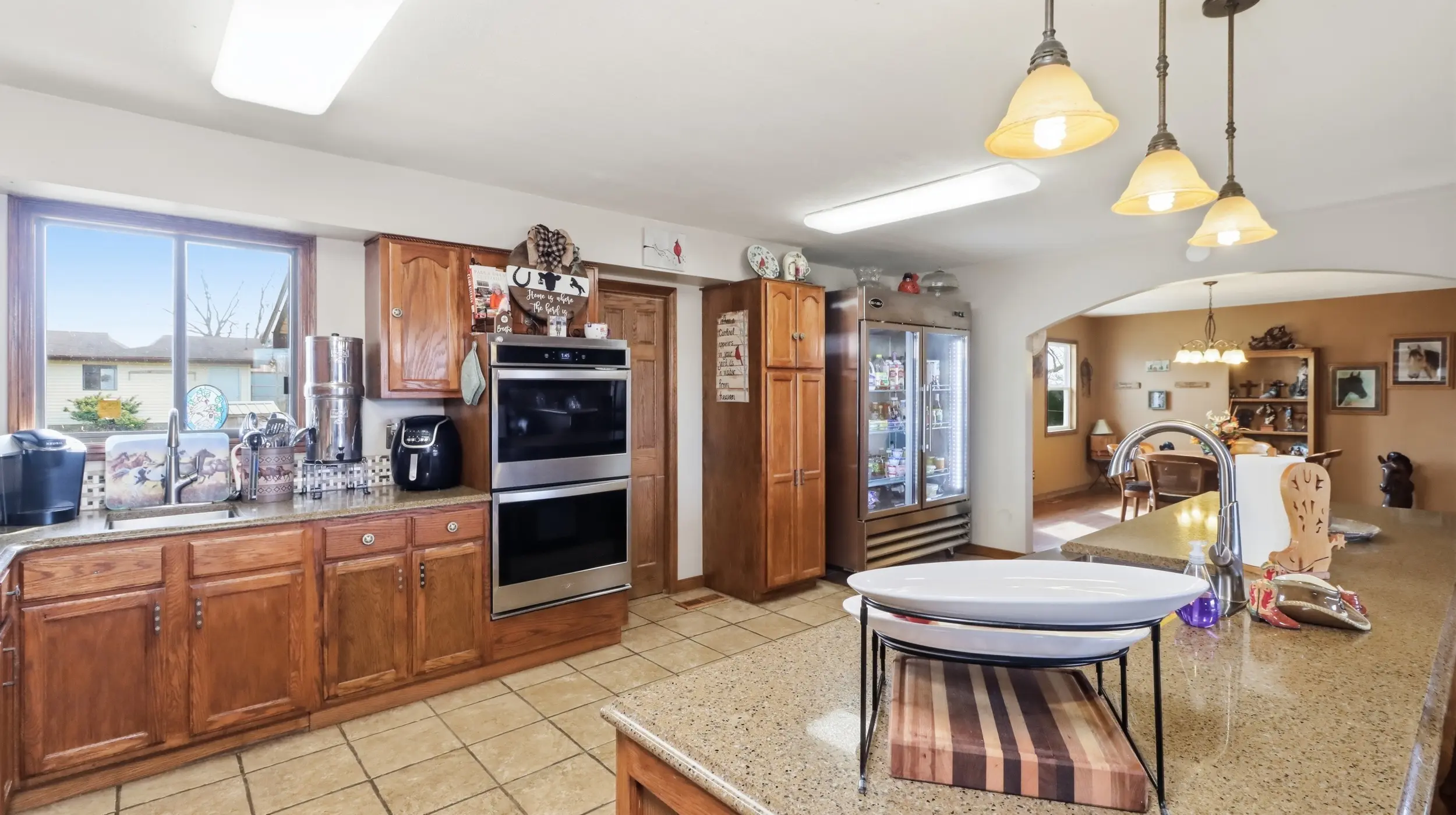 A standout feature is the impressive 40×48 insulated shop/RV storage building with concrete floors, electric, and four drive-through overhead doors (two 14’ and two 10’), plus 50-amp service — perfect for ranch equipment, horse trailers, RVs, or a workshop. A detached garage adds additional storage and functionality.