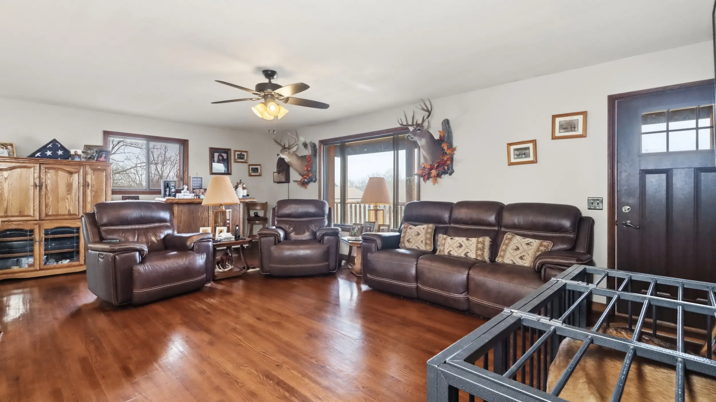 Hardwood floors run throughout the home, and the 3-bedroom, 2-bath layout with walkout basement provides flexible living space and easy indoor/outdoor access.