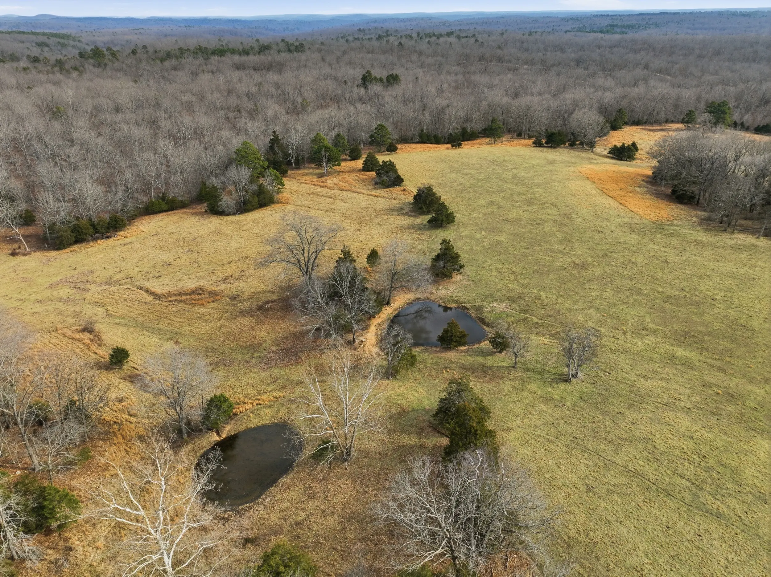 The land features approximately 100 acres of lush, high-producing pasture, including 30 acres of established hay ground, with quality fencing and cross-fencing, much of it pipe reinforced. The gentle, usable terrain makes this property ideal for livestock grazing, rotational pasture management, or an equestrian operation. Water is abundant, with six ponds, two of which are stocked with bass and crappie, offering both livestock water sources and recreational fishing.