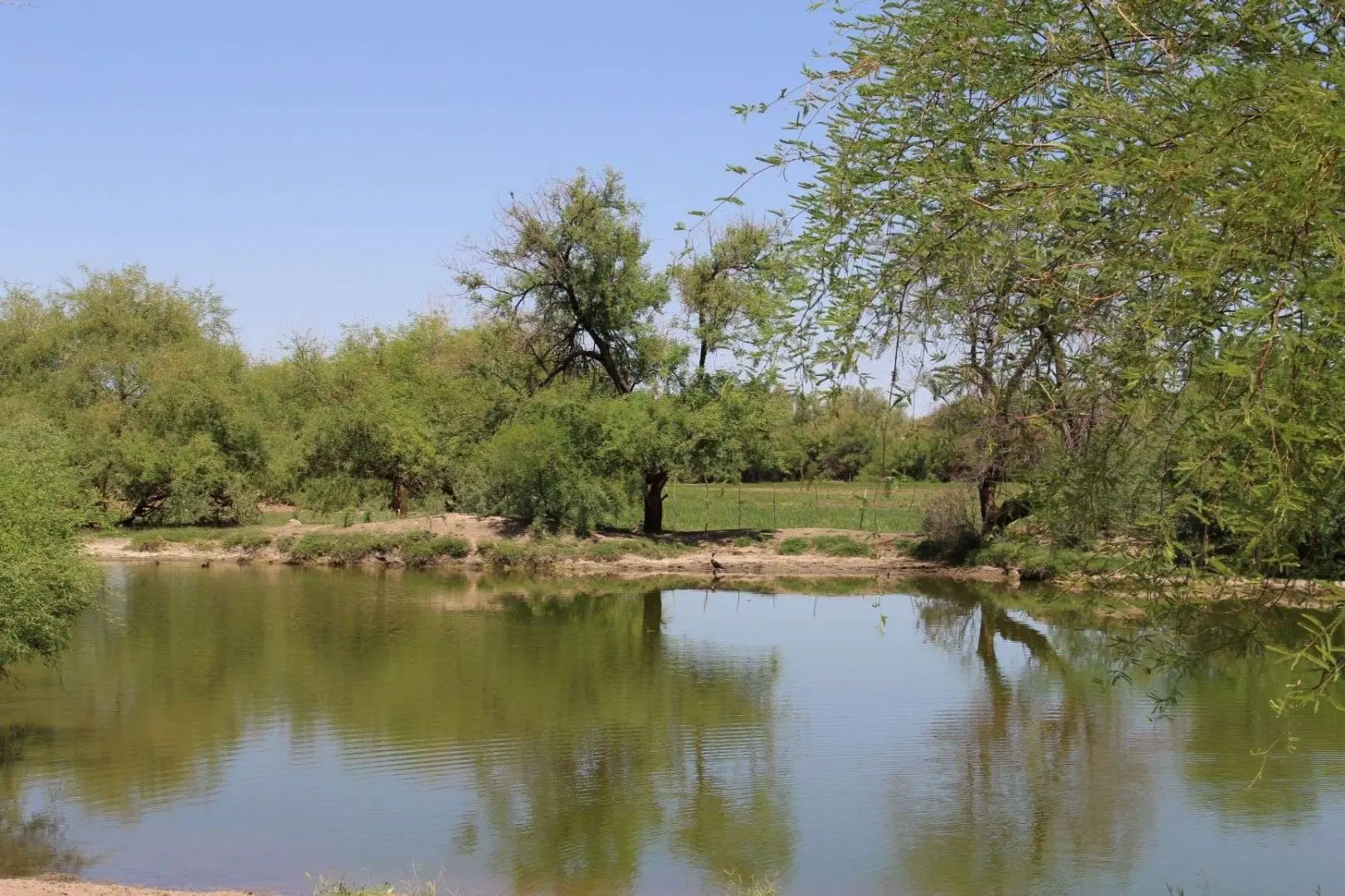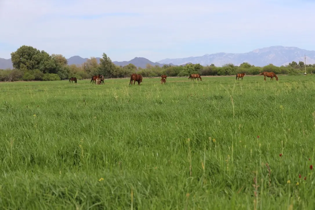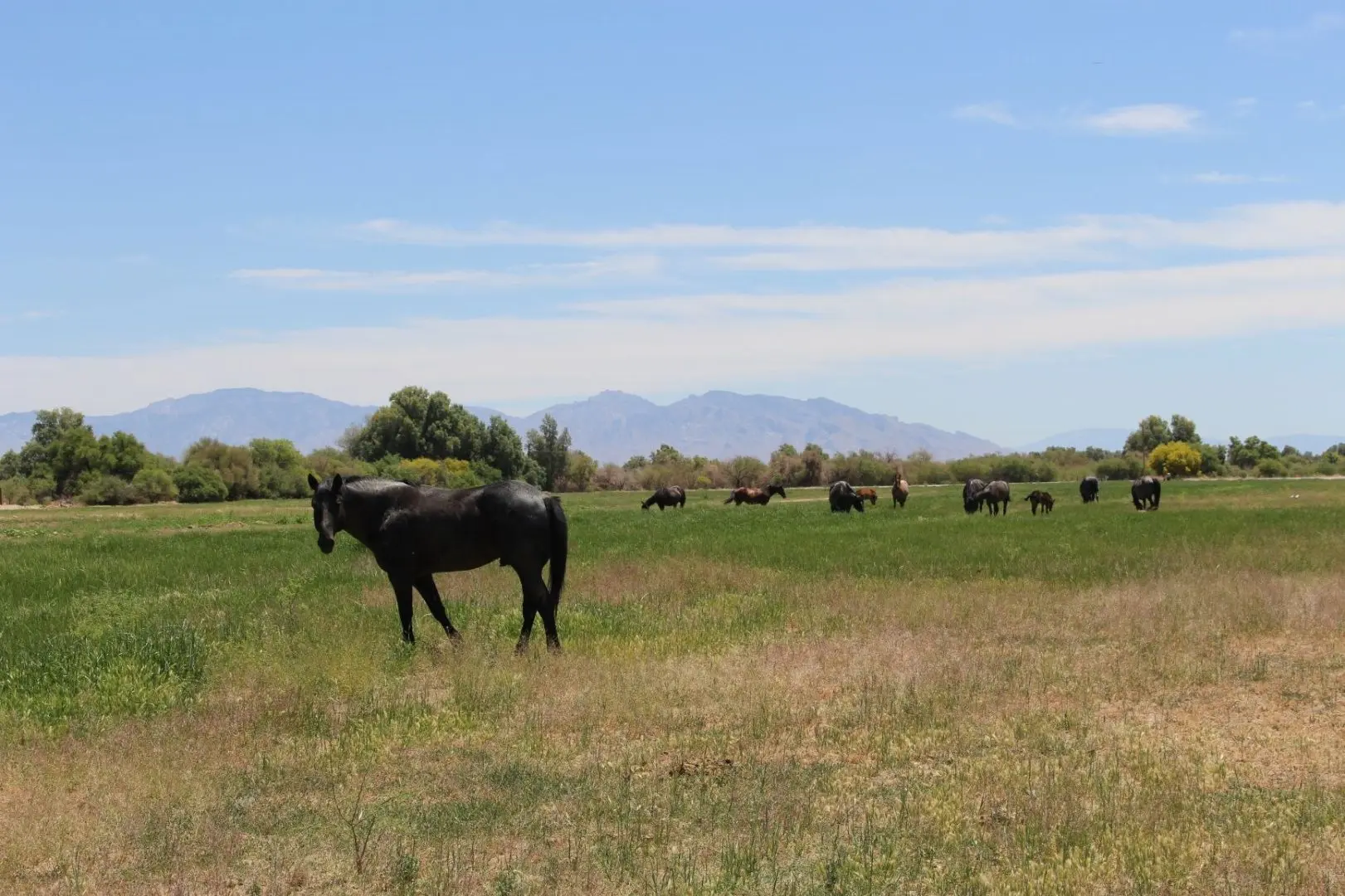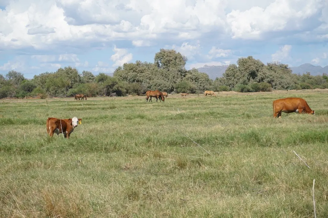 Abundant year-round water makes this ranch in Marana a true oasis in the desert, situated along the Santa Cruz River just 20 minutes north of Tucson. 112.8+/- Deeded acres; 150+/- acres of permanent pasture, 3,700+/- acres of desert sub-lease, 14+/- acres of farm fields, and well improved headquarters with excellent access off a paved road.