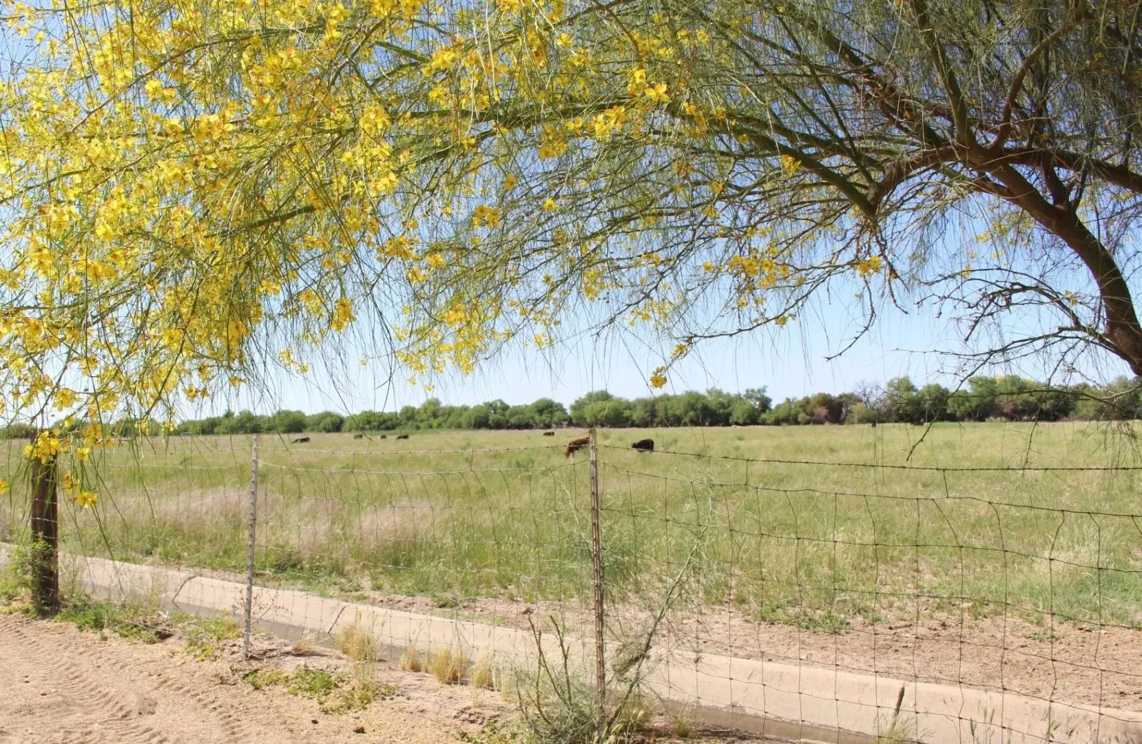 This 200-300 head working ranch is truly a unique package in the desert southwest with 1,900 acre-feet of no cost, appropriated effluent water rights that irrigate 150+/- acres of pasture. Additionally, another 15 acres of pasture at the HQ is irrigated from a well. 14+/- acres of farm fields currently produced alfalfa for the ranch are irrigated from the local irrigation district.