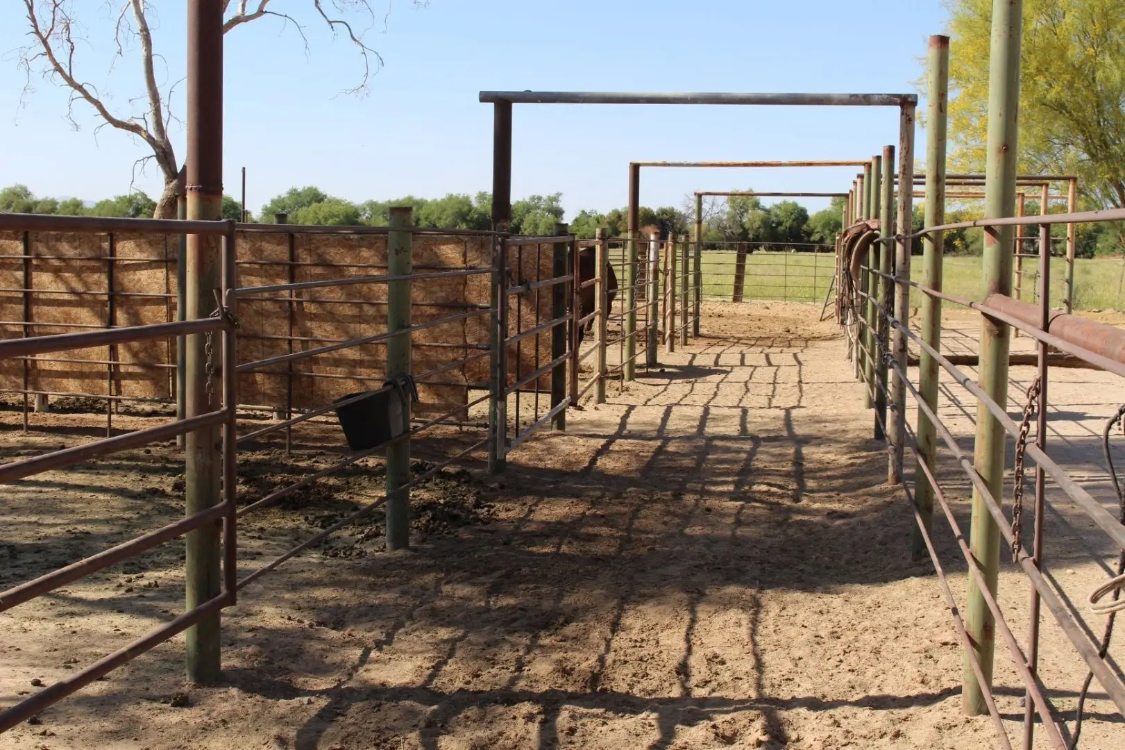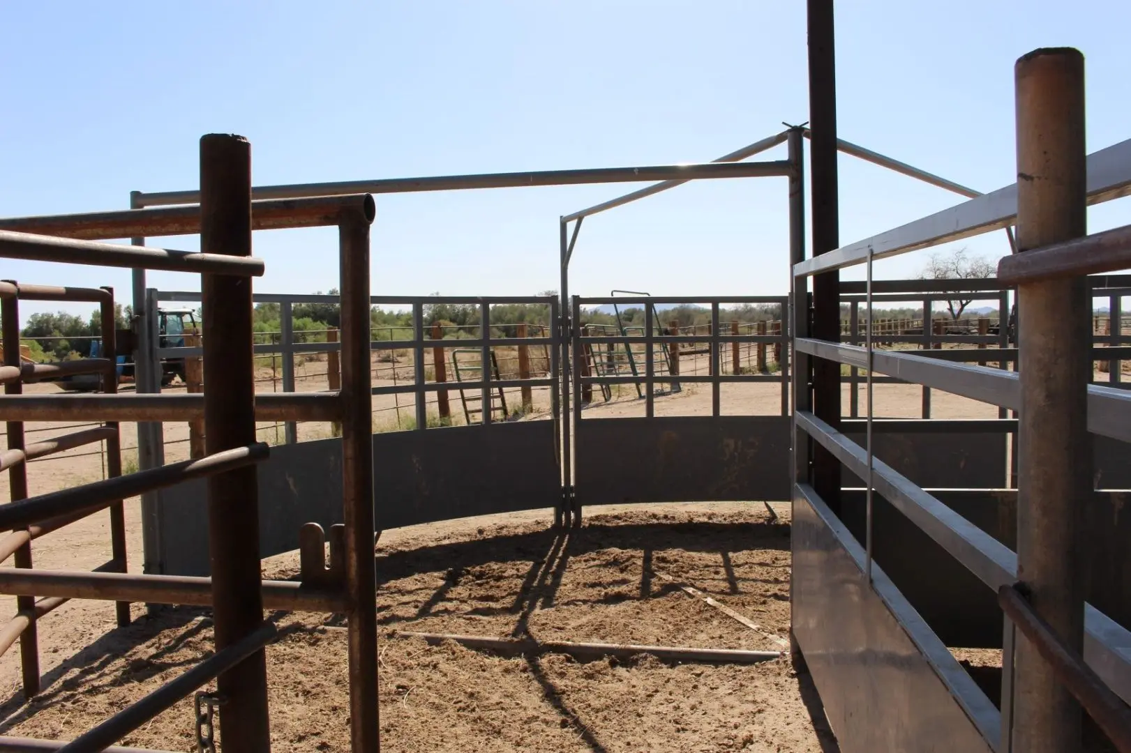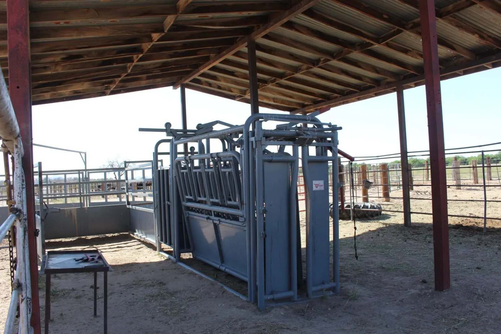 There are a total of four sets of corrals; one new large set of steel pipe corrals with good alleyways for sorting, enlargeable pens, covered work area with modern squeeze chute, preg check gate, and crowding tub.
