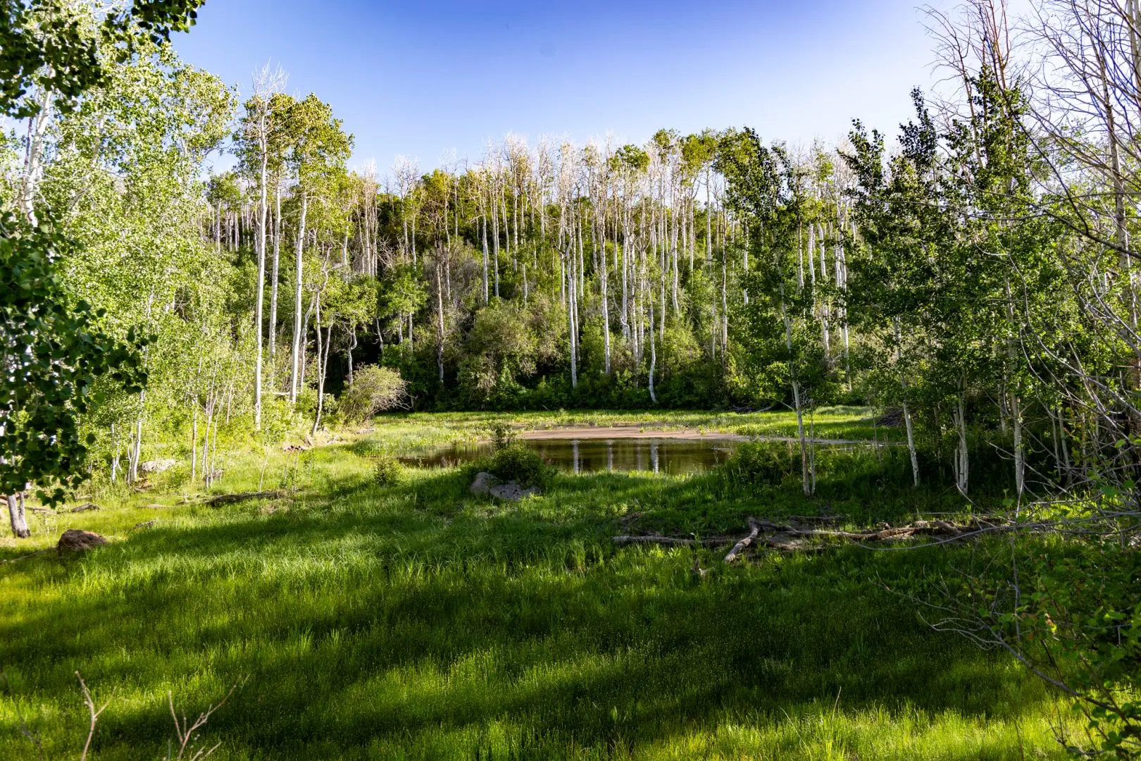 Additionally, the loggers bladed a network of roads throughout the ranch, now blanketed with grass, that give easy access to all corners of the ranch. It’s simply a delight to hike, go 4-wheeling, ride horses, and hunt on this ranch with great access throughout the vast acreage. Anyone who can sit in a side-by-side UTV can enjoy this property. On the upper southeast corner of the ranch, the 4WD trail climbs up through groves of Douglas fir, mature aspens, and blue spruce to a lovely lake that is an ideal place to canoe, fish, and recreate.