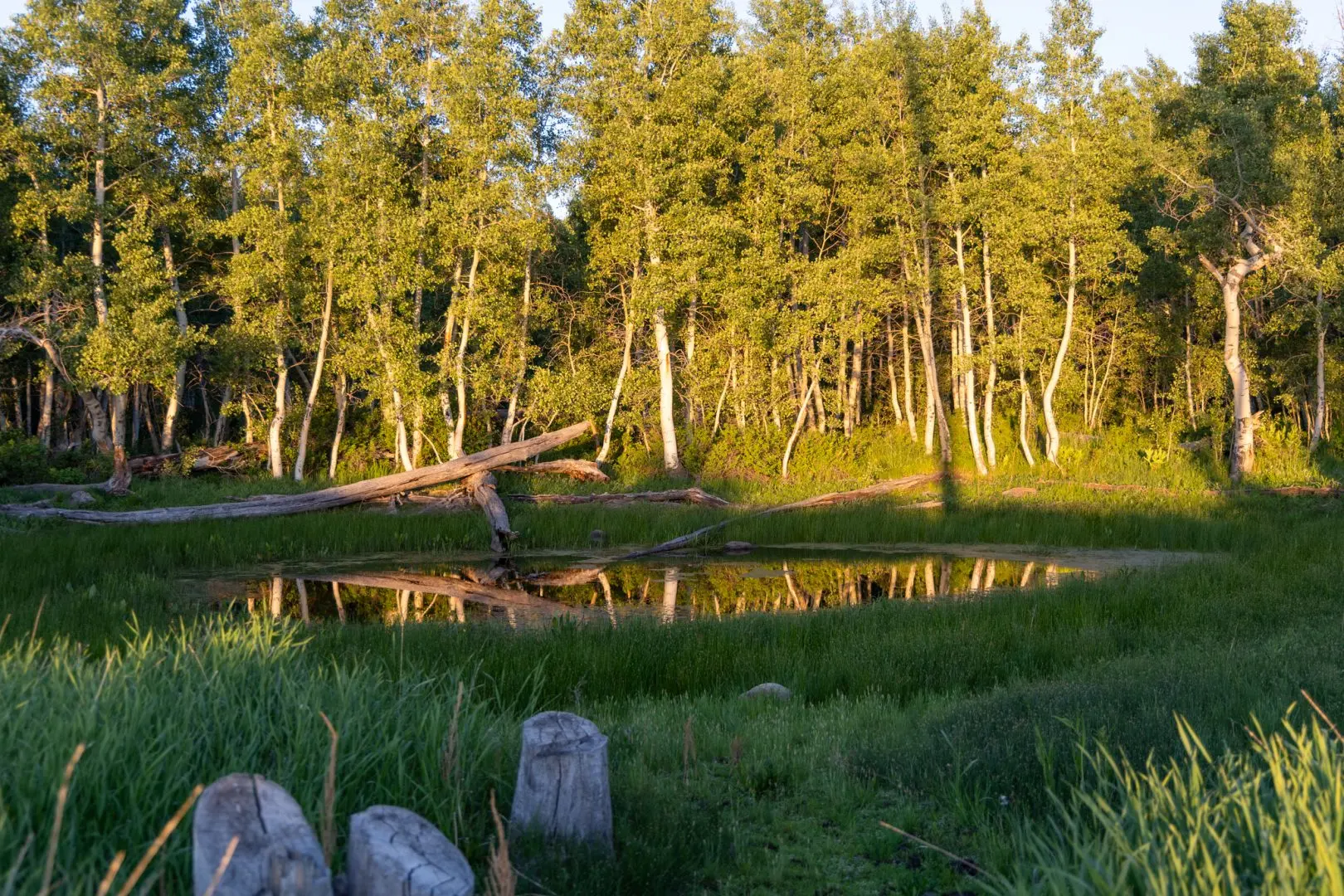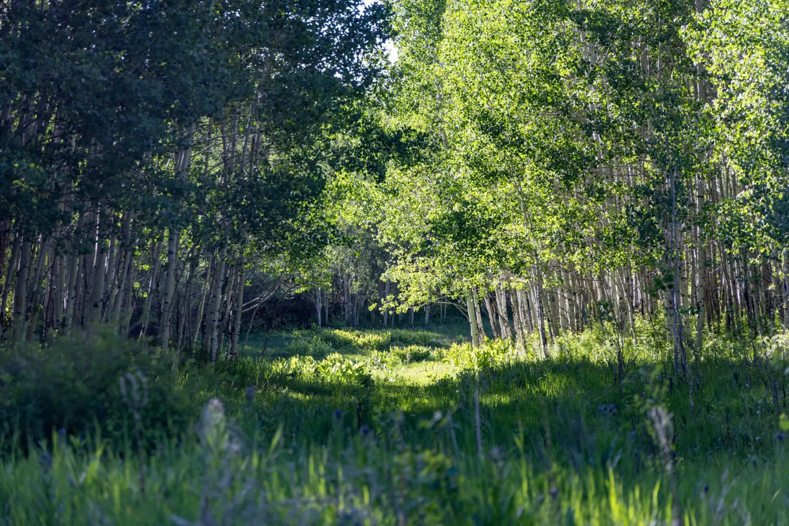 The land on Buckhorn Lakes Ranch features a diverse ecosystem, from protein-rich oak brush to healthy aspen groves, as well as towering blue spruce and Douglas fir trees. Those who are savvy about the Colorado high country know that many aspen forests have been devastated by SADS–“sudden aspen death syndrome”–whereby aging aspen groves are full of dead trees and fallen logs. It’s an unsightly mess that also poses a significant fire danger. However, the Buckhorn Lakes Ranch was logged about 30 years ago, and the new generation of aspen trees is vibrantly healthy.