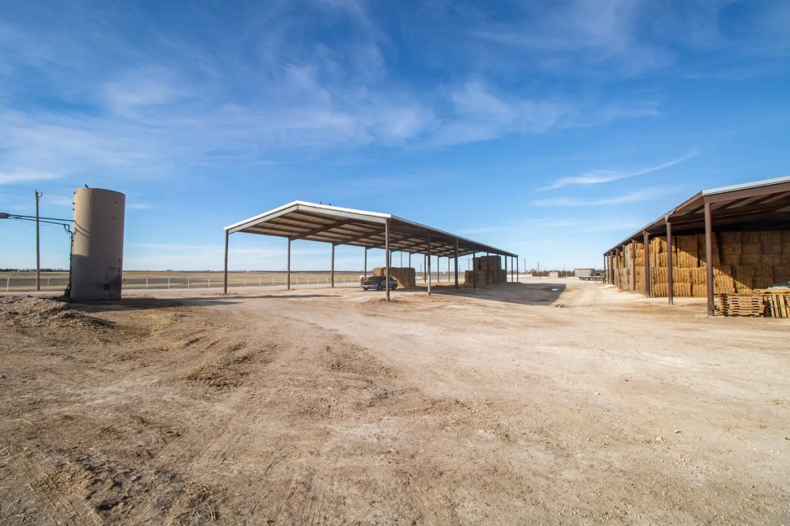 - 2 hay barns (1,000 ton capacity each)