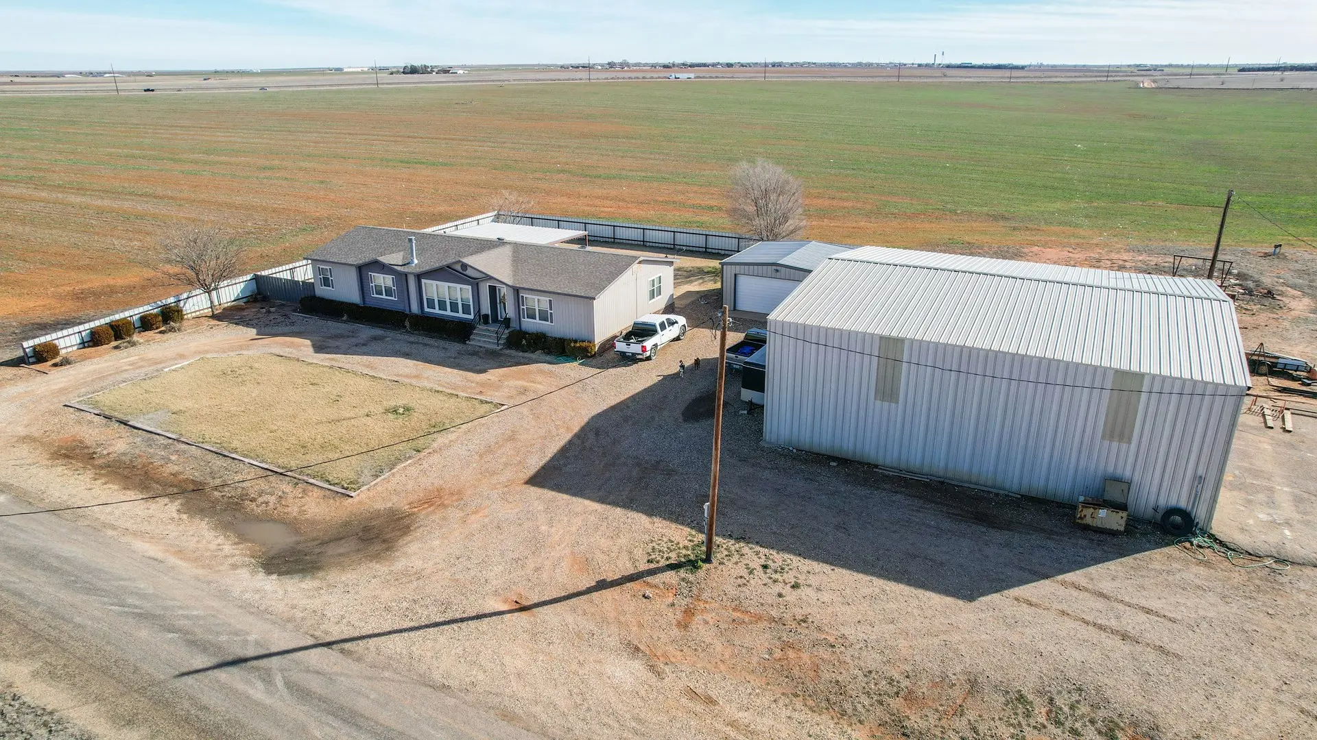 - House 2: double wide trailer 3 bed 2 bath with 2 car garage and 60×60 shop with bathroom.
