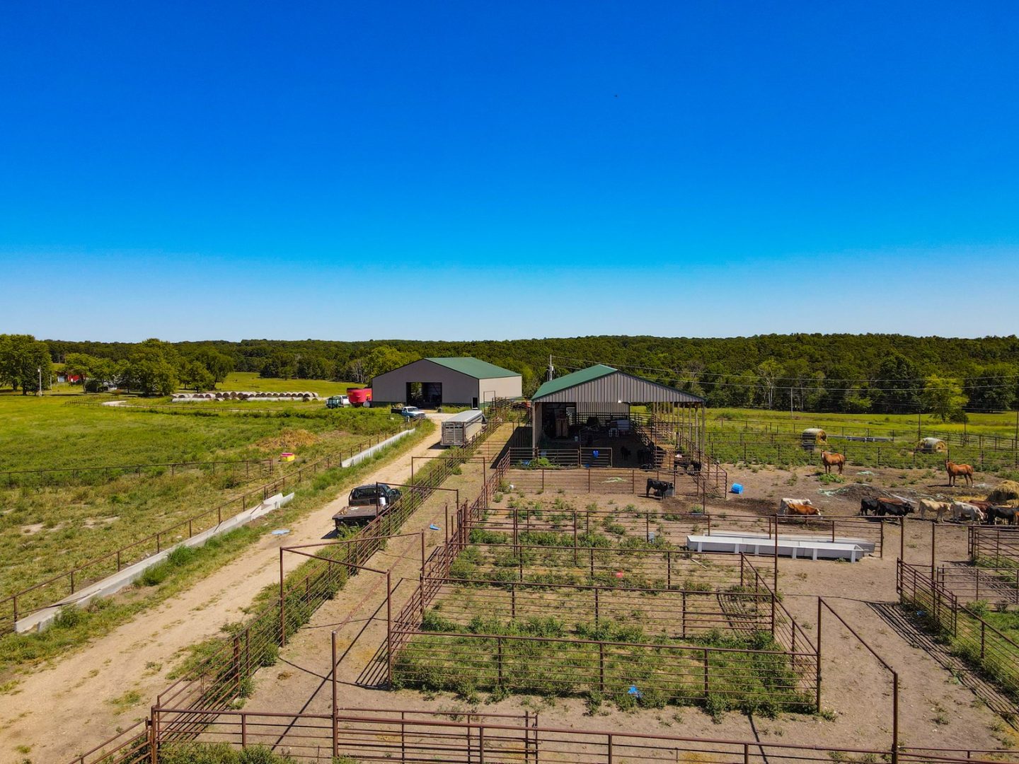 The well-designed pipe fence cattle working facility includes feed bunks, water sources, and numerous paddocks for efficient cattle rotation. Fertile bottom land has previously been used for corn silage, while hay pastures and wet weather creeks enhance the property’s agricultural versatility. Excellent perimeter fence, this farm is ready for your herd. The property can be purchased as a whole or divided into three separate tracts to suit your needs.