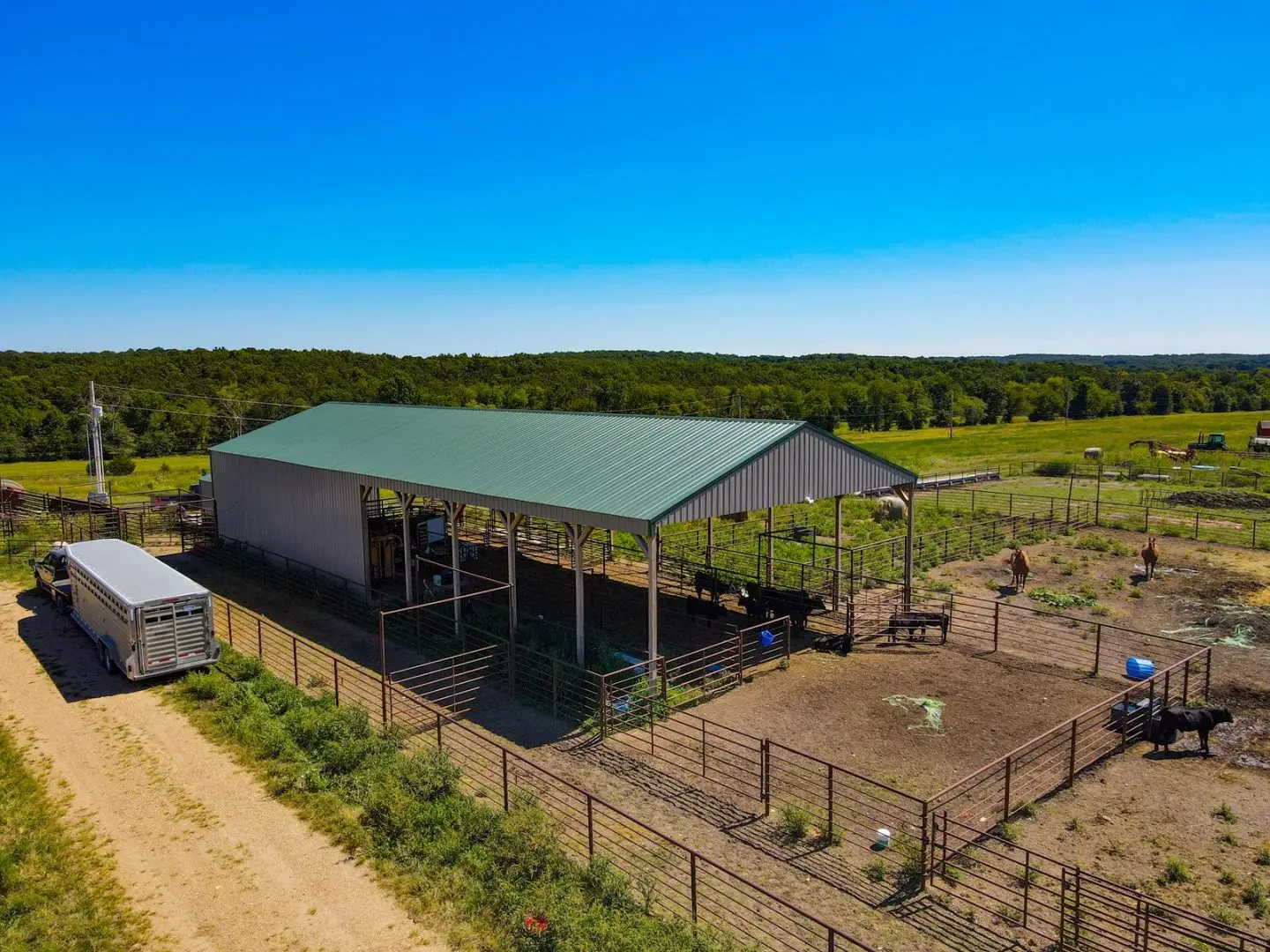 Discover this expansive 874± acre farm/ranch in Edwards, MO, ideal for both farming and ranching. This cattle ranch in Edwards boasts outstanding cattle working facilities, including pipe corrals, multiple barns, and a partially finished home measuring 35×75. The home is weather-tight, with a partially completed interior ready for your personal touch. The farm features several outbuildings, including a spacious 60×100 barn, a 60×60 structure, and a finished 24×24 office equipped with a shower and kitchen area.