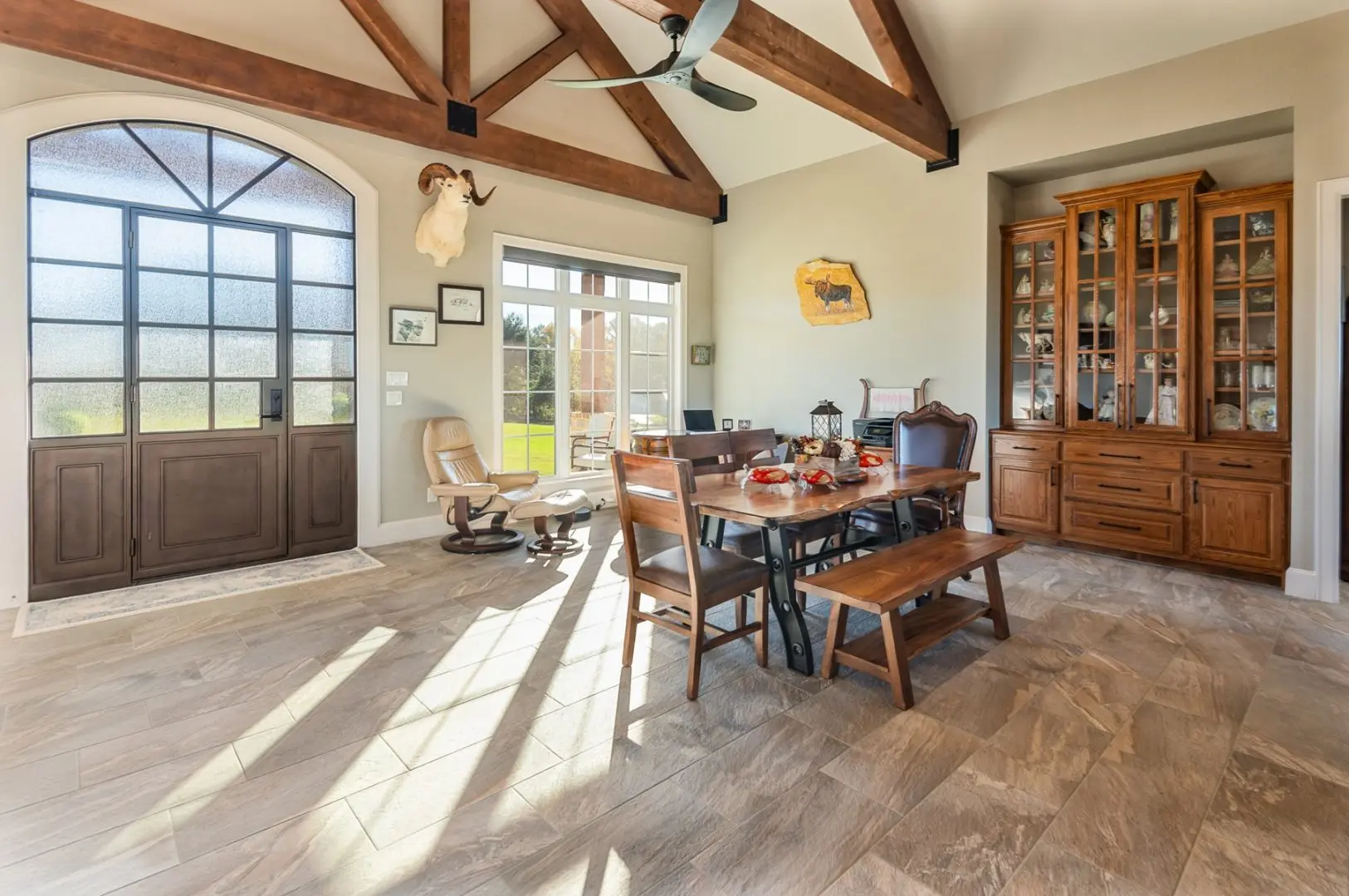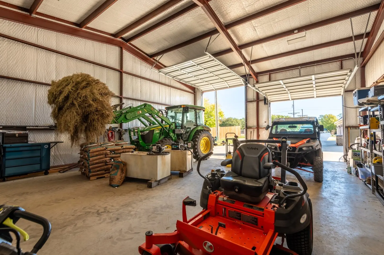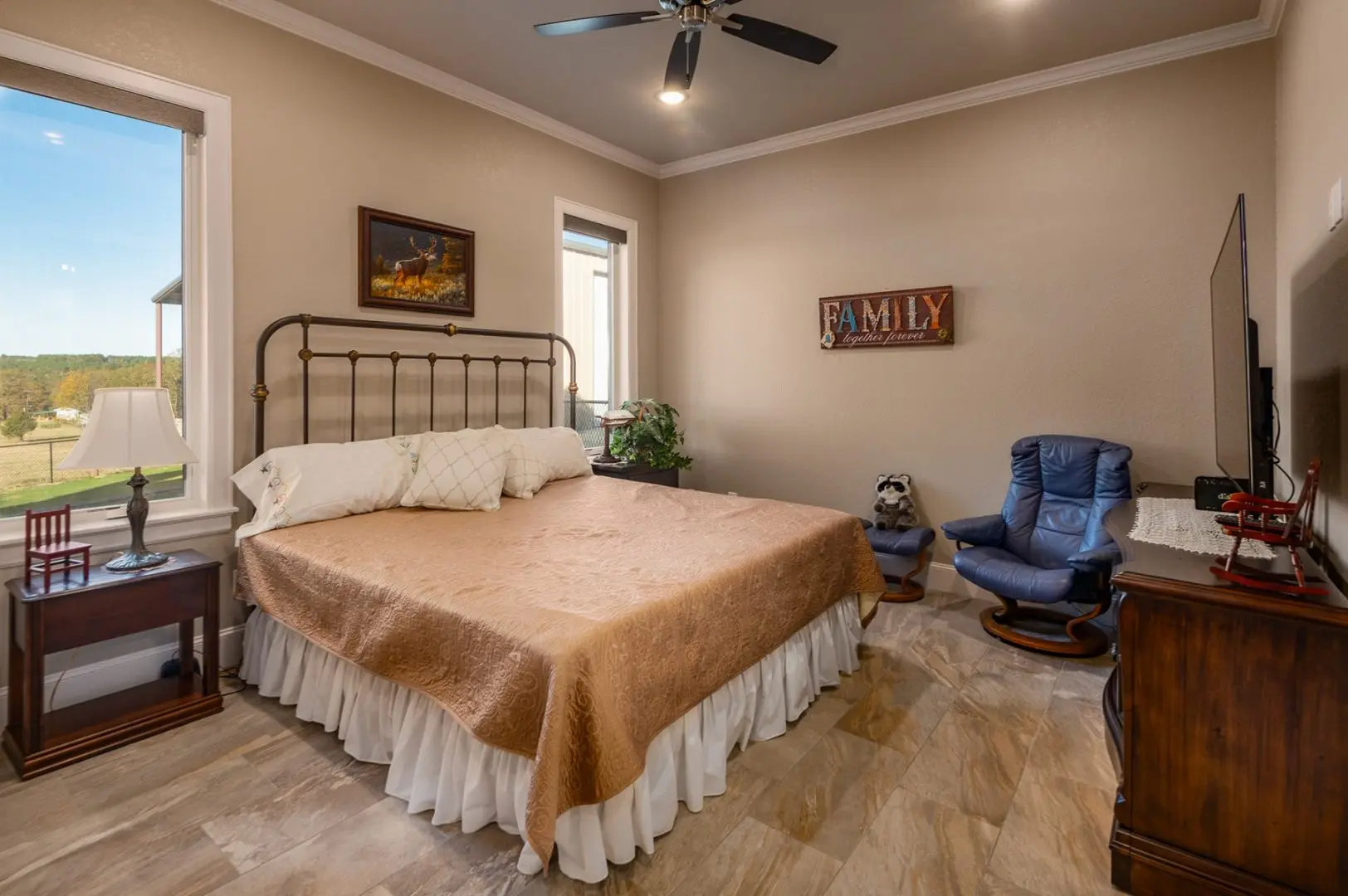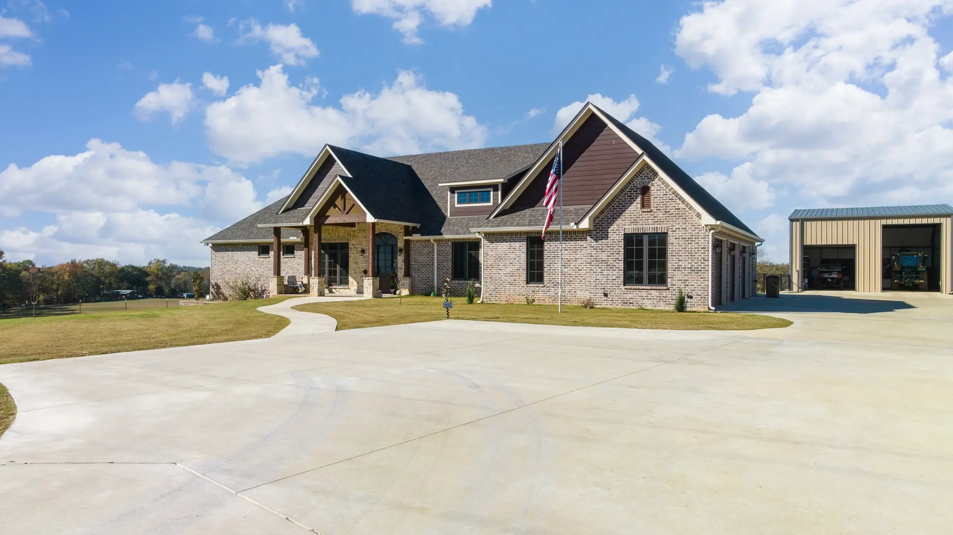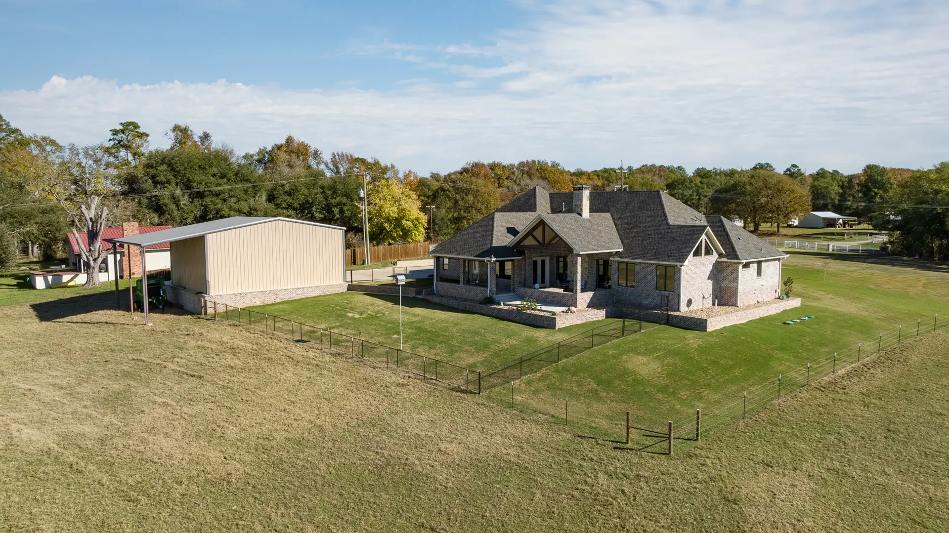 The 120-acre J Bar L Ranch for sale in Northern Rusk County, Texas offers a unique opportunity to experience East Texas ranch living. The property features a stunning 4,322 sq ft home with 3 bedrooms, 3 bathrooms, and a 3-car attached garage. Built in 2021, the home boasts high ceilings, luxurious finishes, and plenty of natural light.