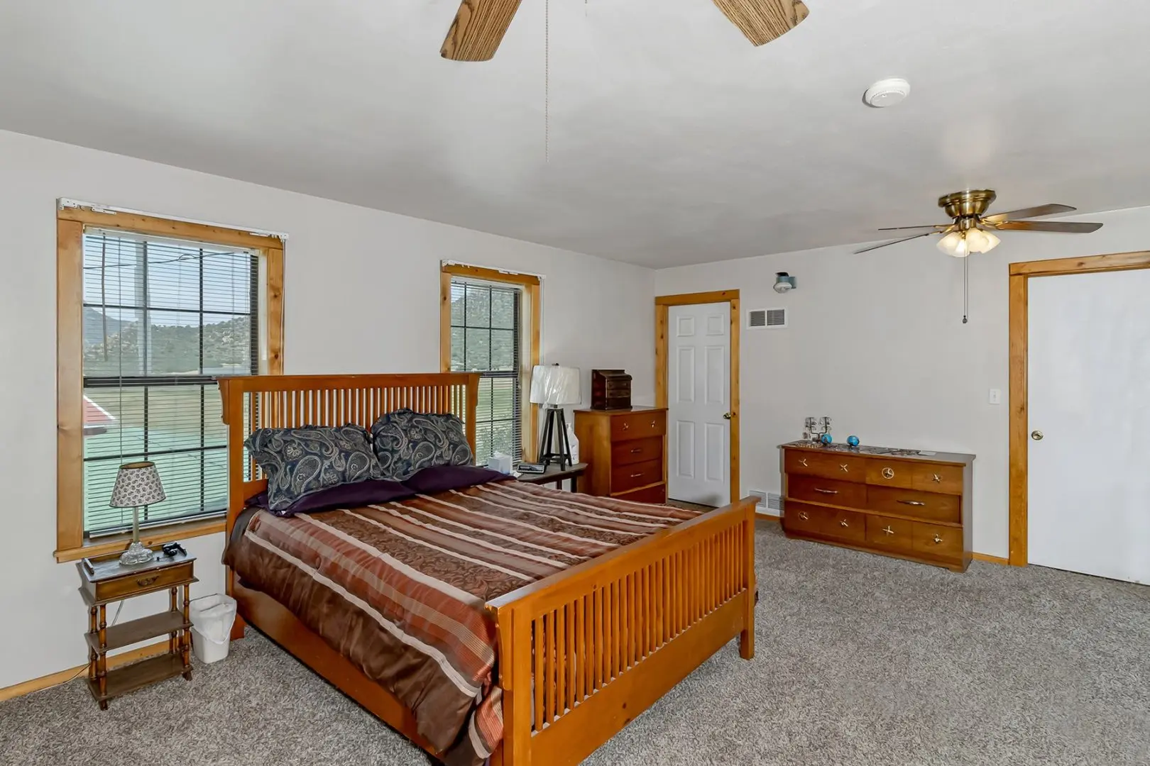 The main home is equipped with 3 bedrooms and 1 bath. The large bathroom makes cleaning up from a day of ranching activities or hunting on your mountain property. Two of the bedrooms have their own private balconies with spectacular mountain views that surround this amazing mountain ranch and home.