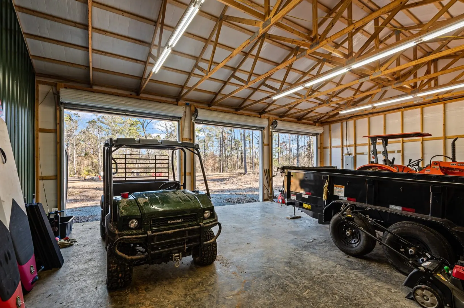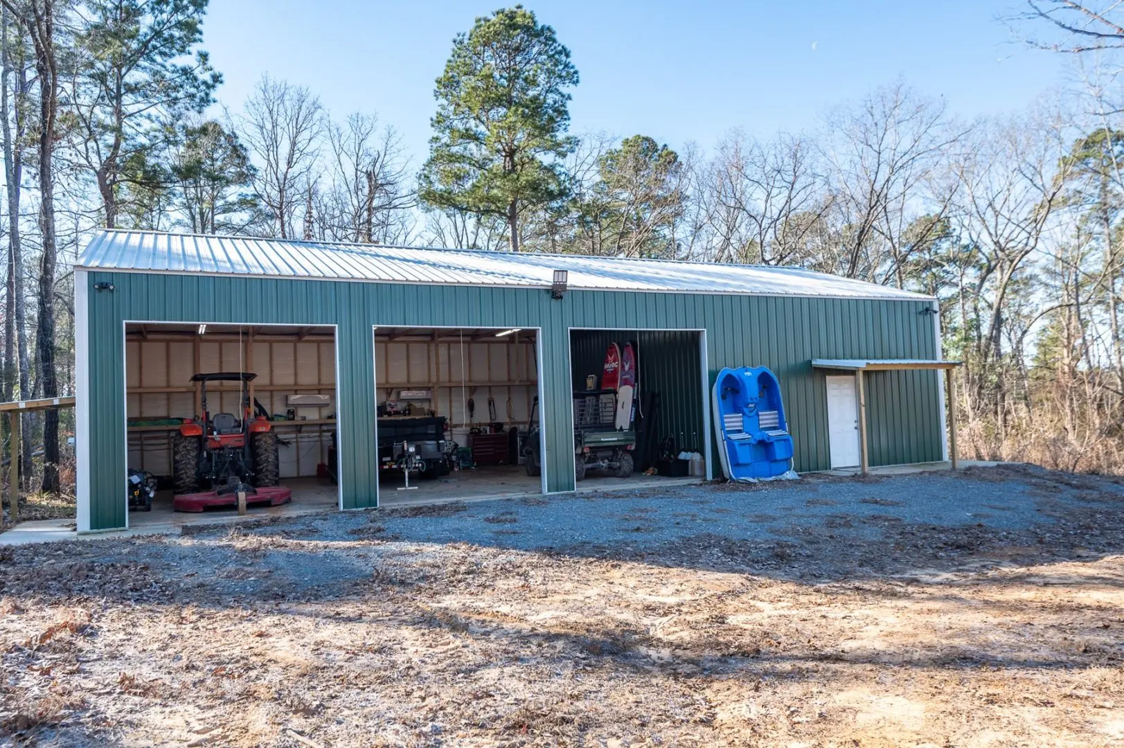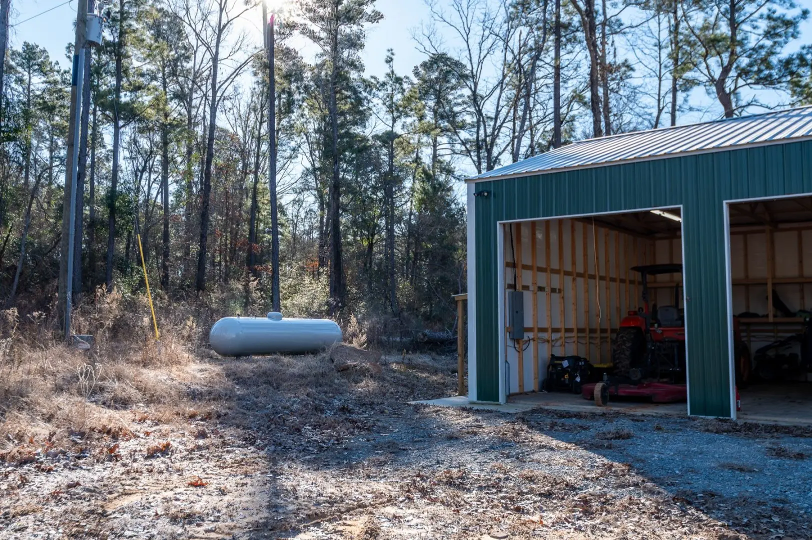 The heart of Diana Ranch is a newly built barndominium, designed for comfort and convenience in a scenic rural setting. The living quarters feature a loft, full bathroom, kitchen, and spacious living area, making it an ideal home base for weekend getaways or extended stays. Adjacent to the barndominium is a three-bay shop, providing ample space for equipment storage, vehicle maintenance, or additional workspace. The shop is outfitted with two mini-split heating and cooling units, ensuring year-round functionality in any season. A 1,000-gallon propane tank is already in place, with quick-attach fittings available for a small generator, adding to the property’s off-grid capability. A new septic system has been installed, and well water sourced from across the pond ensures a reliable water supply.