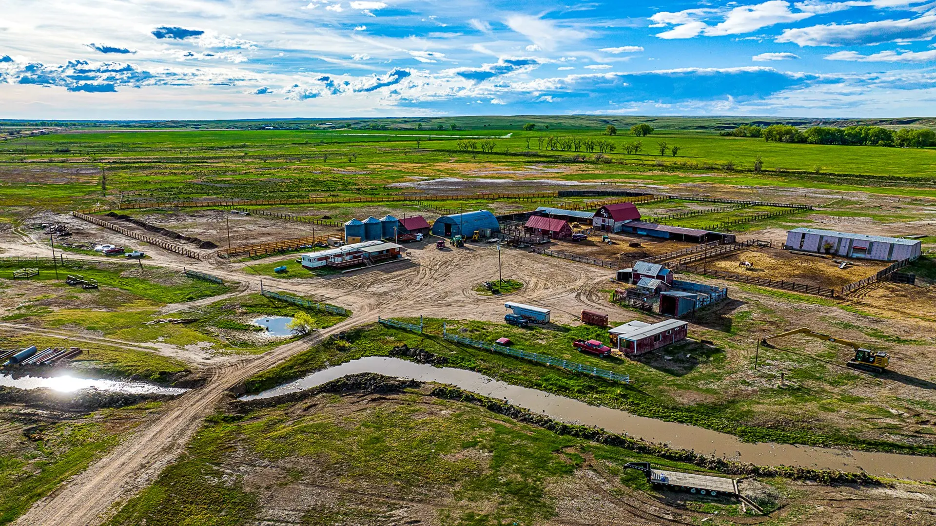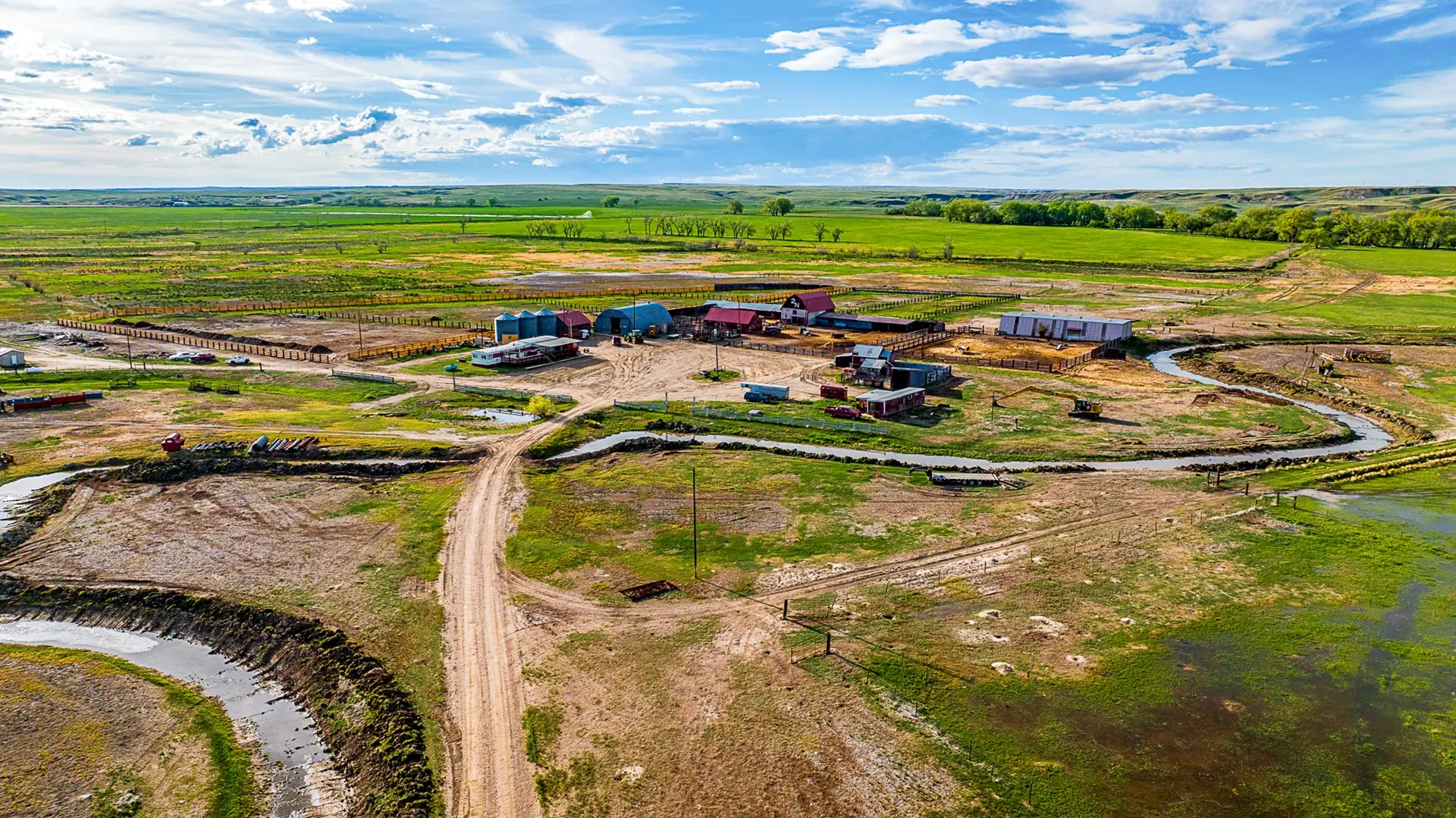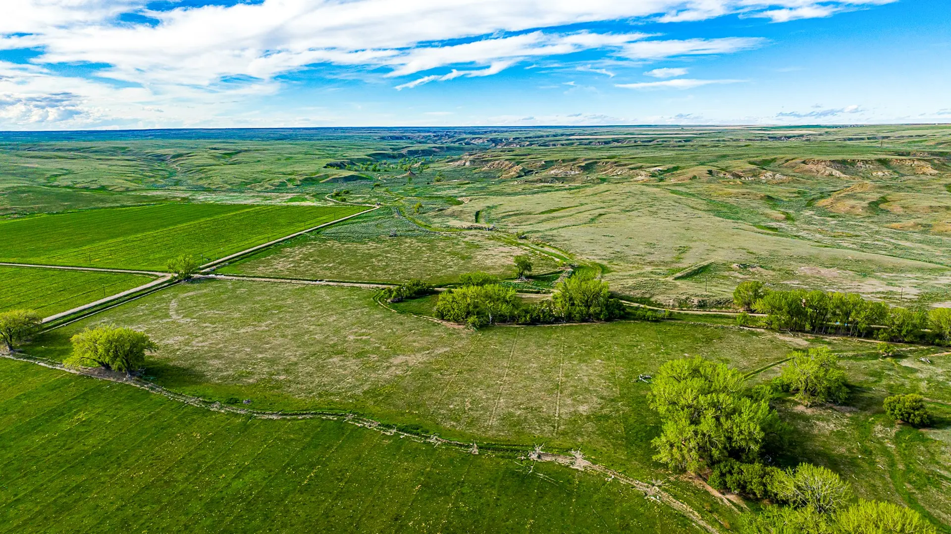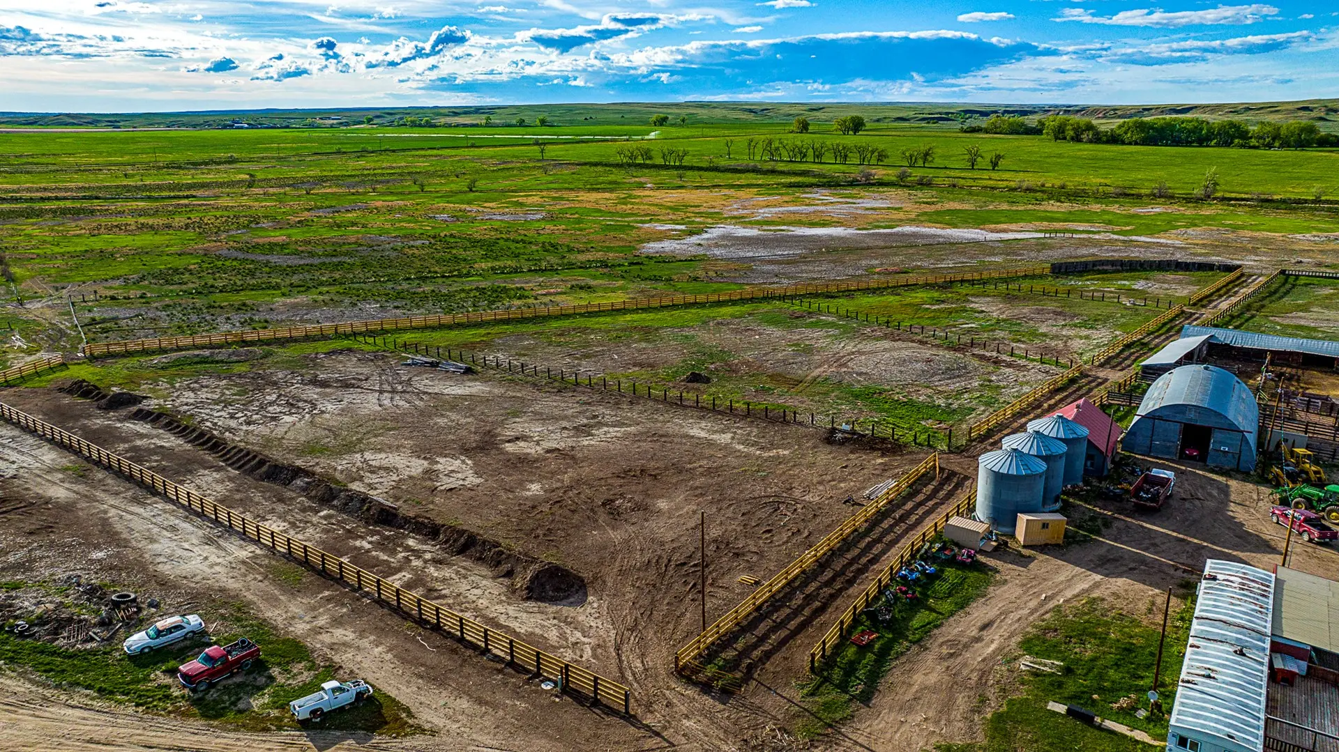 The improvements consist of two mobile homes, calving shed, hip roof barn, shop, equipment shed, and a set of working corrals and 4 large pens that could possibly be converted and utilized as a feedlot. All water to improvements comes from Dodson city water system.