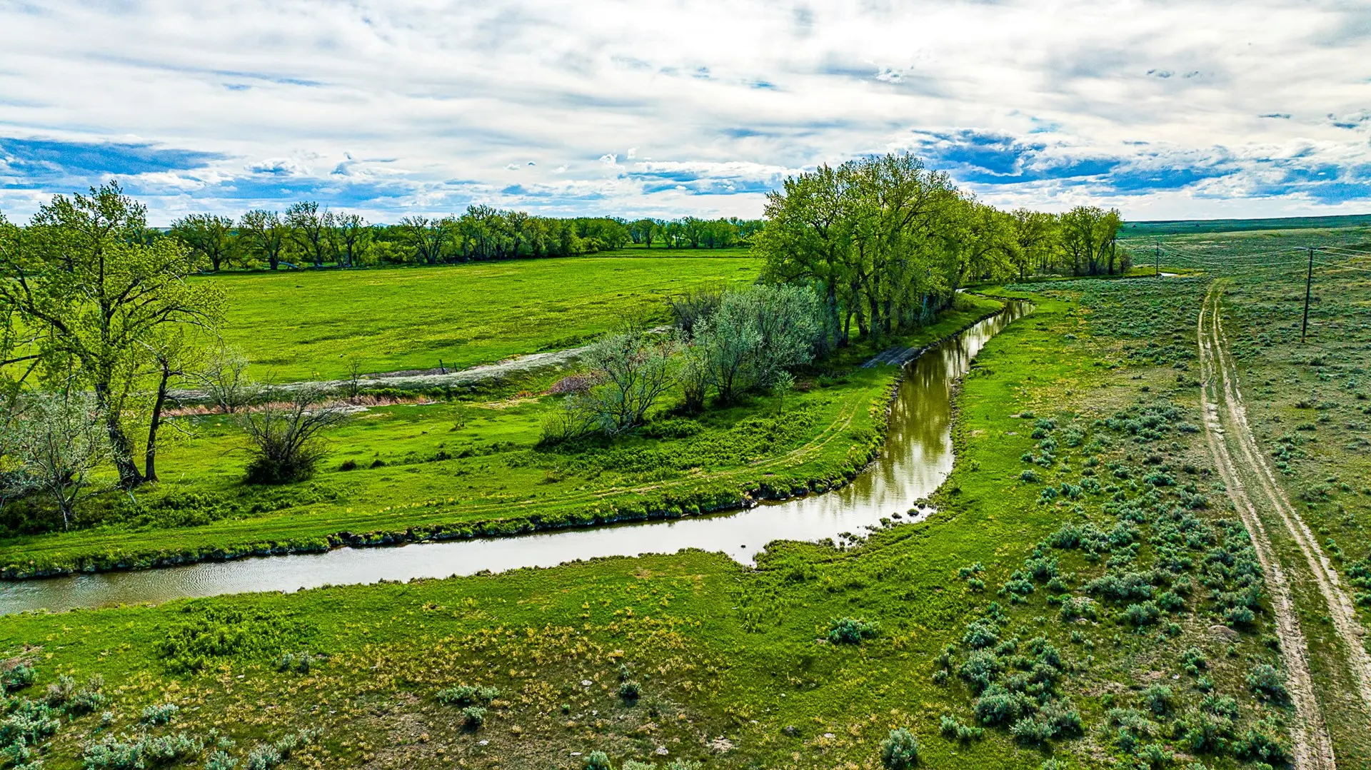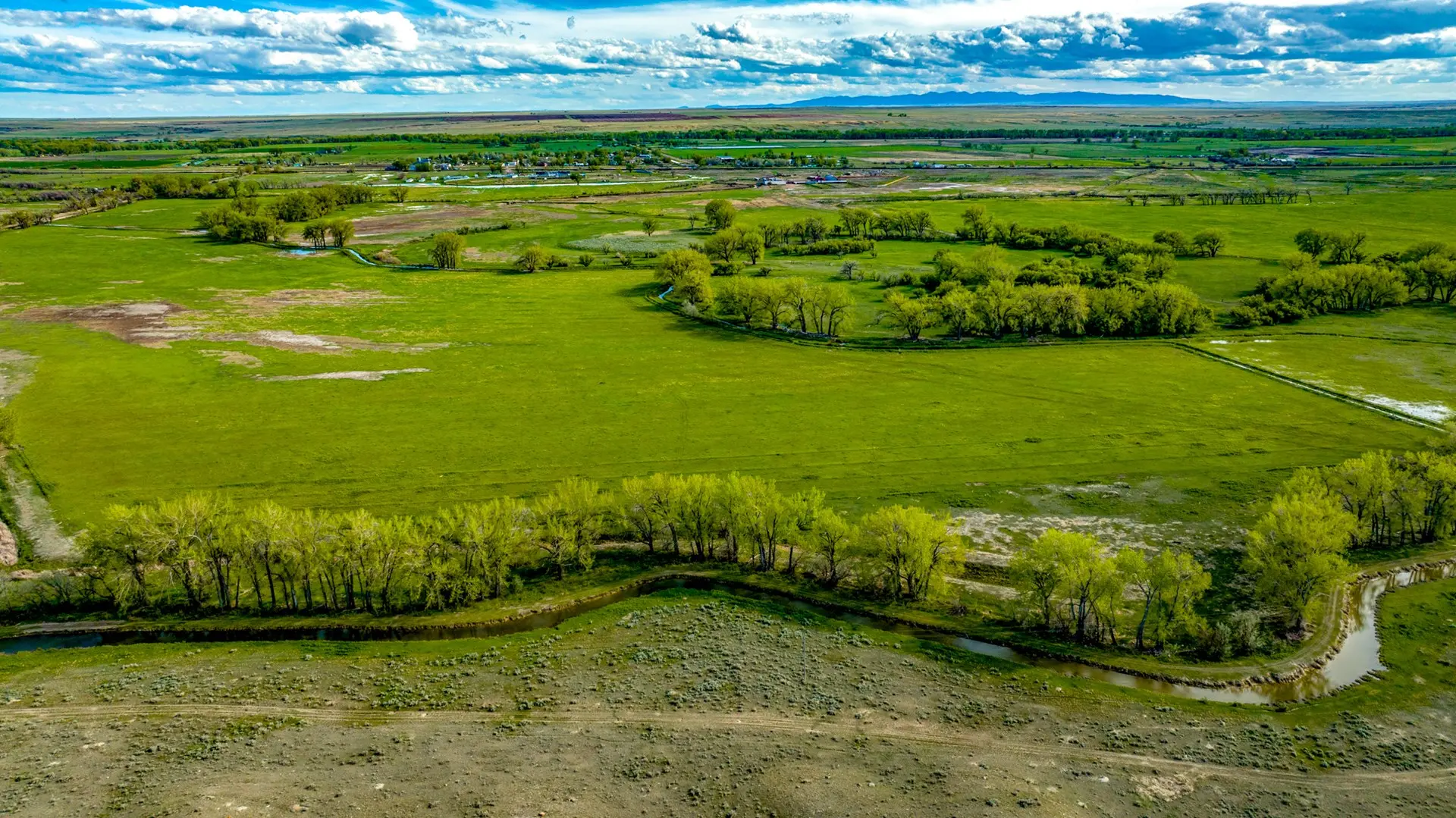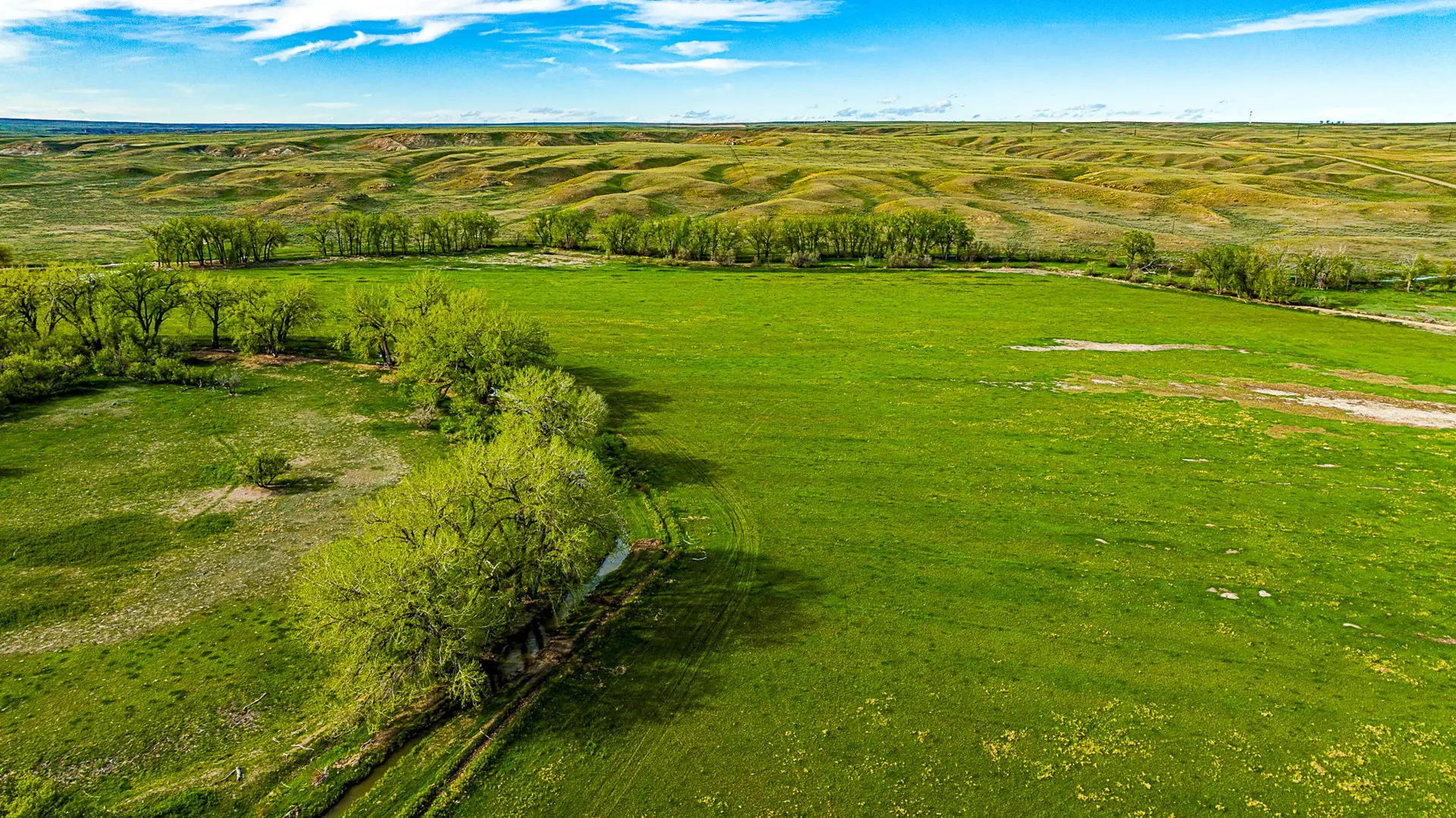 Water on this ranch is typically plentiful throughout. With the Dodson Creek running the length of the ranch, water pockets in the creek will typically hold water. There is a large dam on the north end of the property and another on the south, with a well located halfway up the Dodson creek service by a solar pump. There is also a 400 gallon per minute well located on the south end of the property on the edge of the irrigated acreage that has not been utilized.