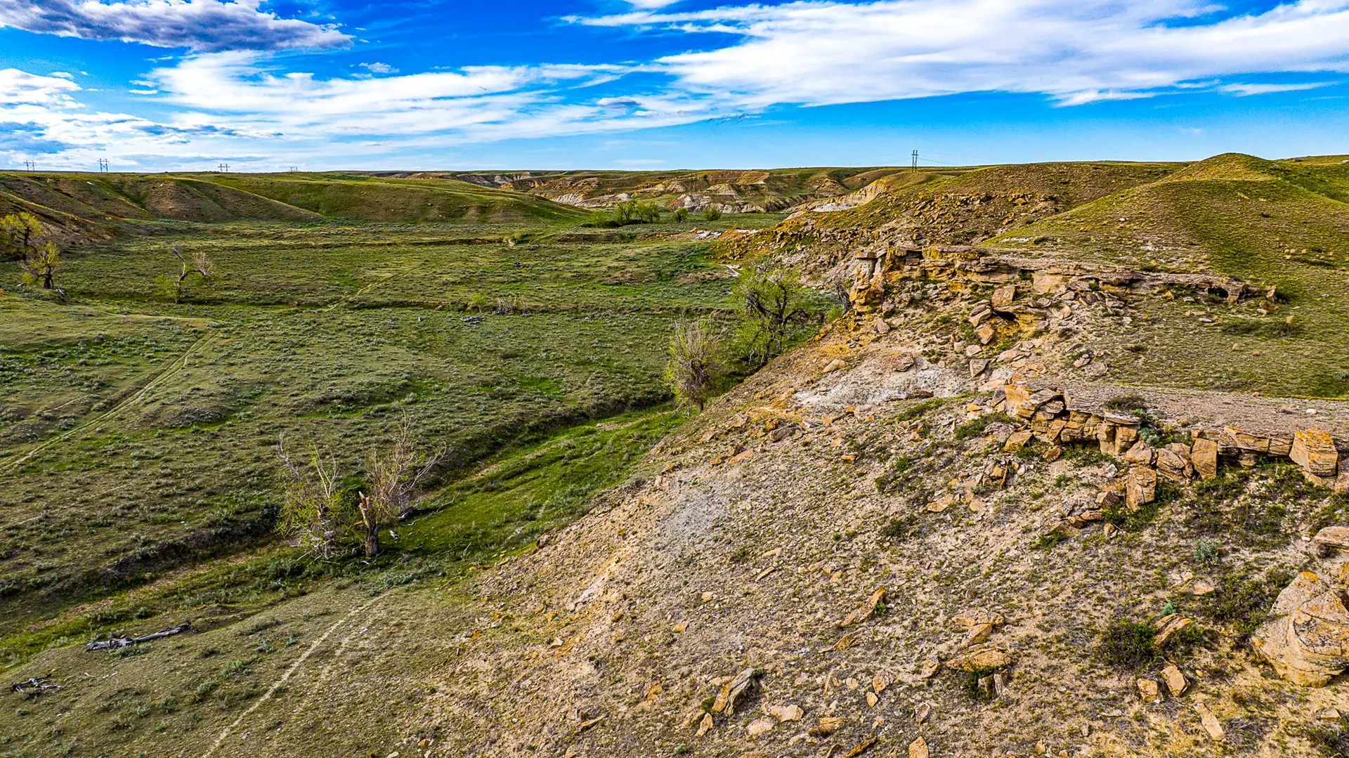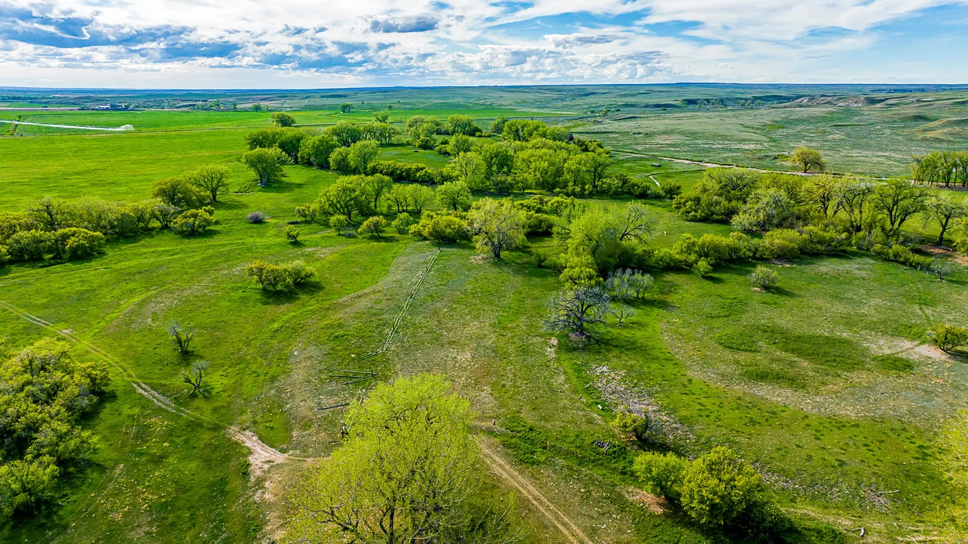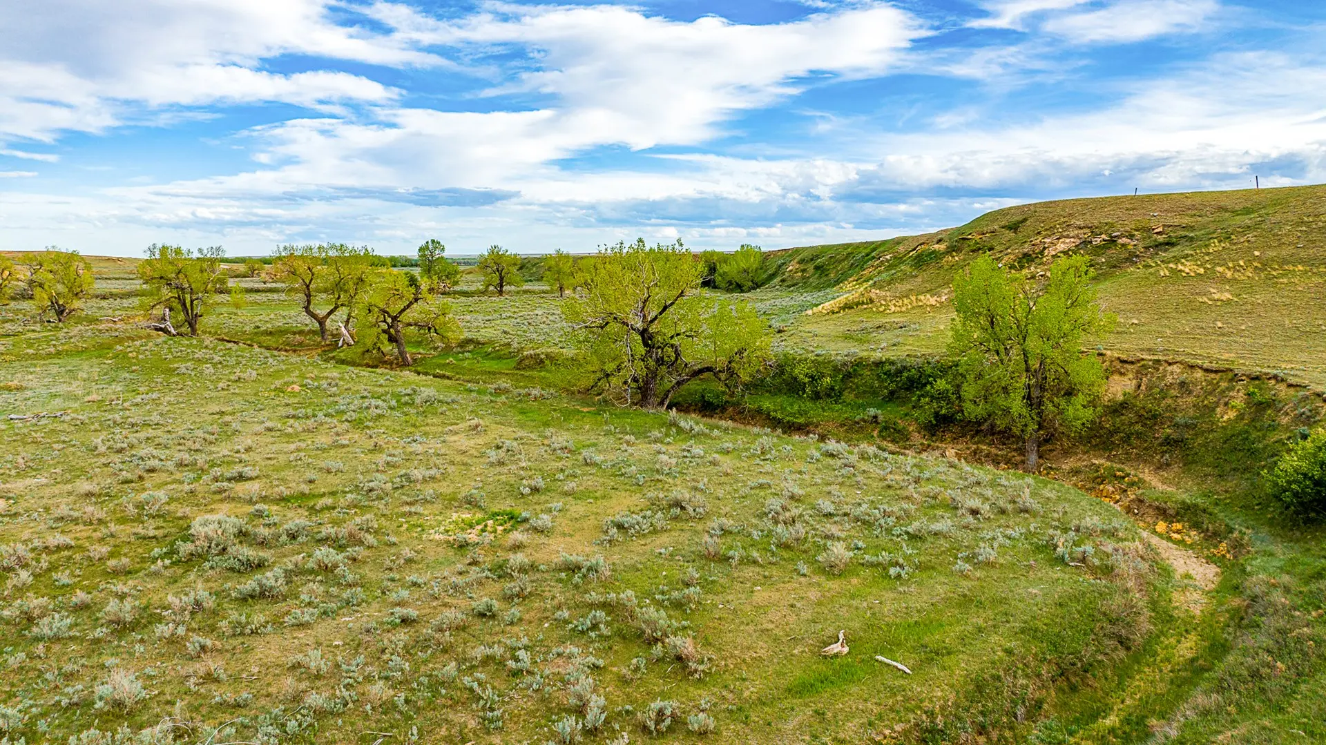 Water on this ranch is typically plentiful throughout. With the Dodson Creek running the length of the ranch, water pockets in the creek will typically hold water. There is a large dam on the north end of the property and another on the south, with a well located halfway up the Dodson creek service by a solar pump. There is also a 400 gallon per minute well located on the south end of the property on the edge of the irrigated acreage that has not been utilized.
