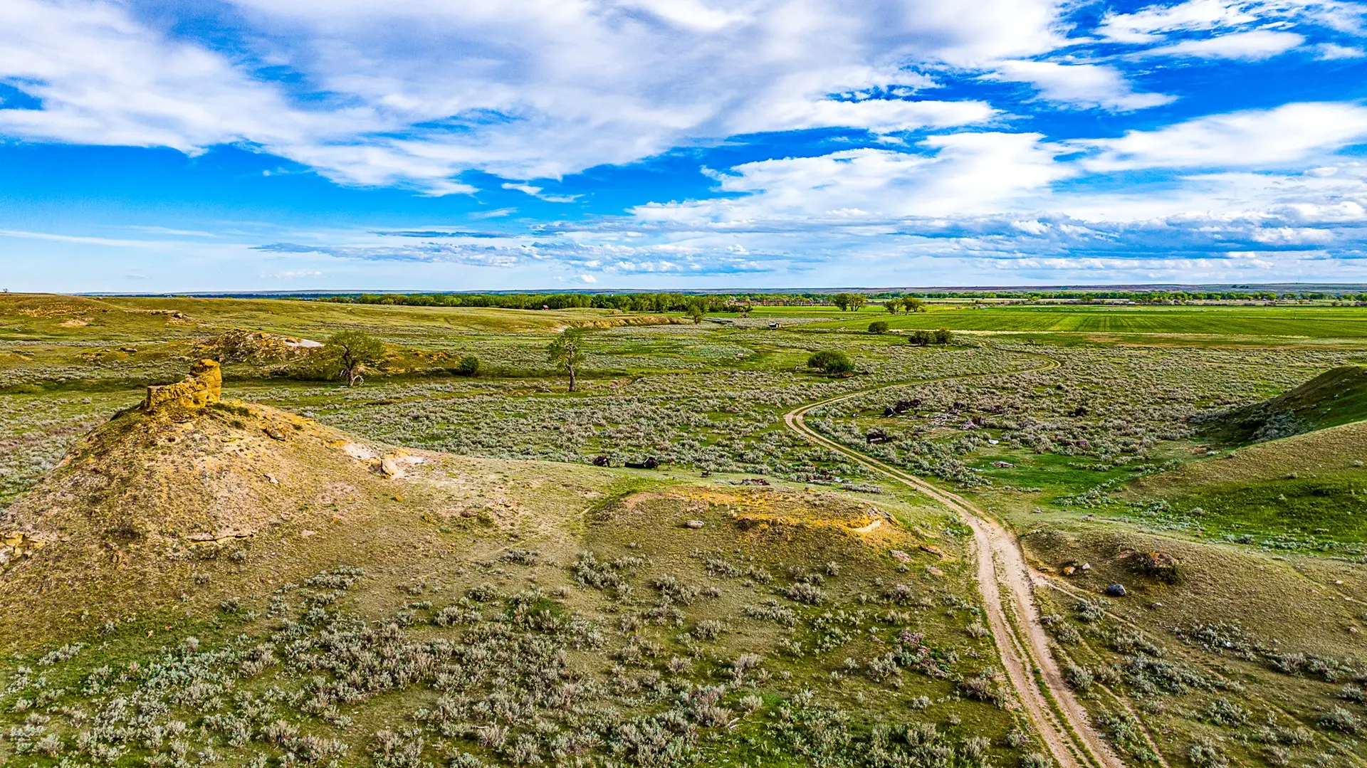The property consists of 2,523.21+/- Deeded Acres. The ranch has been allotted 259+/- acres of ditch rights associated with the North Dodson Irrigation System and are typically allowed two to three irrigations per year. Hay production has not been part of the ranch operation for years. The irrigated acres have been utilized for grazing purposes. The remaining deeded acres consist of native range land.