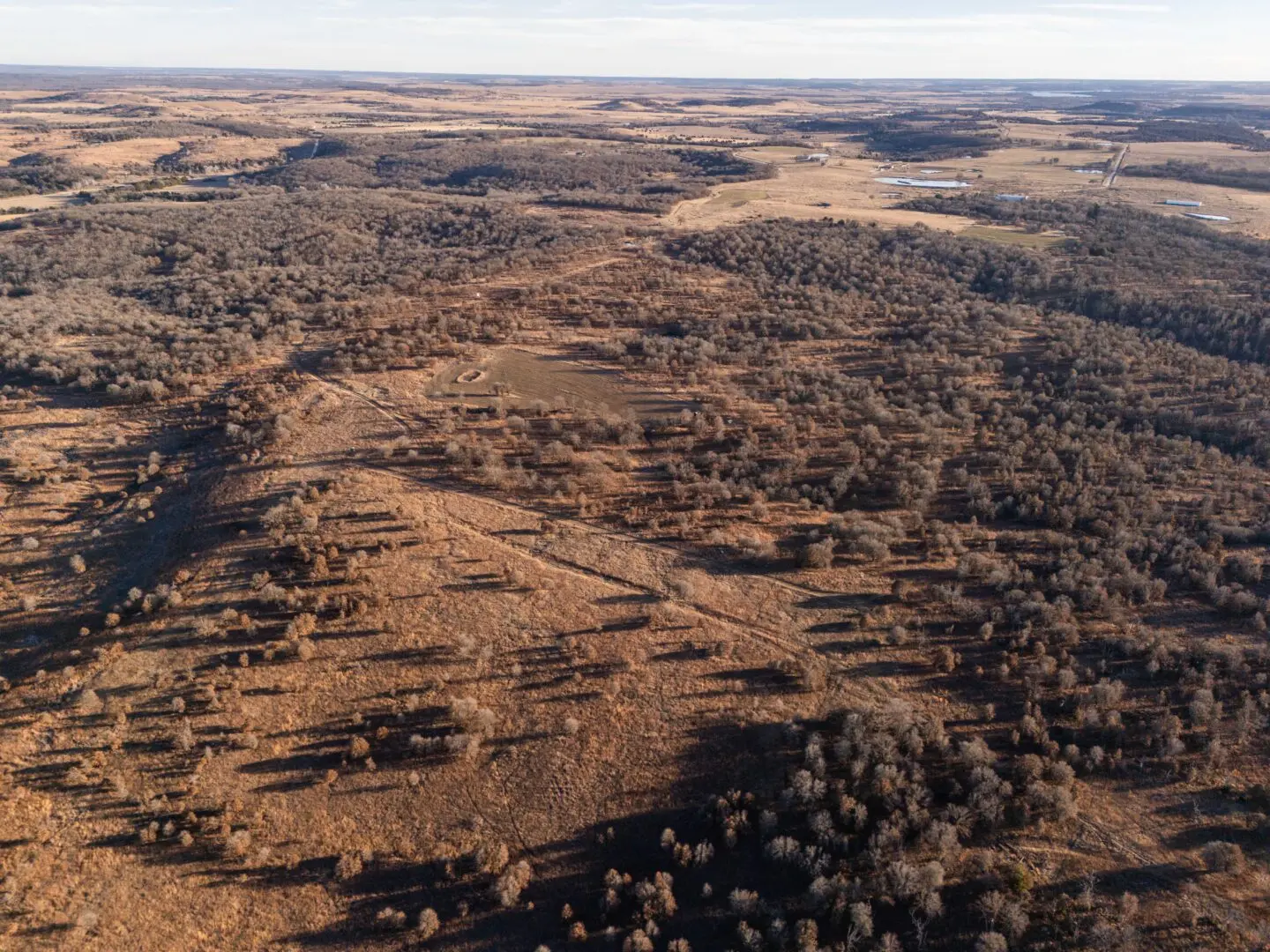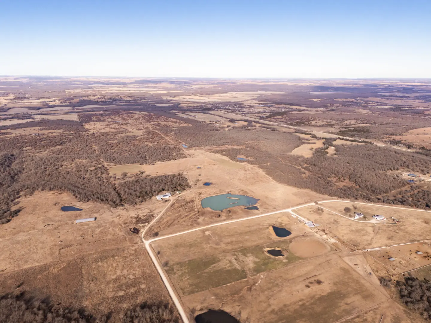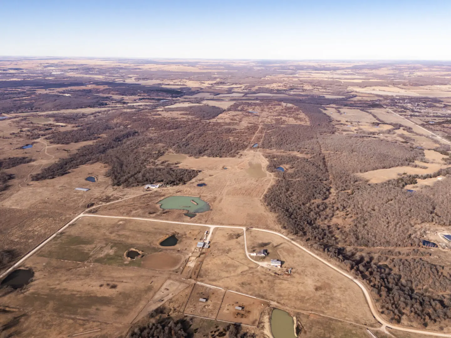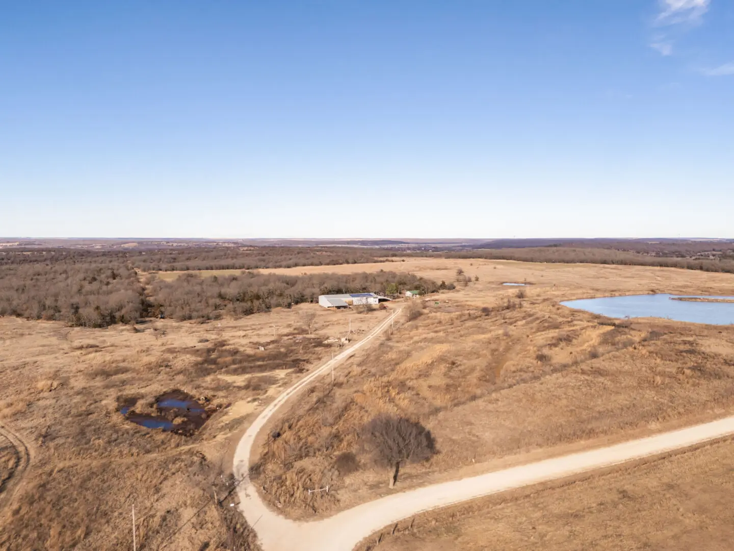 Improvements on the property are extensive and purpose-built. A rustic cabin with a stone fireplace serves as a comfortable retreat, completed by additional finished living quarters that provide flexibility for friends and family on those long hunting weekends. A large 150 x 60 steel barn and shop with electric and a spacious breezeway offers excellent space for equipment, storage, or livestock needs. The property is largely self-sustaining, featuring solar power and reliable water infrastructure, with rural water available for a future connection at the road. A high-fenced orchard benefits from a unique watering system tied into the main lake, further enhancing the land’s productivity.