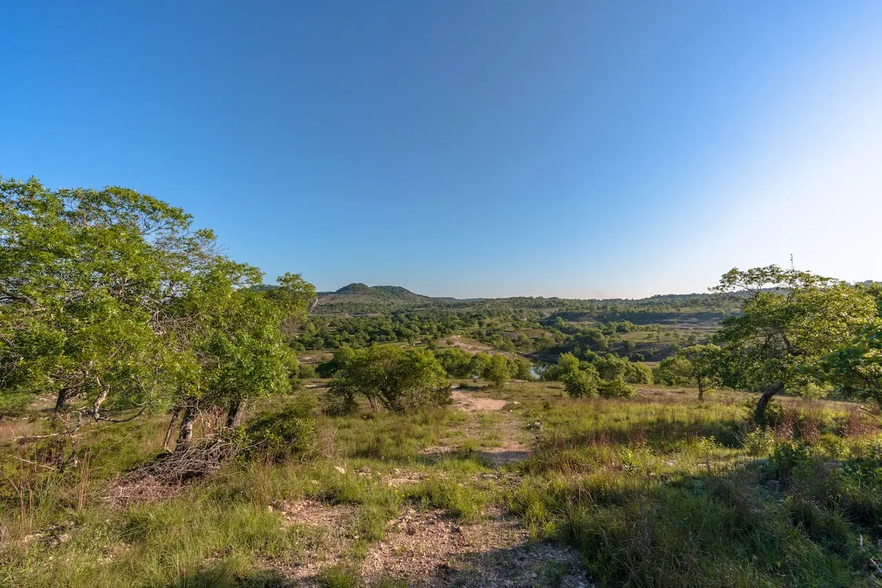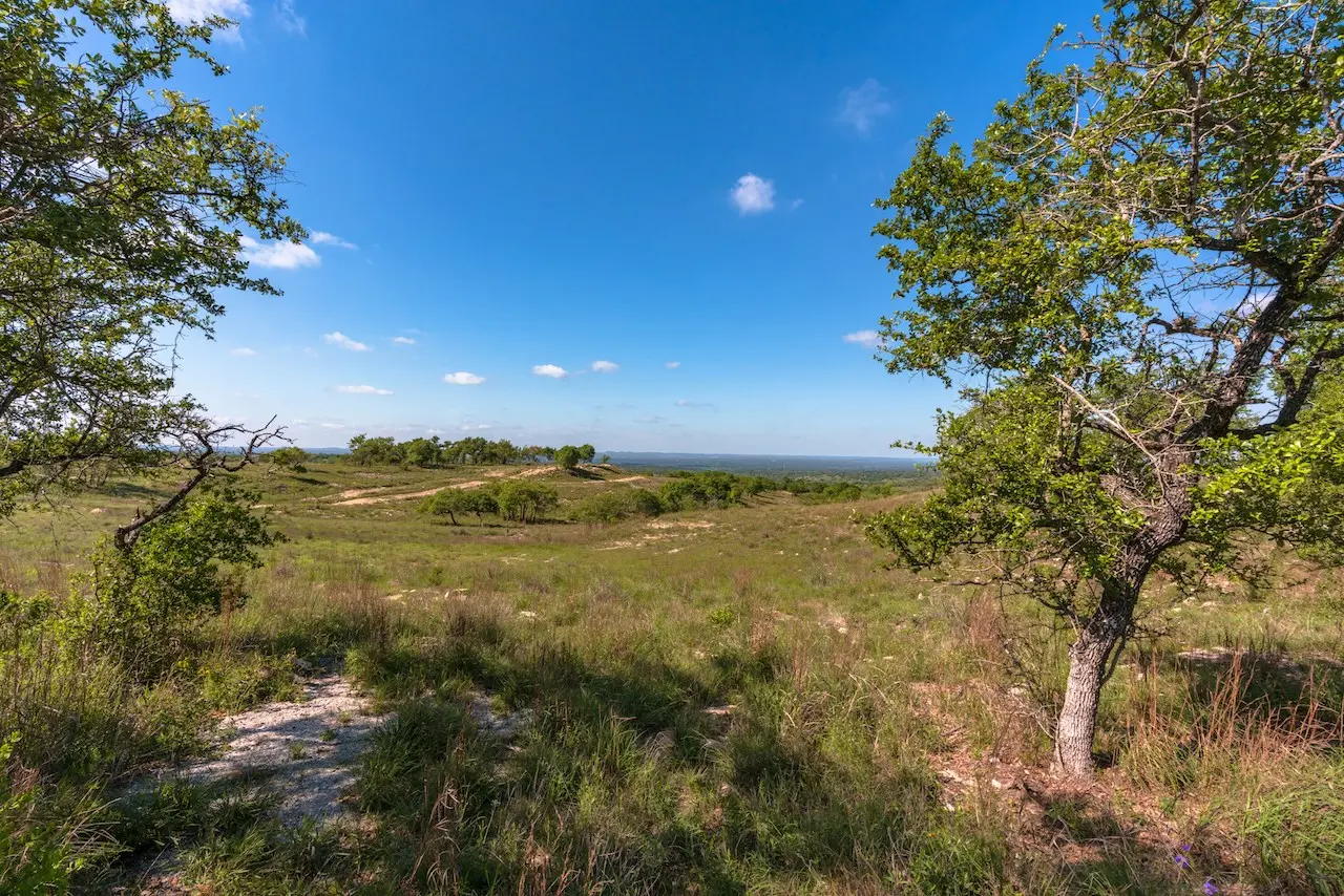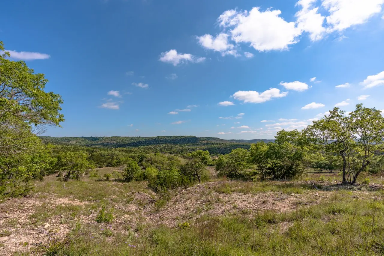 Gently rolling to dramatic topography with over 300ft of elevation change across the property. Views from any elevation on the property, mixture of Spanish Oak, Live Oak Post Oak and other hardwoods. Mostly cleared of Cedar with a mixture of soil type ranging from rolling grazing native pastureland to rugged vertical terrain with steep draws and canyons.