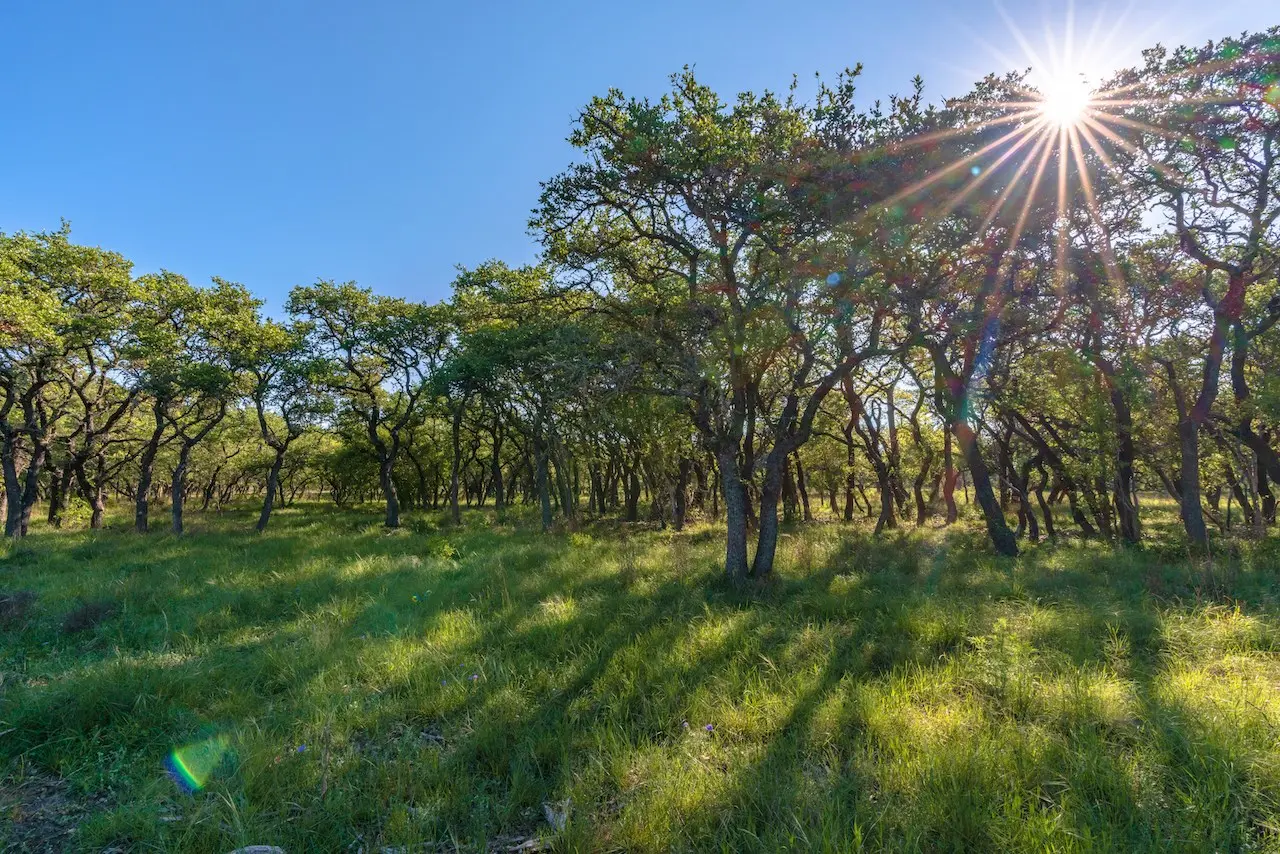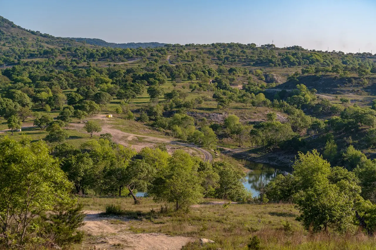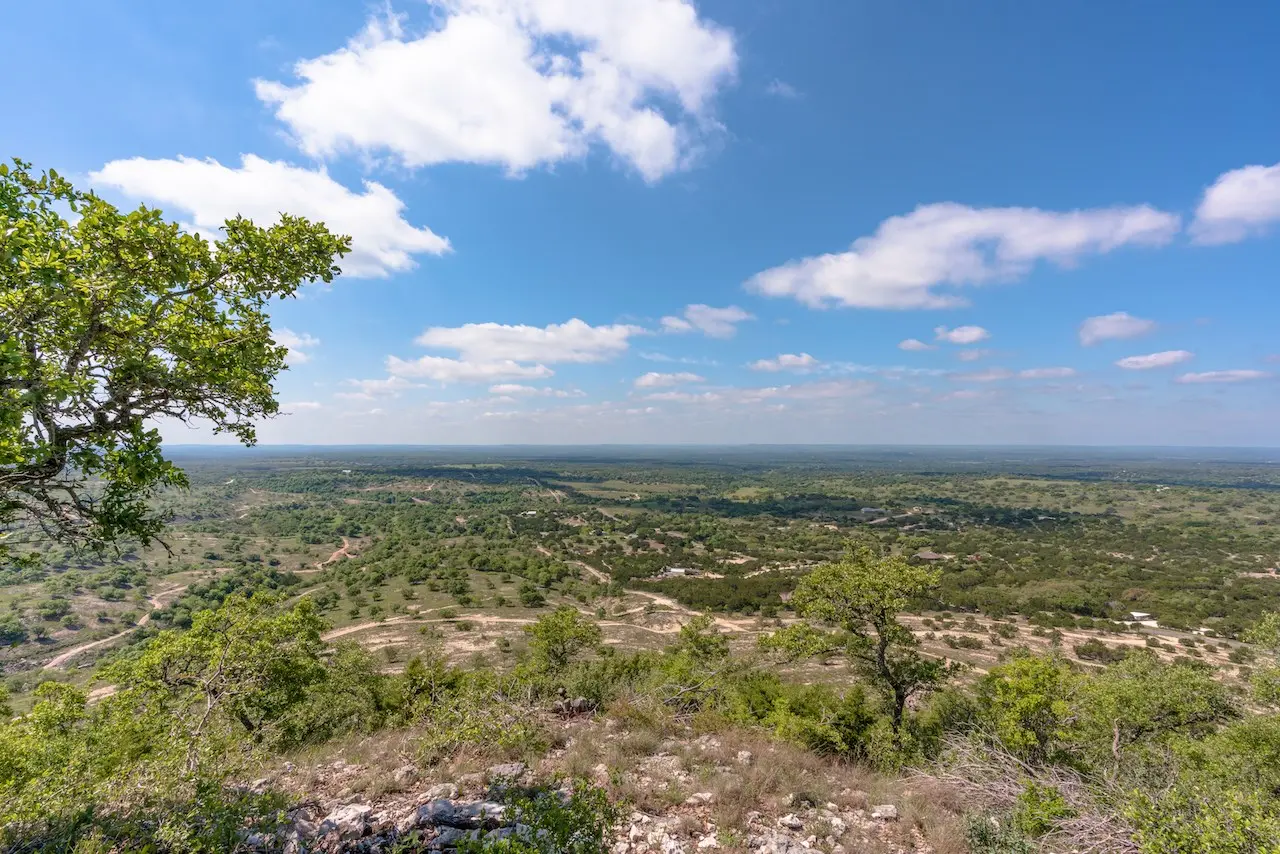 Gently rolling to dramatic topography with over 300ft of elevation change across the property. Views from any elevation on the property, mixture of Spanish Oak, Live Oak Post Oak and other hardwoods. Mostly cleared of Cedar with a mixture of soil type ranging from rolling grazing native pastureland to rugged vertical terrain with steep draws and canyons.