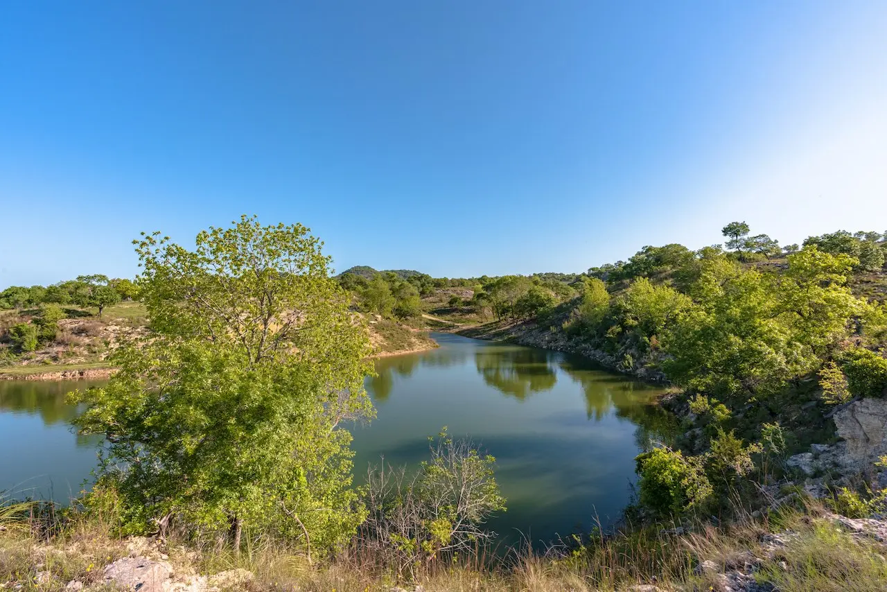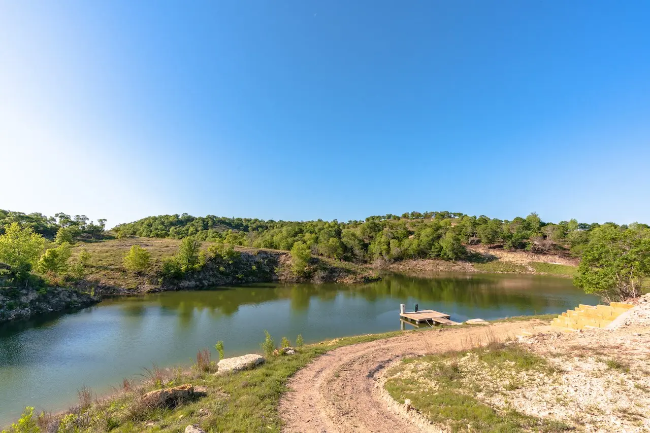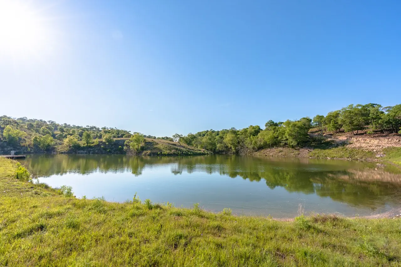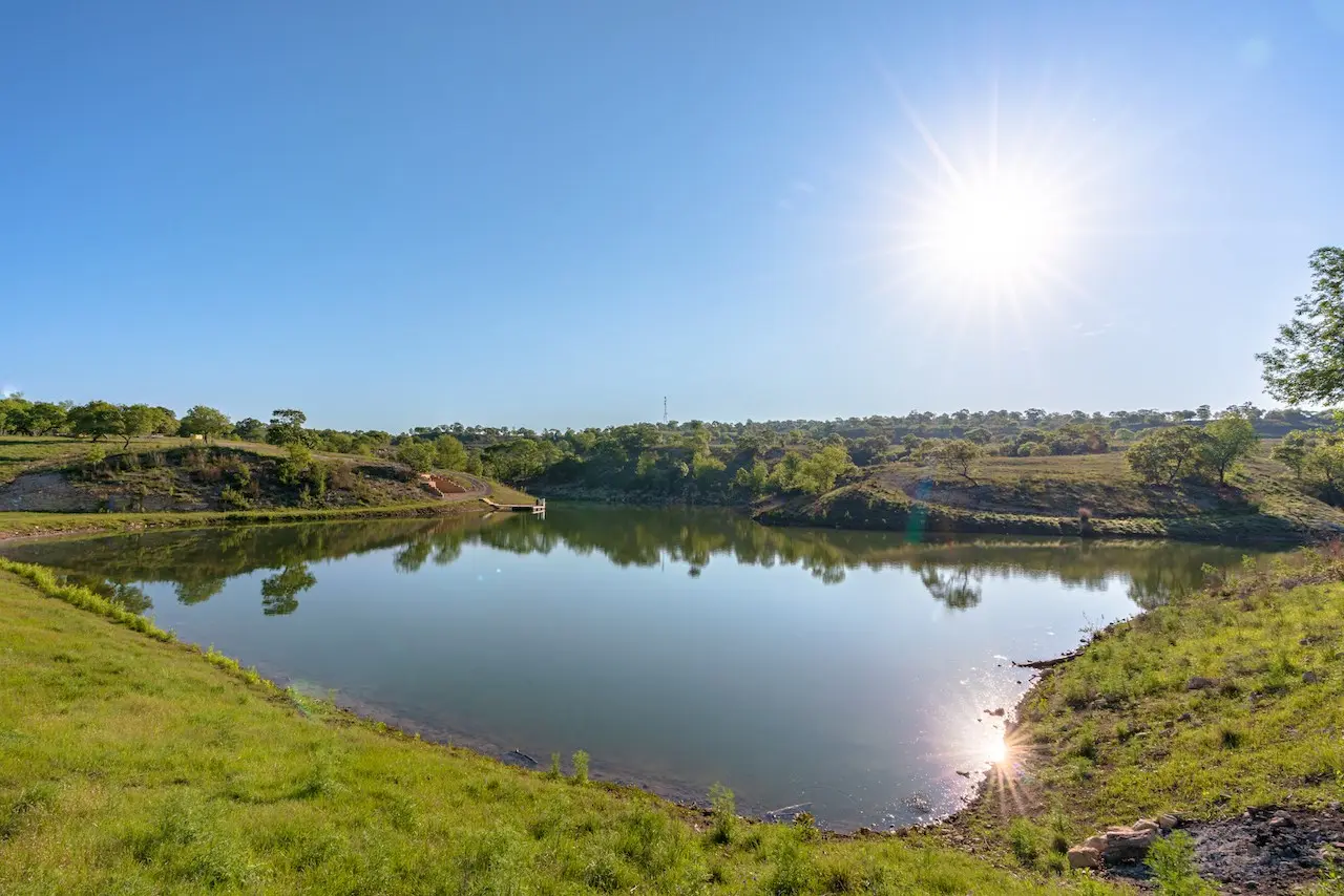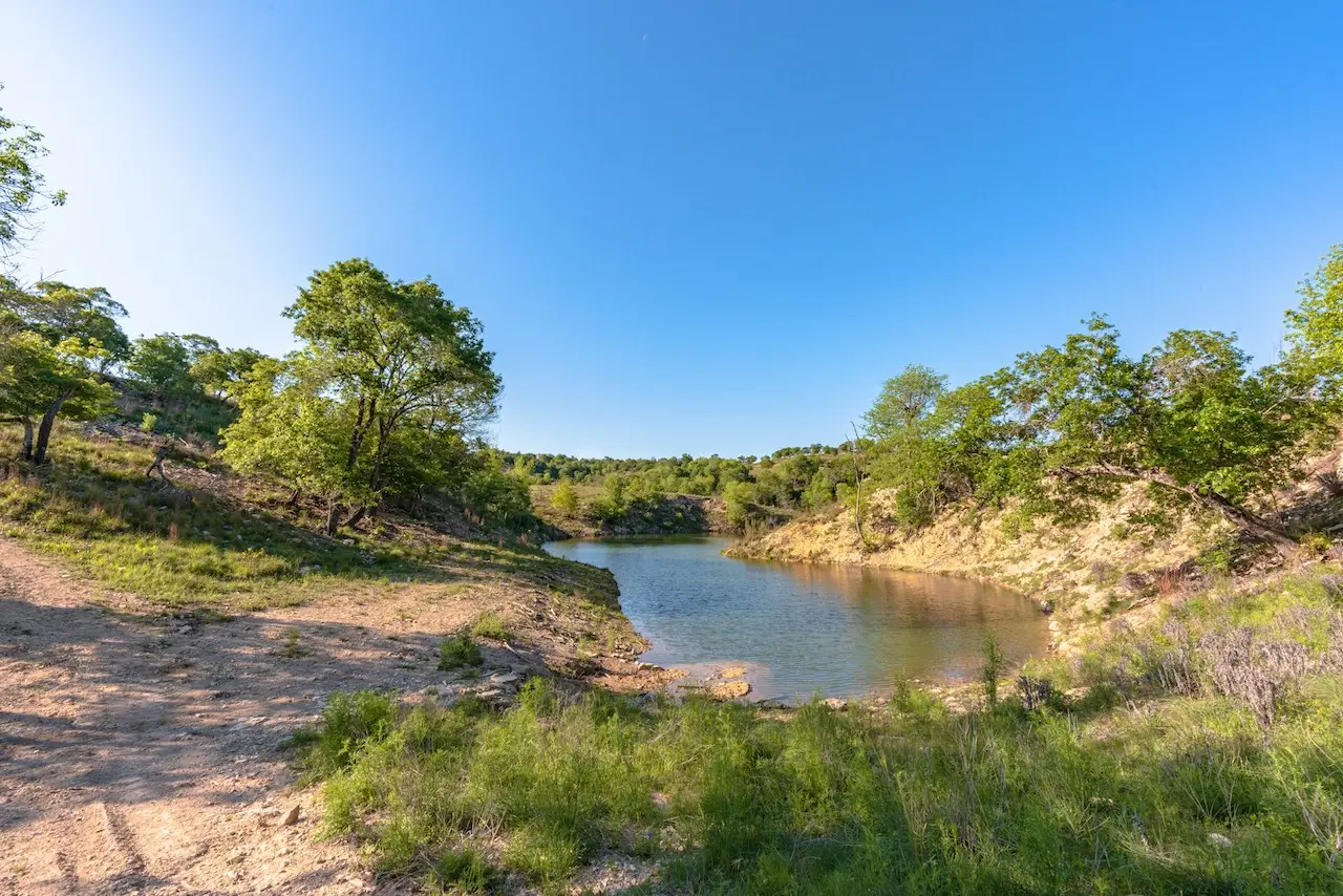 Beautiful spring fed 3-acre lake in the southern pasture of the ranch. Wet weather Jacobs Creek runs in the north pasture creating limited potential for water improvement or impoundment. New Water well with troughs.