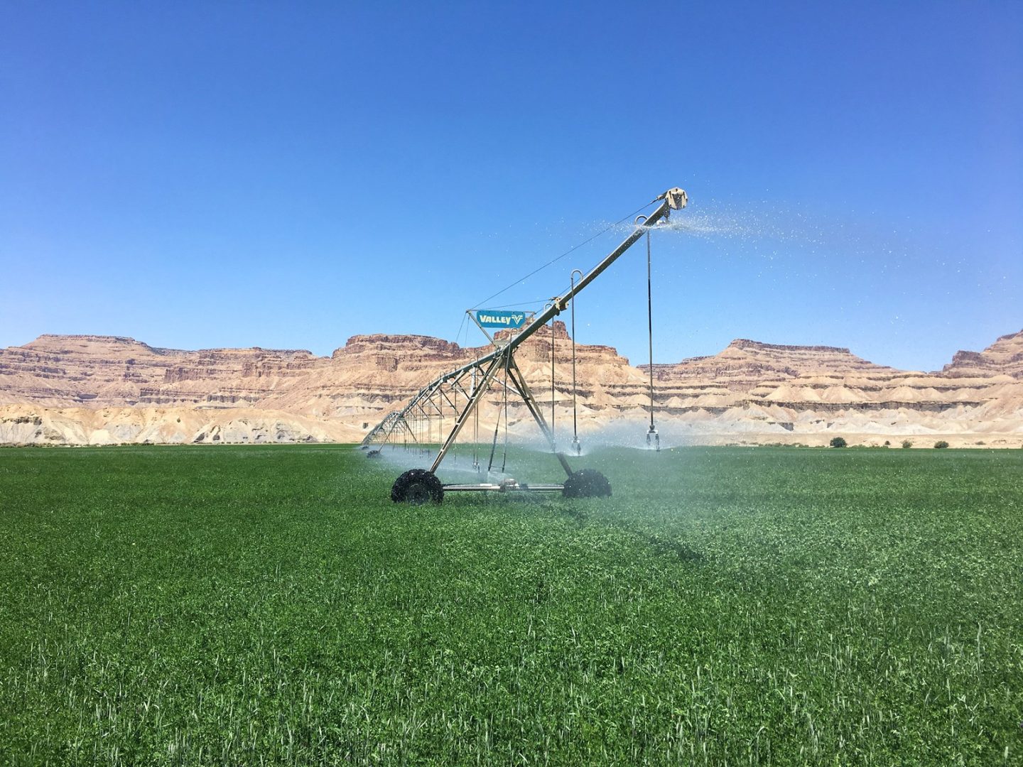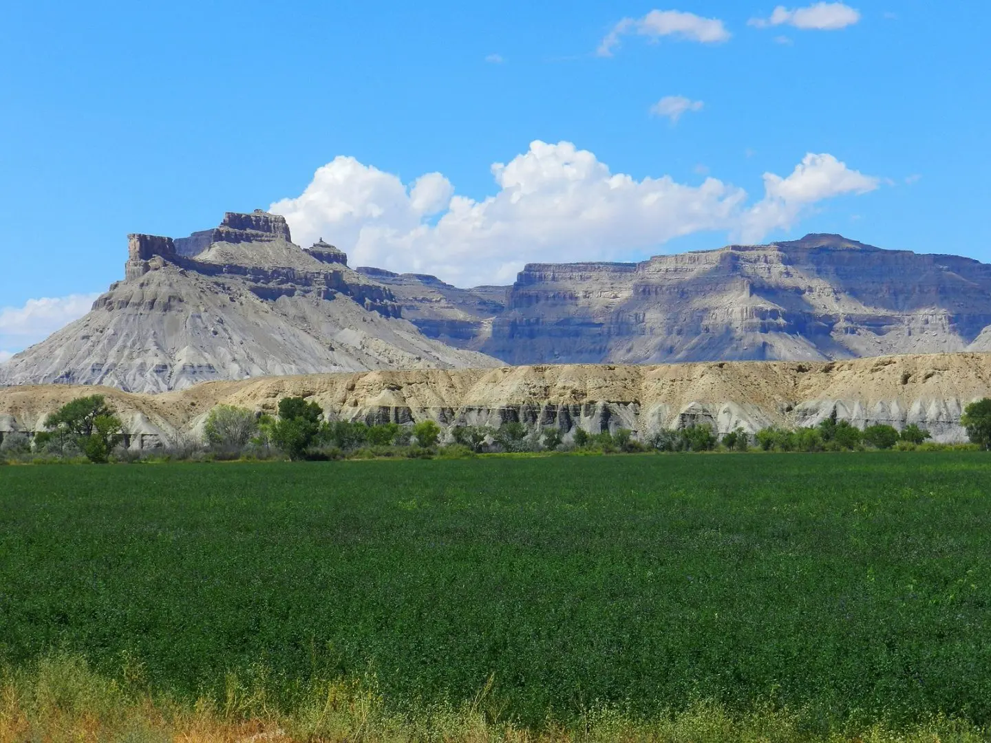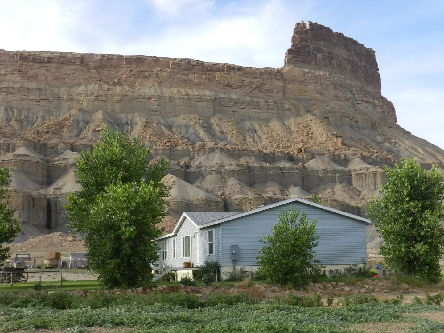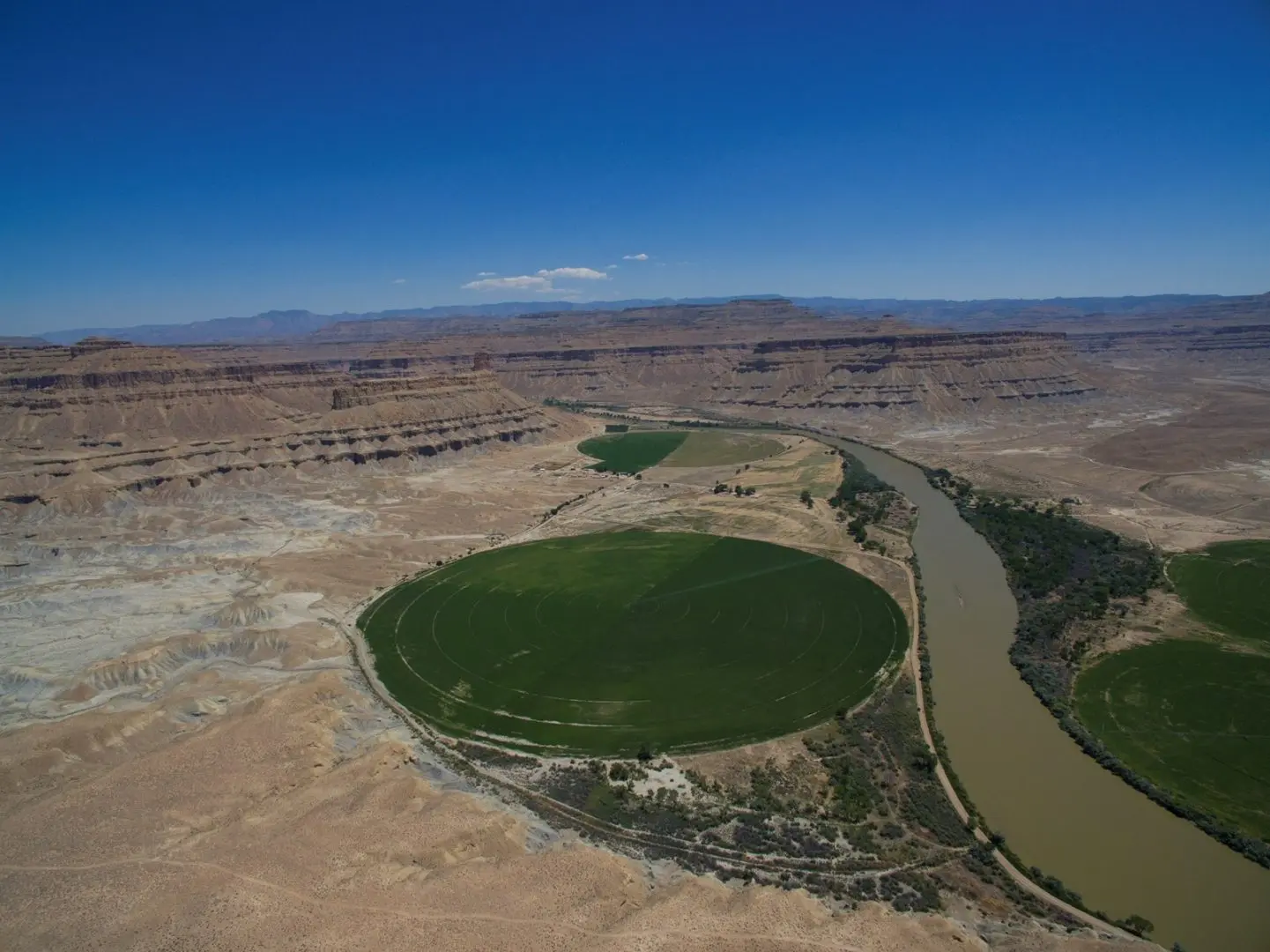 The Gunnison Butte Farm is comprised of approximately 485 total acres, with 210 irrigated acres on the east parcel and 600 acre feet of adjudicated water rights pumped directly out of the Green River. The west parcel, irrigated by a 2006 Valley center pivot, has 155 acres and over 600 acre feet of adjudicated water rights. Green River is known for its mild climate and long growing season—over 150 days a year—which is why Green River is famous for its melons. This farm is known for being highly productive, with fields planted in grass-alfalfa hay, alfalfa, and also a 5-acre fruit orchard planted in peaches, apples, plums, pears, Asian pears, cherries, and apricots. It’s possible to obtain yields of 6 tons to the acre of alfalfa. Historically the ranch has produced sugar beets, corn, melons, alfalfa, and high-quality grass-alfalfa mix hay. The east part of the ranch is irrigated by a 2006 Model 8000 Valley center pivot, 5 sideroll sprinklers, and 15 acres are flood irrigated.