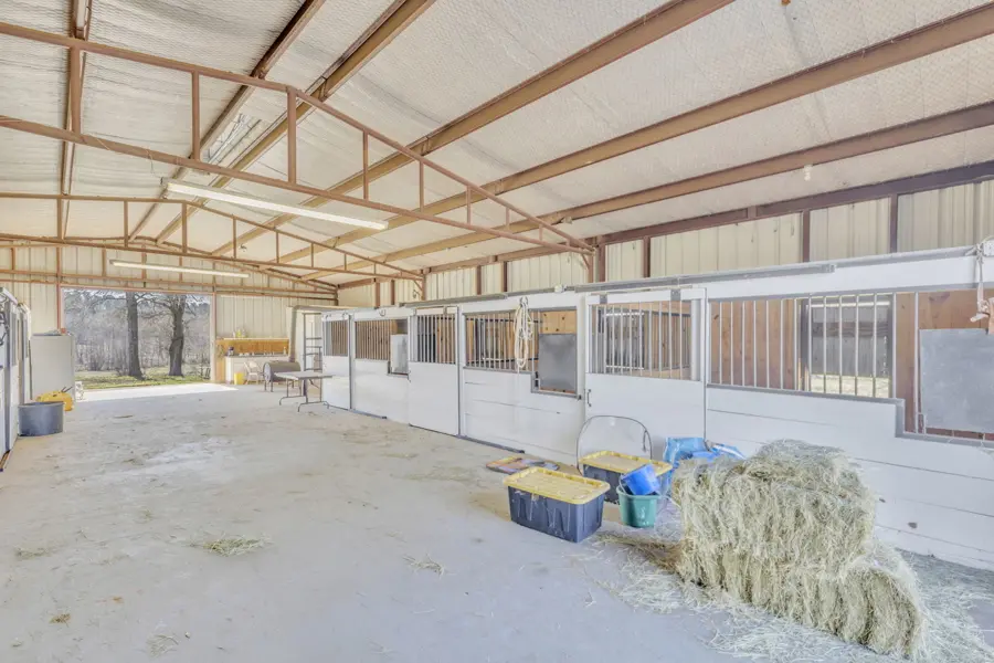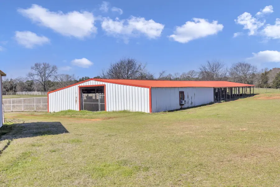 Equine Improvements: The centerpiece of this ranch in Lindale the 45 x 60-foot barn with seven stalls with turnouts of which two are foaling stalls, also included is a tack room, feed room all with great overhead lighting. For training purposes, a 125 x 200 foot arena with pipe fencing is conveniently found next to the barn. Just north of the barn is a 35 acre pipe fenced grazing pasture with loafing shed and just north of the grazing pasture is a 10-acre pipe fenced holding area with loafing shed. There are scenic riding trails throughout the 125 acre property.