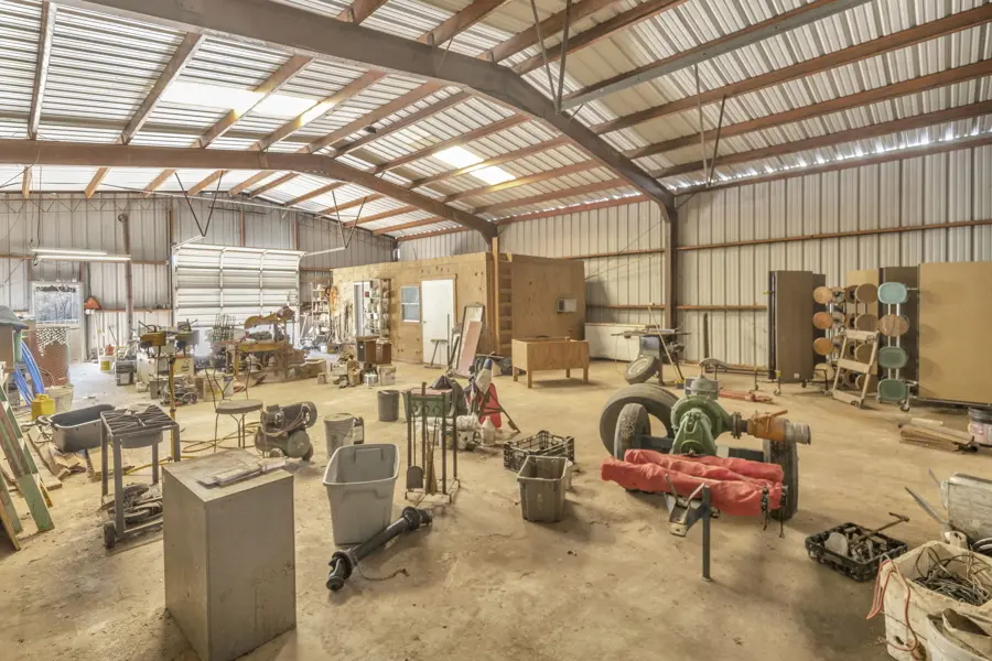 Interior Infrastructure: Fletcher Ranch has 2500 linear feet of road frontage on County Road 481. Enter the property through a wrought iron entry gate from County Road 481. The main ranch roads throughout the property are paved and lined with pipe fencing. The paved roads lead to the 840 square foot cabin, a 40 x 60-foot workshop, horse barn and arena. There are several scenic building sites including an area overlooking the fishing lake.