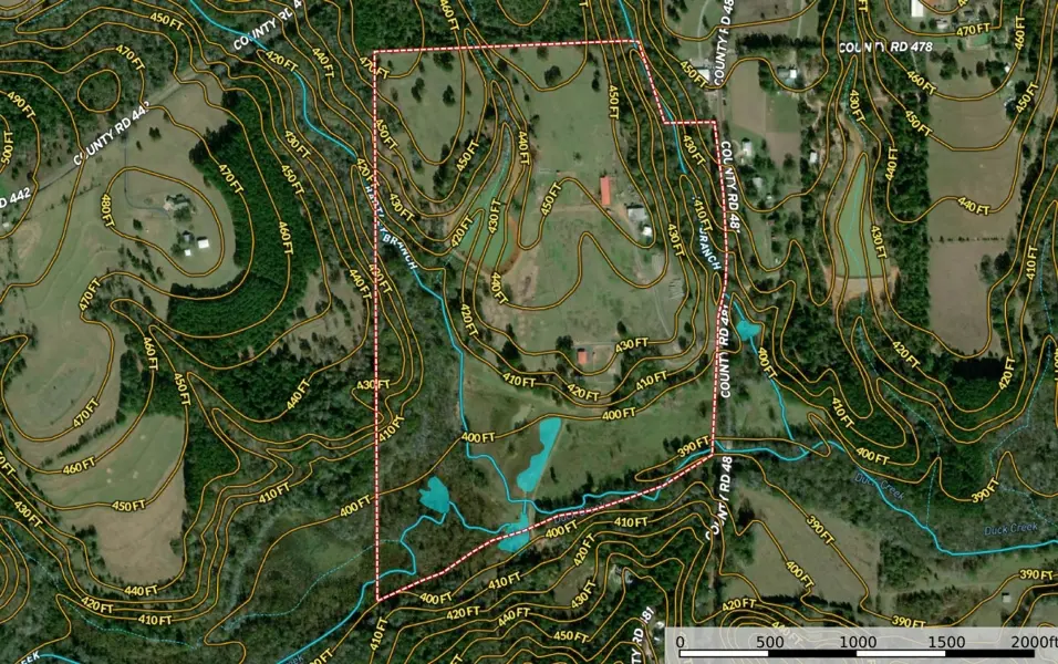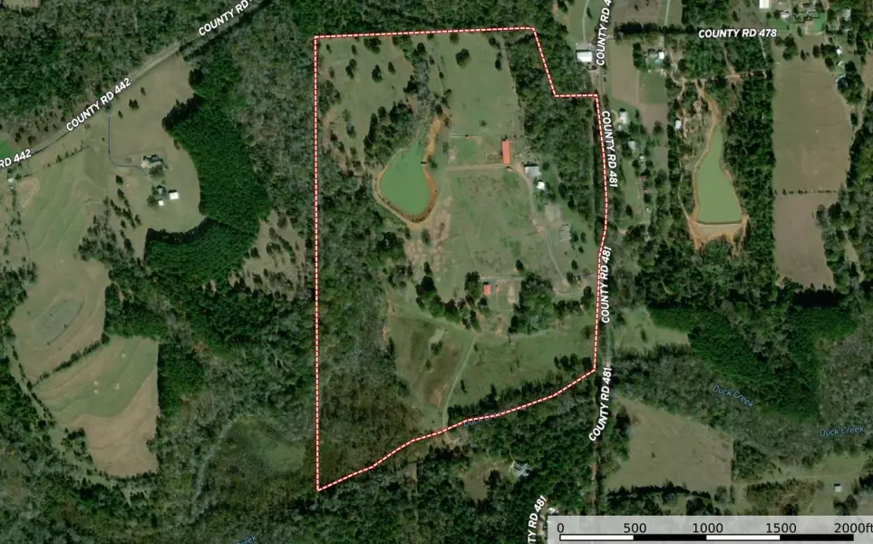Recreational Offering: There are three bodies of water and two live water creeks on Fletcher Ranch. For the angler fish in the 3 acre stock lake with pier. For the duck hunter there are two shallow duck ponds. The large pond is 2 acres, and the small pond is 1 acre. Duck Creek, Hall Branch and Bartley Branch transverse the property added to the wildlife habitat. The northwest corner of ranch is surrounded by heavy timber on neighboring properties providing great wildlife habitat for Whitetail Deer. The terrain on the northern portion of the property is rolling with timber lined live creek enhancing the wildlife habitat.