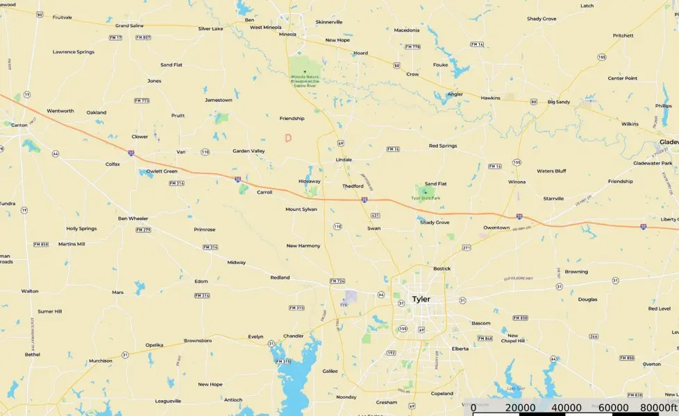 East Texas Ranch: The 125-acre Fletcher Ranch found a short distance from downtown Lindale in East Texas offers a unique diversified experience. The property features Pipe Fencing, Equine Facilities, Cattle Grazing, Fishing Lake, Duck Ponds, Live Water Creek, Wildlife Habitat, Paved Roads, Small Cabin and Workshop. The Texas Ranch in Lindale is found halfway between Dallas, TX and Shreveport, LA. The location is very convenient to Interstate 20 and US Highway 69. The largest major city is Tyler, TX, found a short distance to the south. There is plenty of shopping and dining in Lindale as well.