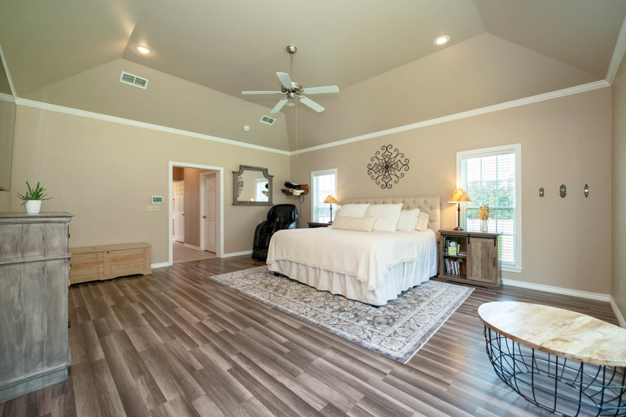 The updated 3-bedroom home includes new flooring, picture windows, a jacuzzi bath, and upgraded kitchen with new sink and refrigerator. Enjoy the warmth and convenience of a wood-burning fireplace as you enjoy the cool East Texas evenings. Modern touches like home automation, fiber internet, alarm system, and backup generator power ensure comfort and security.