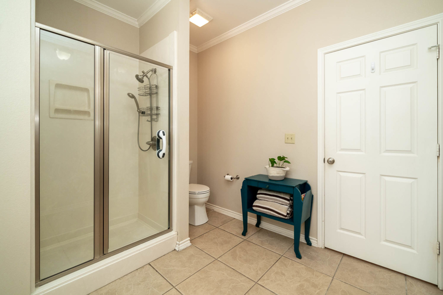 Detached Garage with extra climate-controlled storage, tool storage area, and a half bath.