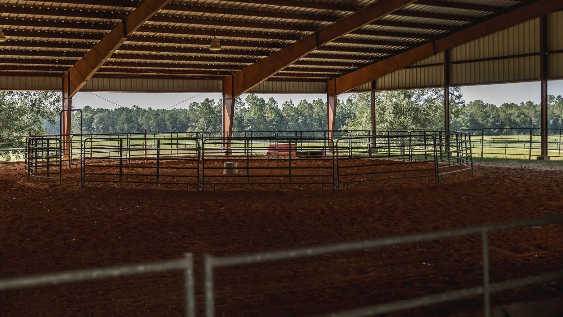 Equestrian and ranch related facilities include the 5,785 SF horse barn with 12 stalls, a 150×200 covered riding arena that is sprinkled, lighted, and has a custom blend equestrian dirt, an adjacent 560 SF workshop/office/press box, cross-fenced pastures built for rotational grazing, quality cattle working pens, 3 pole barns totaling 3,450 SF, and a detached 1,206 SF garage next to the main residence. Golden Pines Ranch also features a 19-spot RV campground, offering excellent infrastructure for group events, agritourism, or seasonal income. Each site is accessible and could be expanded or upgraded based on the buyer’s goals. A 2,508 SF RV storage building with two 10′ roll-up doors provides secure storage for rigs, trailers, or equipment.
