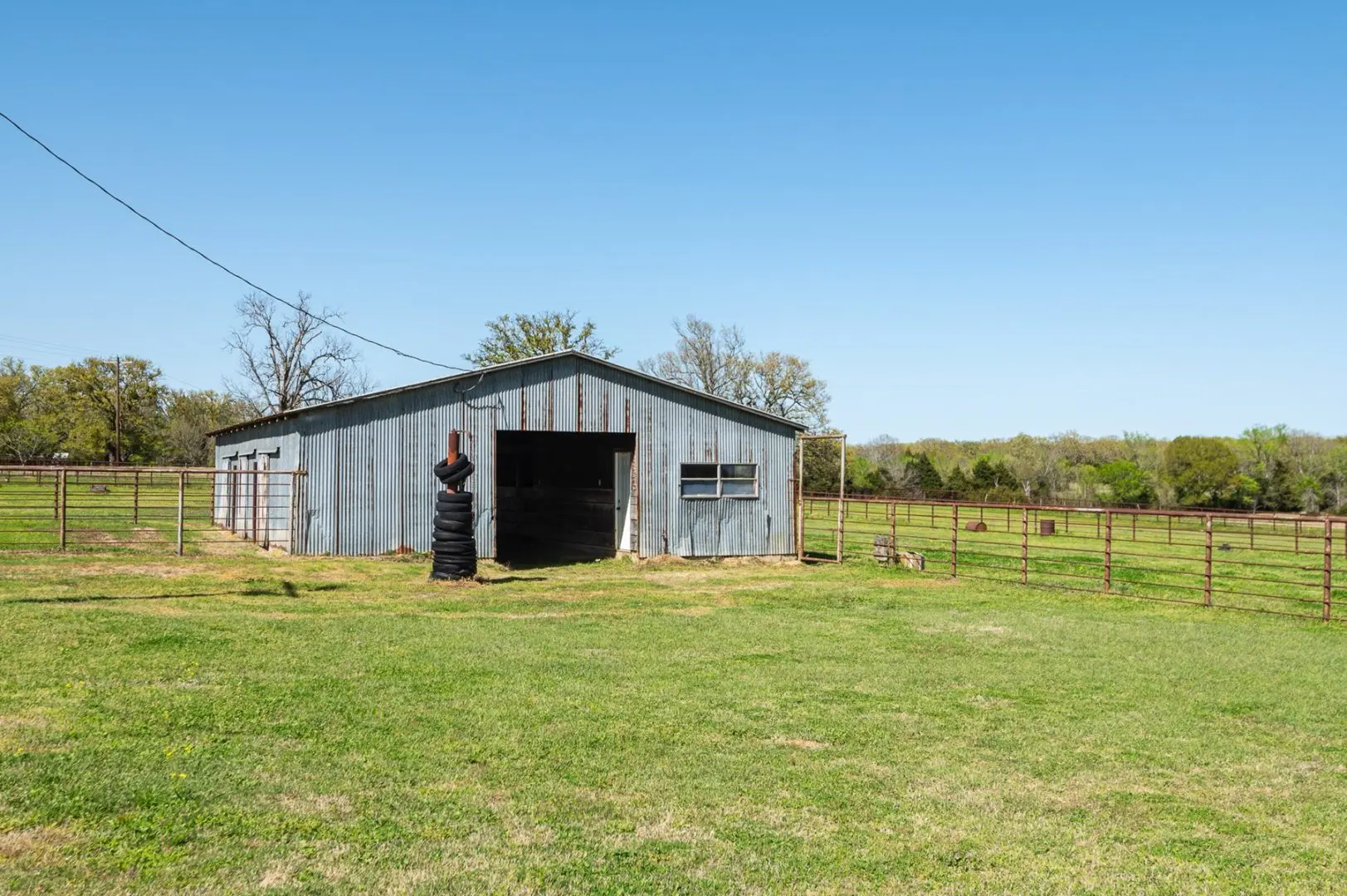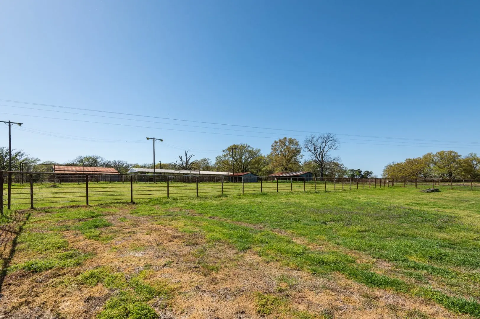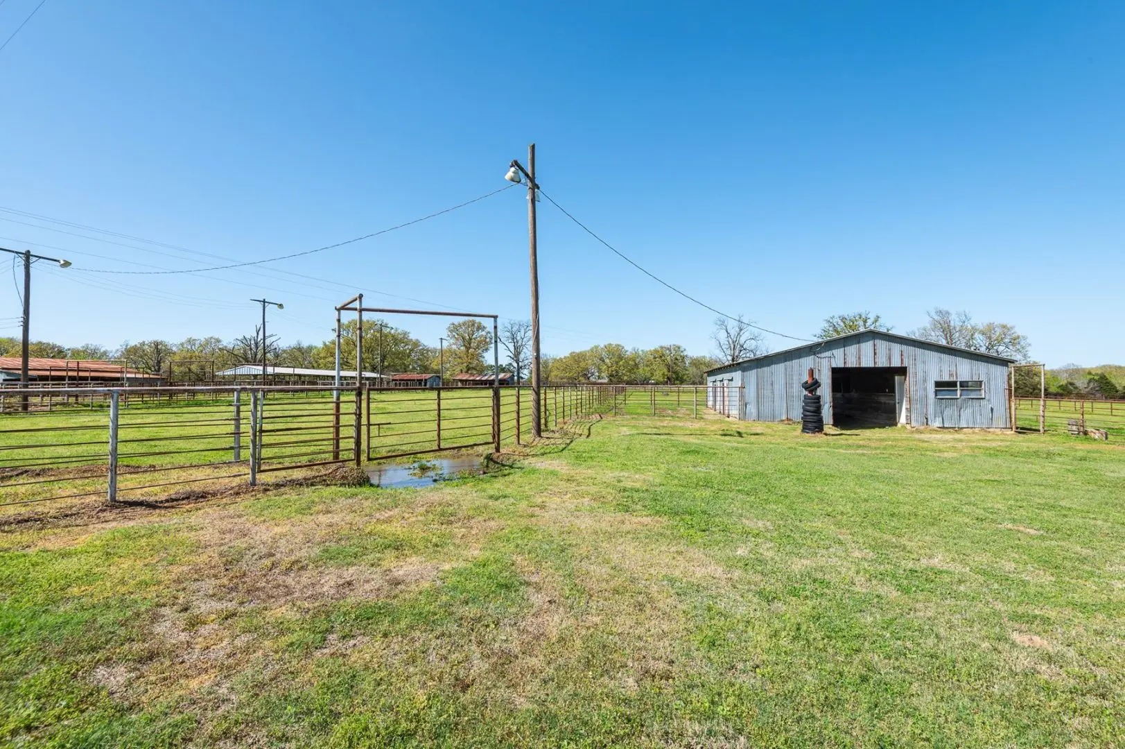 The ranch land is fenced and crossed fenced into five pastures for rotational grazing and hay production with water in each pasture with one of the pastures being on the south side of Van Zandt County Road FM 17. There is a tunnel under FM 17 for moving livestock from pastures on the south to pastures on the north. On FM 17 there is an access gate to bring cattle trucks onto the property and directly into pipe fenced holding pens to sort out and move through the covered working chute.